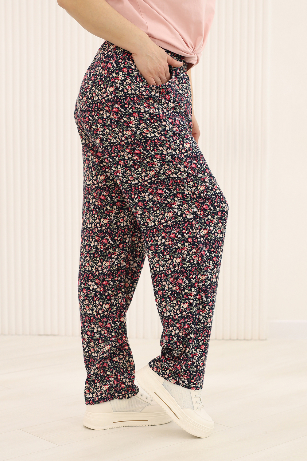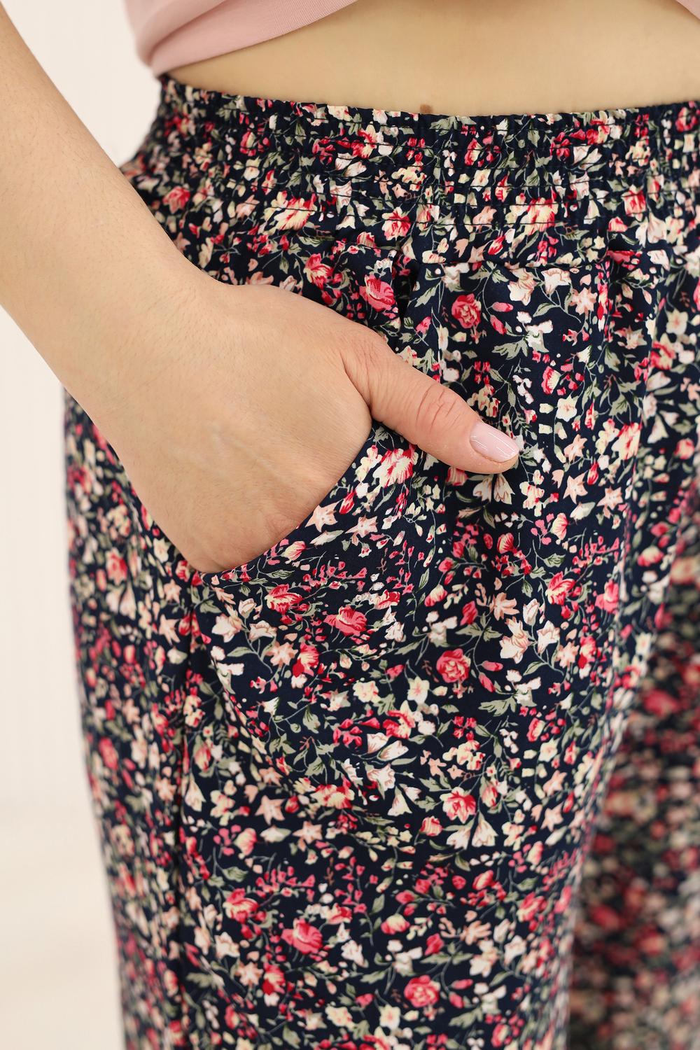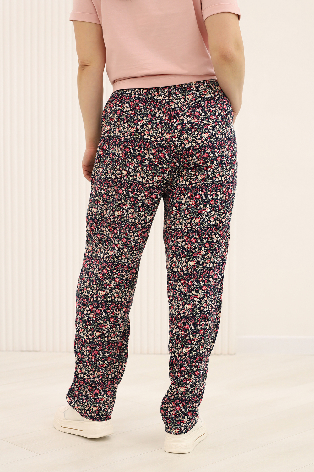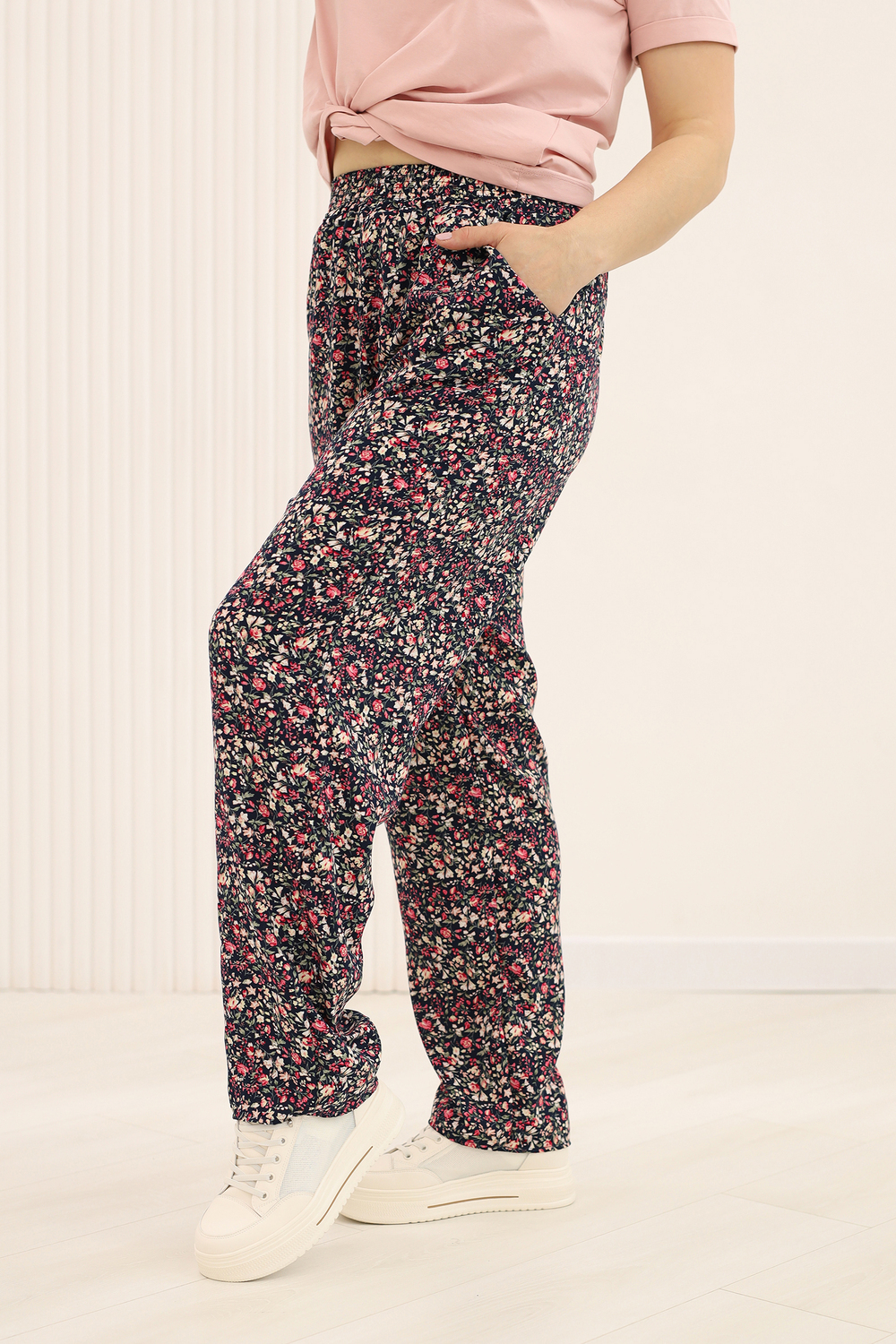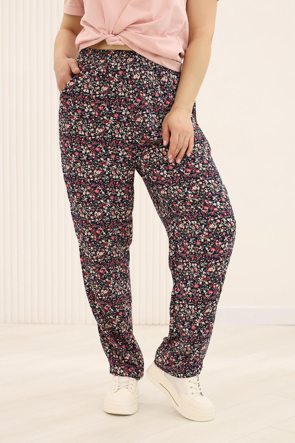 Внимание! Ткань во время первой стирки сядет в длину на 10 см. Учитывайте это при примерке и не обрезайте длину брюк до стирки. В ширину брюки усадки не дают. Брюки женские летние из тонкого вискозного штапеля, достаточно широкие, свободные и прекрасно подходят для летнего периода. В брюках легко и комфортно двигаться. Они идеально подходят для жаркого лета, так как отшиты из 100% вискозного штапеля. Данный материал приятен к телу, не скатывается, не линяет. Как и все натуральные ткани, вискозный штапель сминается при ношении, но в интересной абстрактной набивке это совершенно не заметно. Лёгкие брюки создают летящий силуэт при движении, эффектно выглядят в летних путешествиях.