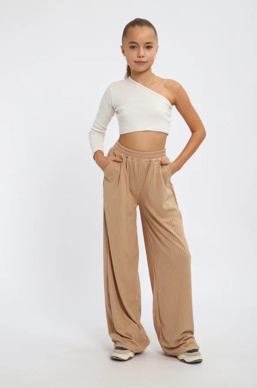 Легкие трикотажные штаны будут активно использоваться в летний, весенний и осенний период. Под такой низ не составит труда подобрать подходящую блузку, рубашку, футболку или кофту. Уместна как классика, так и как популярная трендовая одежда, вещи в спортивном стиле. Расклешенные внизу брюки с удобной посадкой сшиты из мягкого трикотажа. В составе материала вискоза и полиэстер. Штаны оснащены боковыми вместительными карманами, резинкой на поясе, станут отличным решением для отдыха дома и дачи, танцев, фотосессии, туристического похода, повседневной носки, школу и на улицу. Модель свободного кроя всегда будет в моде идеальна на каждый день весной и осенью. При желании брючки для девочки можно укоротить и носить как кюлоты.