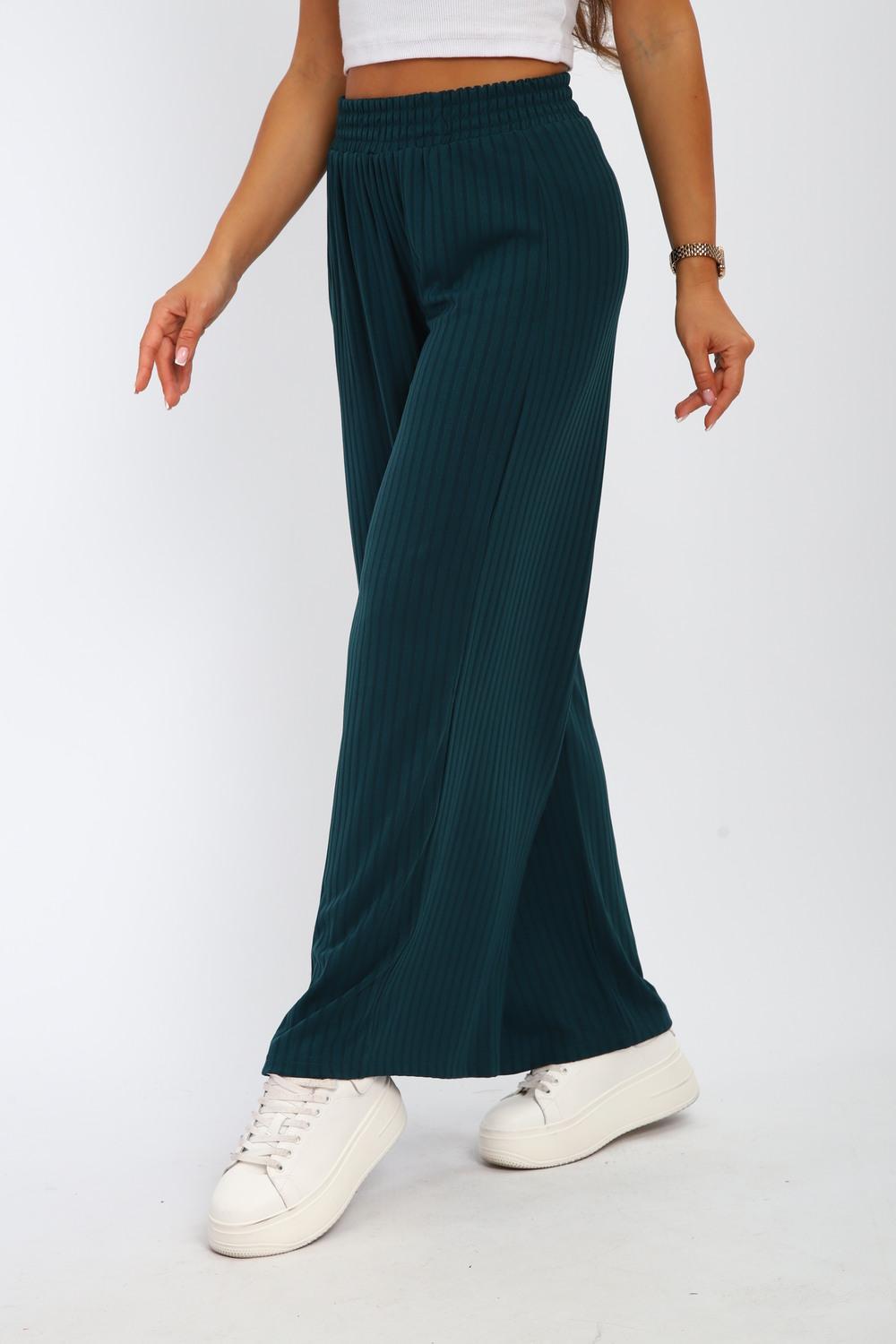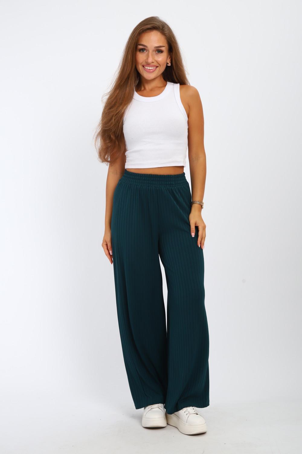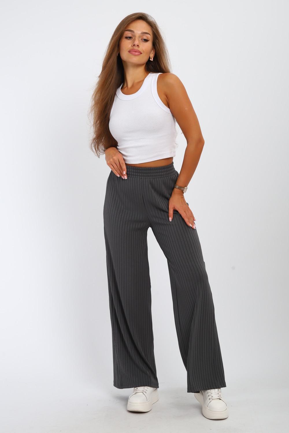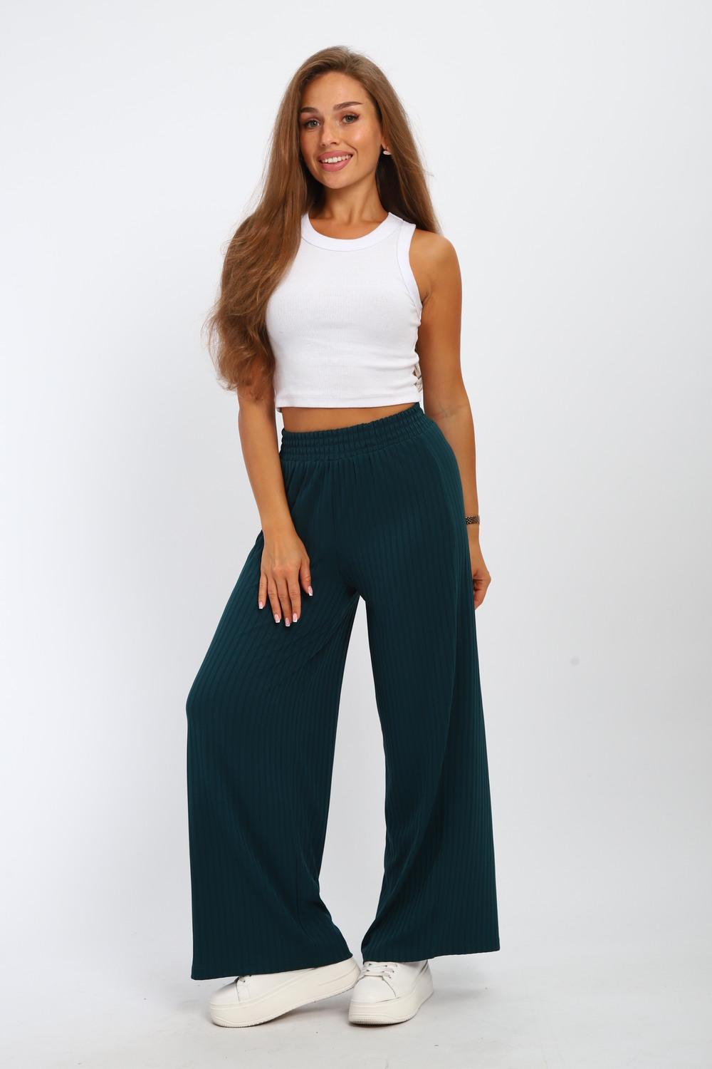 Брюки-палаццо из «лапши» — идеальный выбор для тех, кто ценит комфорт и стиль. Модель выполнена из мягкого эластичного трикотажа с характерной ребристой текстурой («лапша»), которая отлично держит форму и визуально вытягивает силуэт. Свободный, расклёшенный крой в сочетании с высокой или средней посадкой создаёт эффект легкости и движения — брюки выглядят элегантной в то же время невесомо.