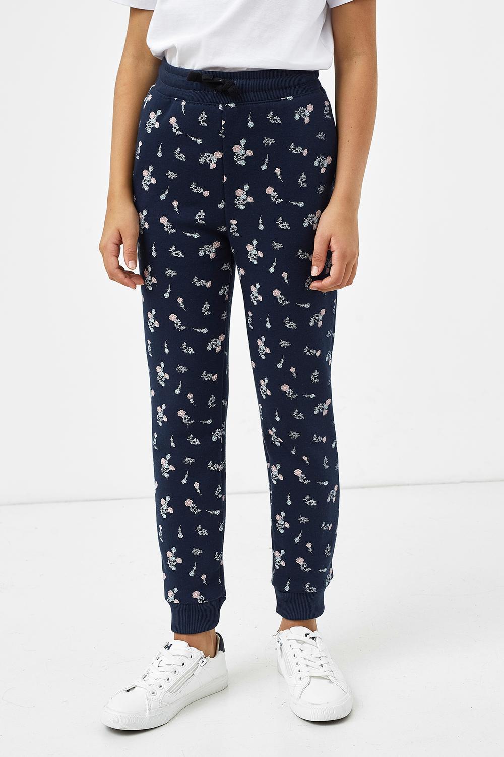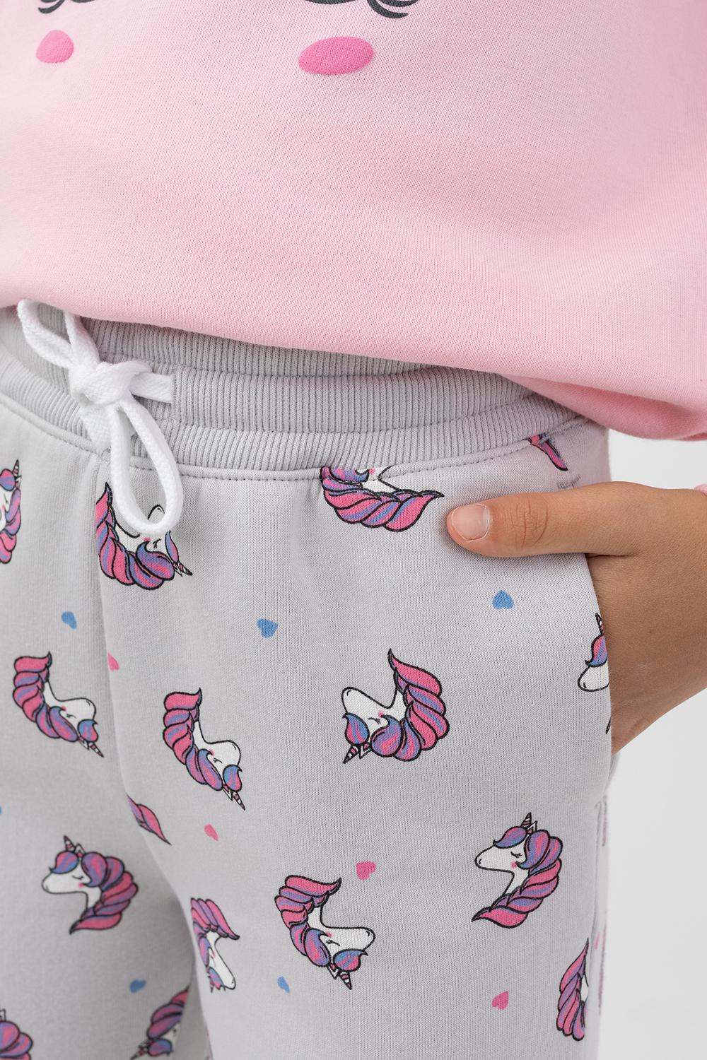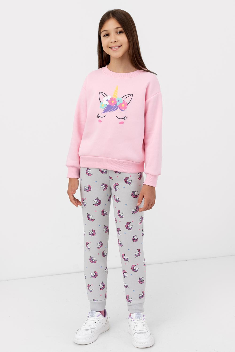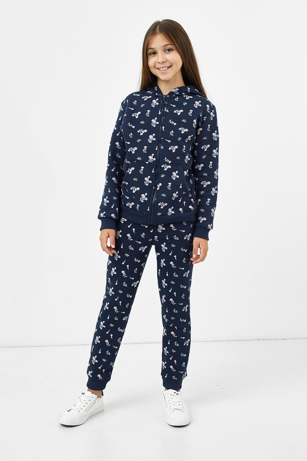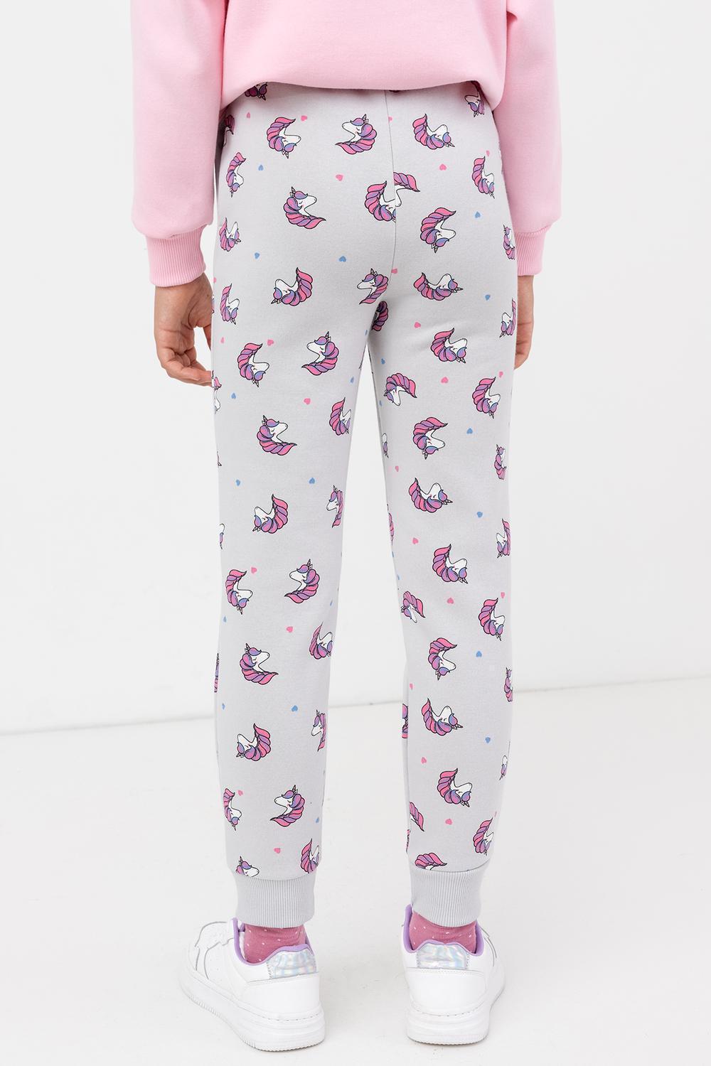 Брюки из трикотажного футера с теплым и нежным подчесом для девочек. Силуэт прямой. Пояс с резиной внутри и регулировочным шнурком-завязкой. Есть удобные боковые карманы. Штанины завершаются широкими манжетами. Мило и практично!