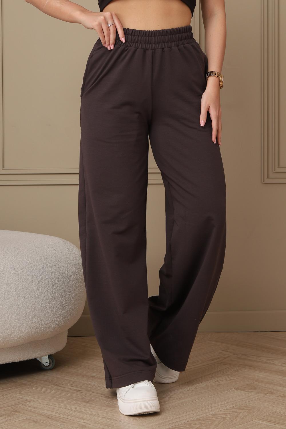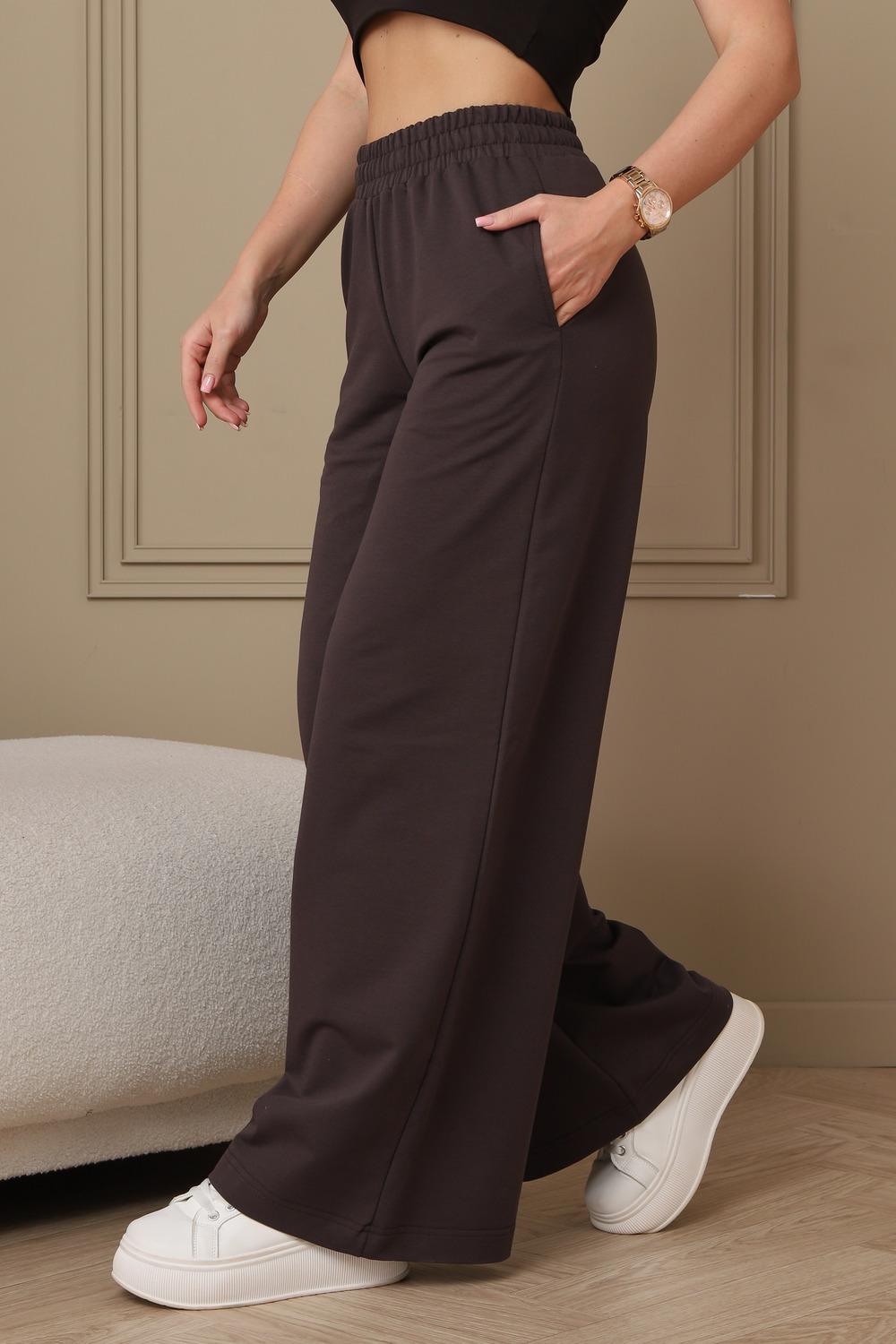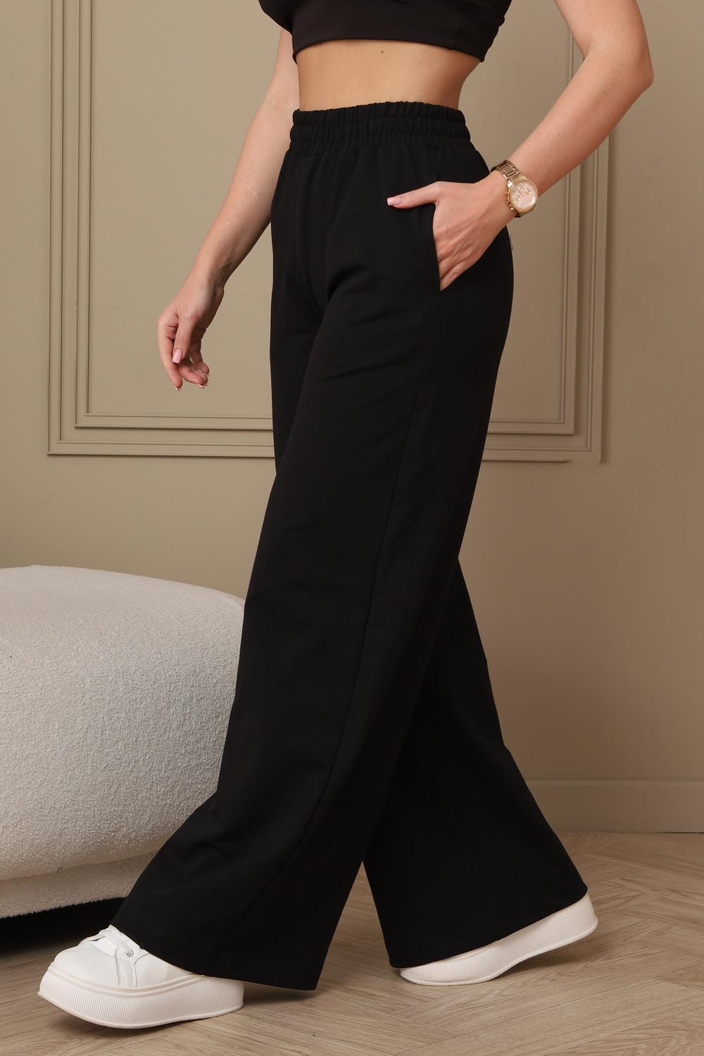 Широкие трикотажные брюки палаццо на резинке, идеальное сочетание комфорта и стиля. Брюки подходят для любого случая - от офиса до прогулок. Классический крой и однотонный цвет легко сочетаются с любым верхом. Высокая посадка подчеркивает талию и создает стройный силуэт. Свободный крой брюк палаццо обеспечивает максимальный комфорт и свободу движений. Ткань приятная к телу, хорошо тянется и не мнется. Сочетайте брюки палаццо с блузками, топами, футболками и свитерами.