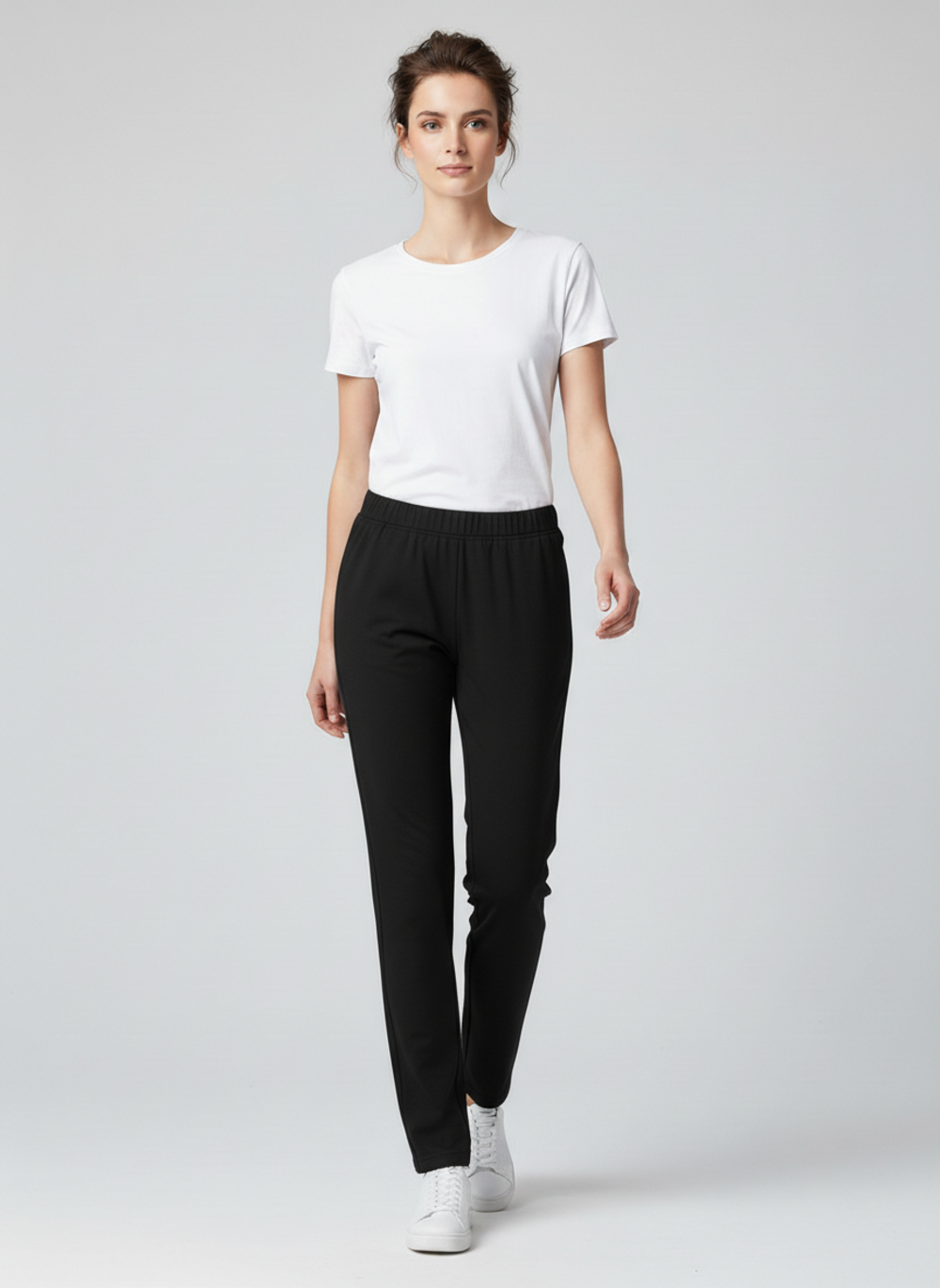 Женские брюки из футера 2-х нитки приталенного кроя — отличный выбор для тех, кто ценит сочетание комфорта и стиля. Мягкая, уютная ткань держит тепло и приятно ощущается на теле, а облегающий силуэт выгодно подчеркивает фигуру, создавая женственный образ. Такие брюки прекрасно подойдут для прогулок, повседневной носки или домашнего отдыха. Классическая модель отлично сочетается с различными элементами гардероба, позволяя создавать стильные и удобные образы на каждый день.