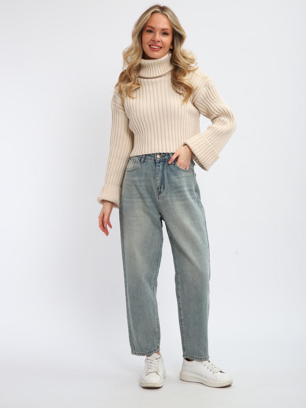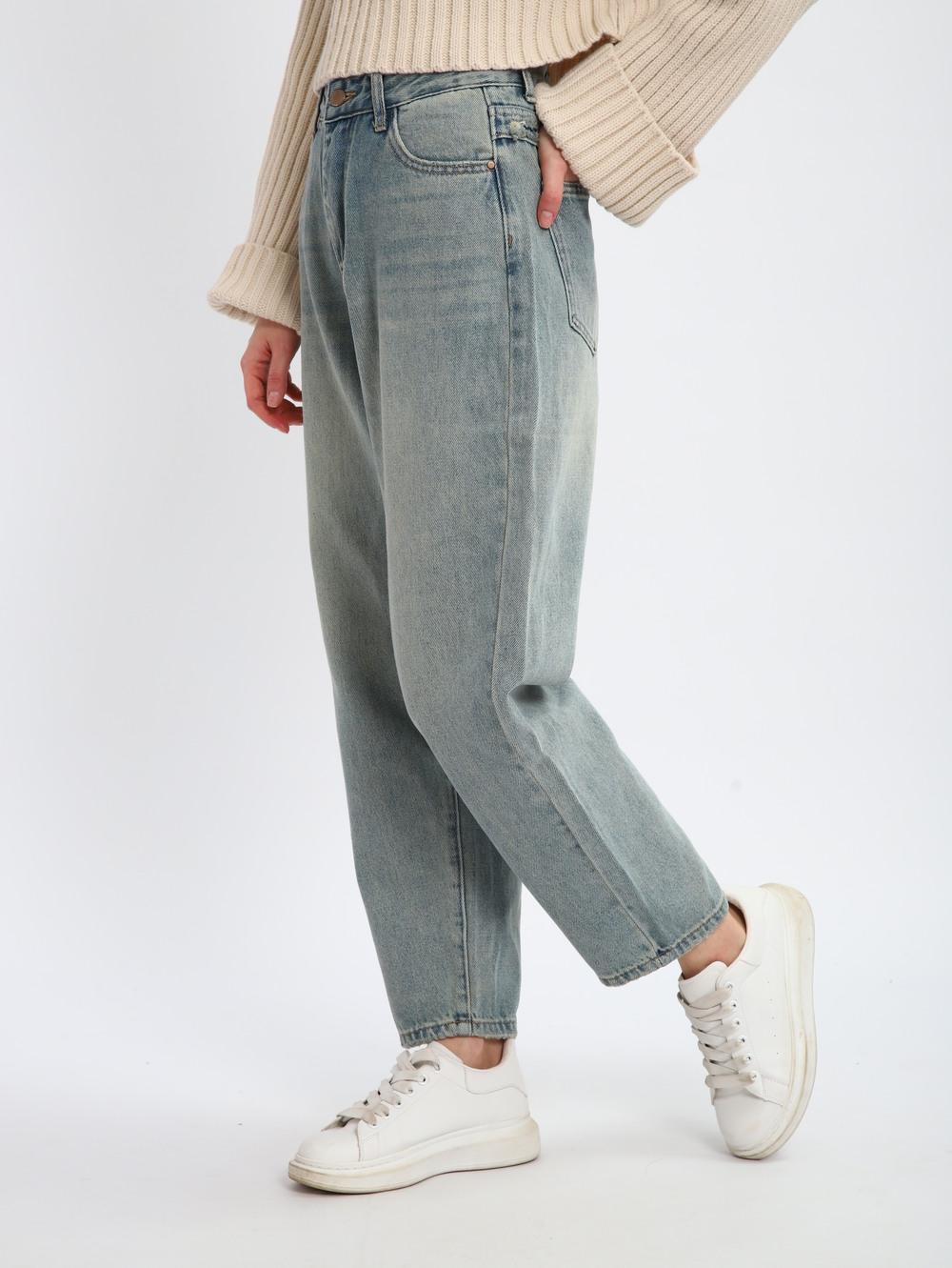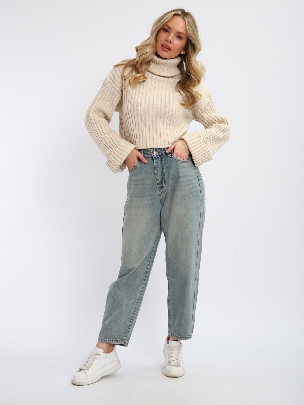 Джинсы женские на высокой посадке, светло-серые.