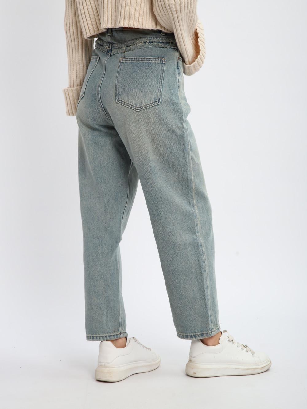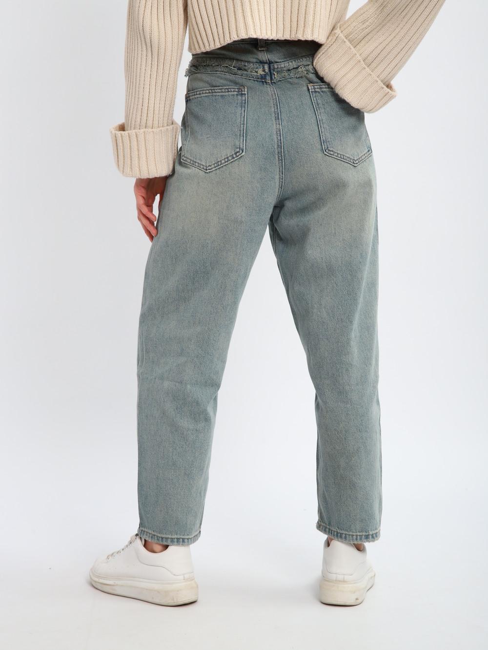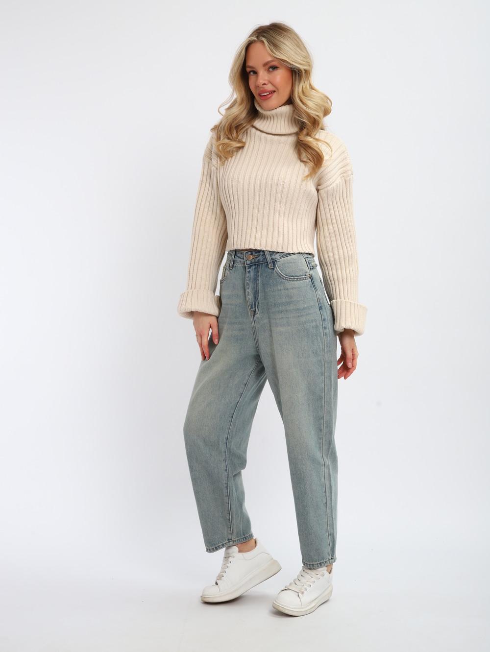 Джинсы женские на высокой посадке, светло-серые.