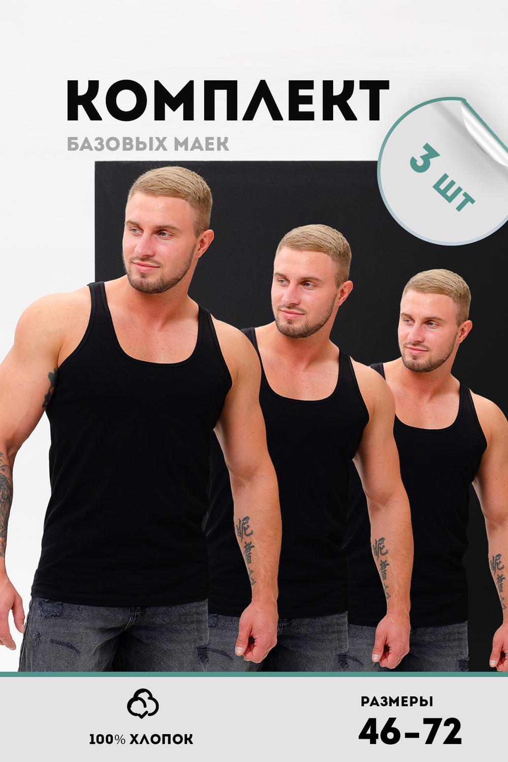 Бельевая мужская майка, широкий размерный ряд. Производство Узбекистан. Цвета: Черный 3шт, Белый - 3шт, Белый, черный - 2шт
