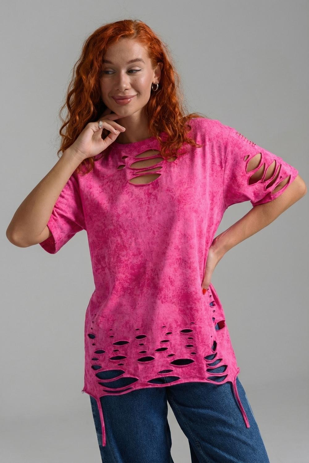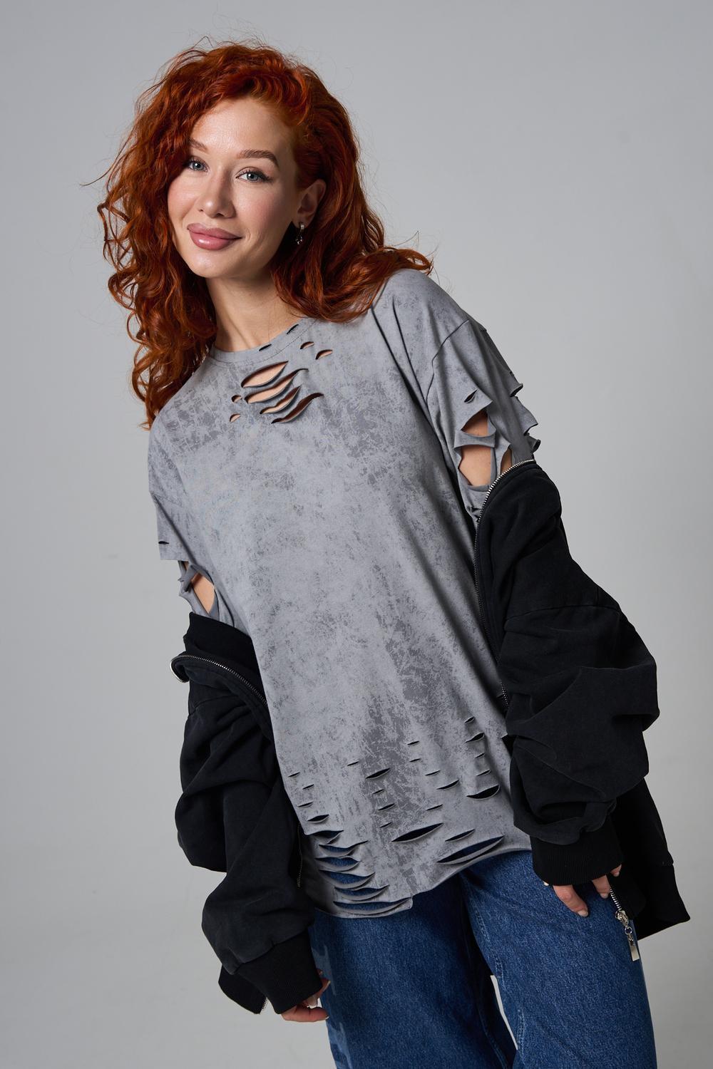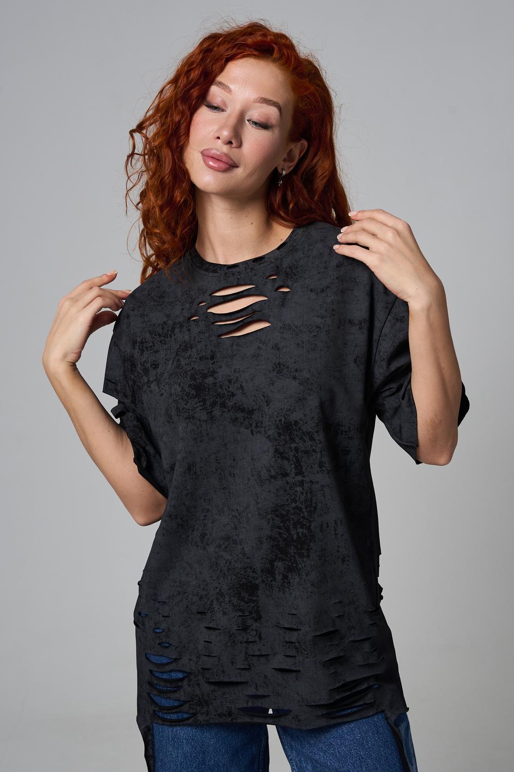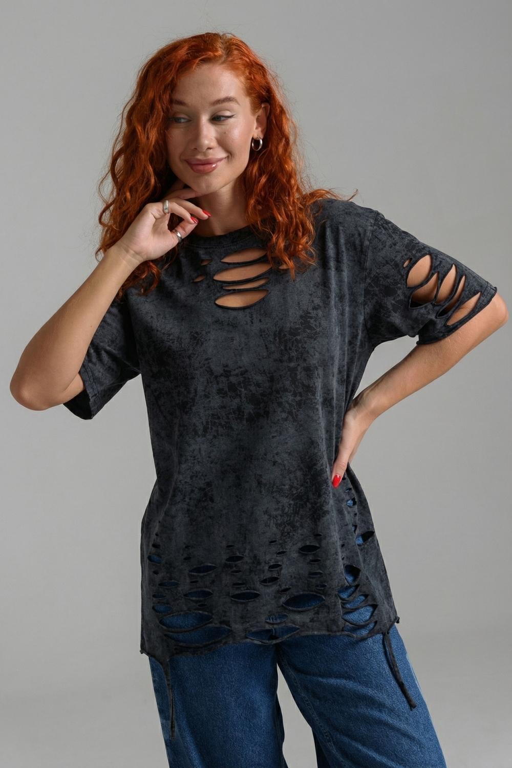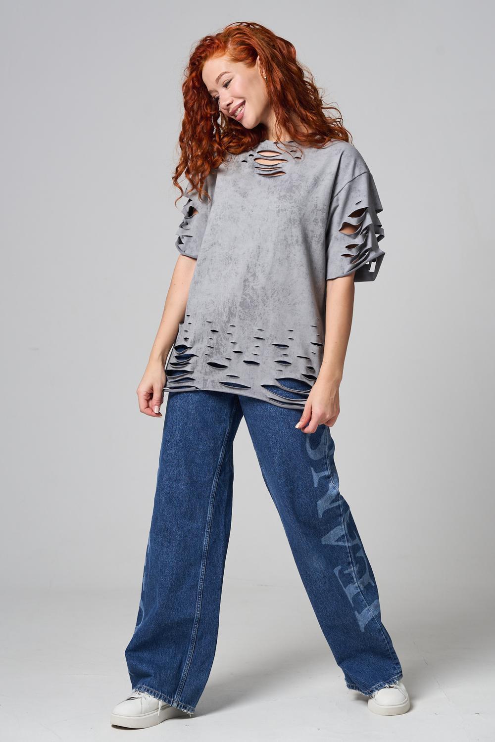Эта женская футболка оверсайз прекрасно подойдет как для повседневной носки, так и для создания стильного образа. Модель выполнена из мягкого хлопка, обеспечивая комфорт в носке. Оригинальный дизайн с рваными элементами добавит вашему образу дерзости и индивидуальности. Стильная модель нирвана подойдёт для высоких и невысоких, для полных и худых, и даже plus size.