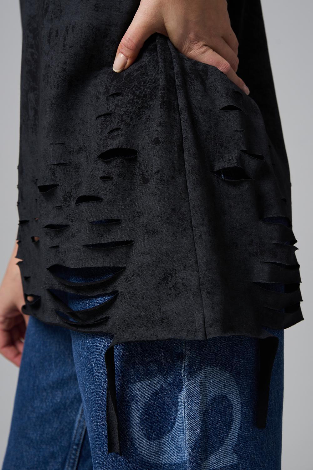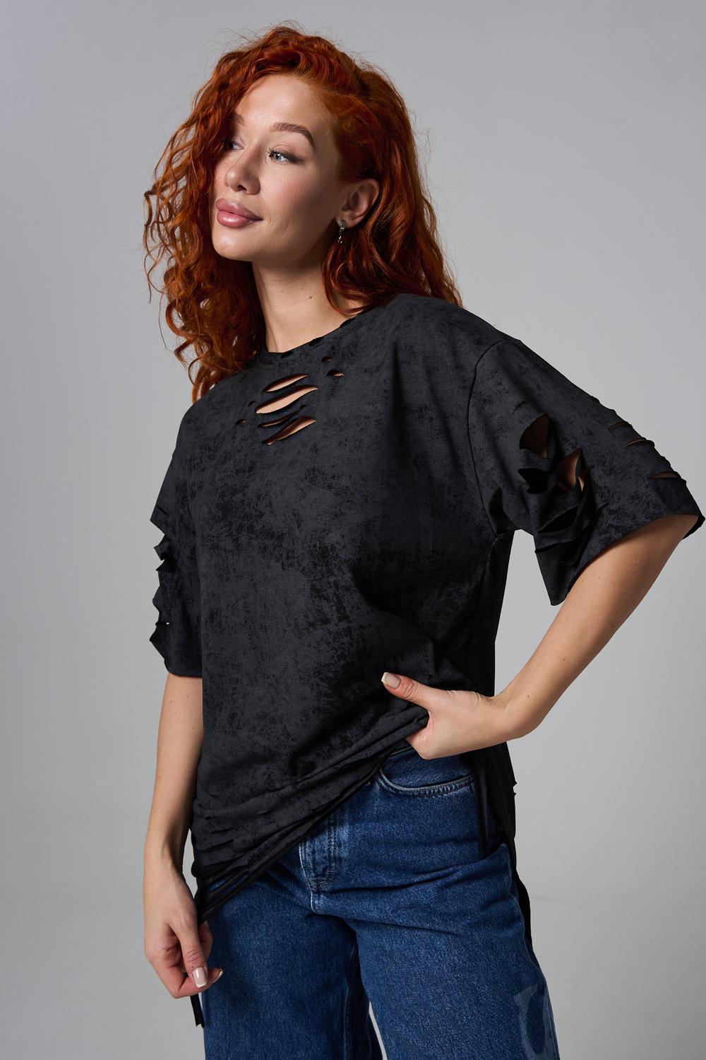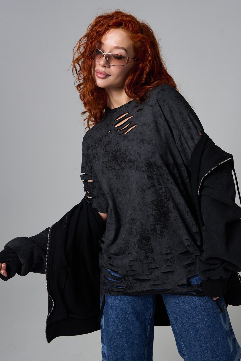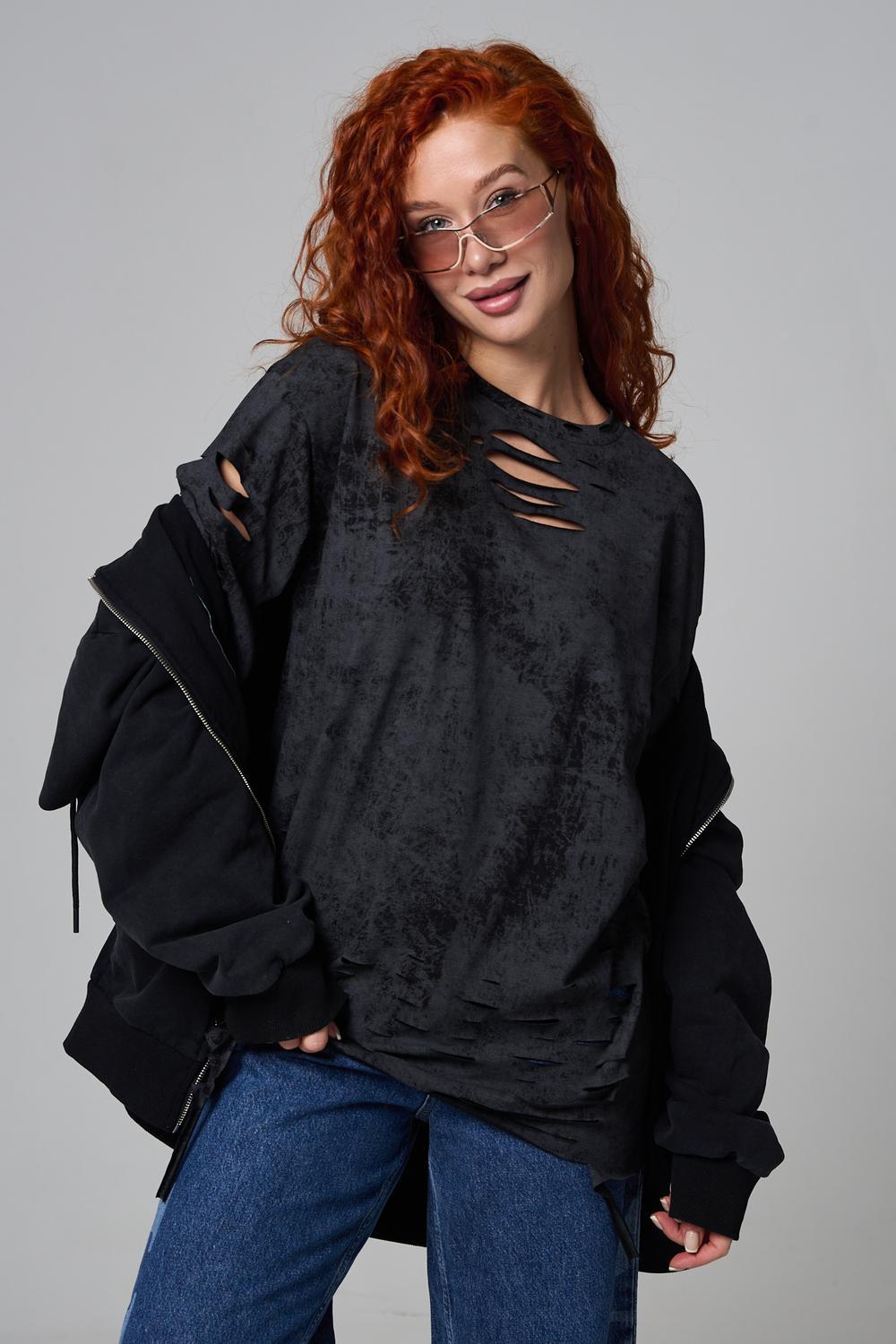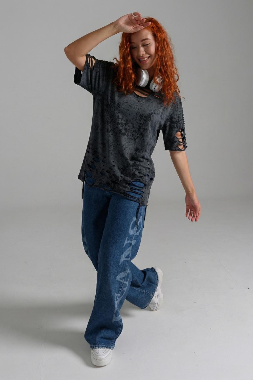 Эта женская футболка оверсайз прекрасно подойдет как для повседневной носки, так и для создания стильного образа. Модель выполнена из мягкого хлопка, обеспечивая комфорт в носке. Оригинальный дизайн с рваными элементами добавит вашему образу дерзости и индивидуальности. Стильная модель нирвана подойдёт для высоких и невысоких, для полных и худых, и даже plus size.