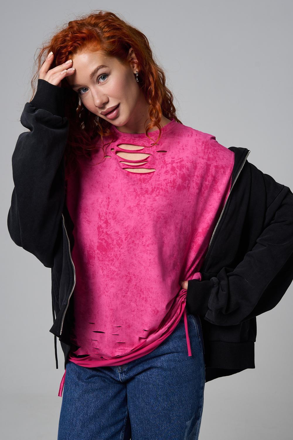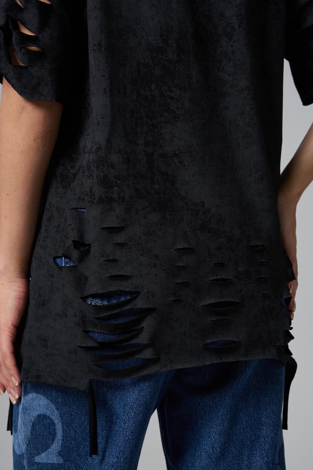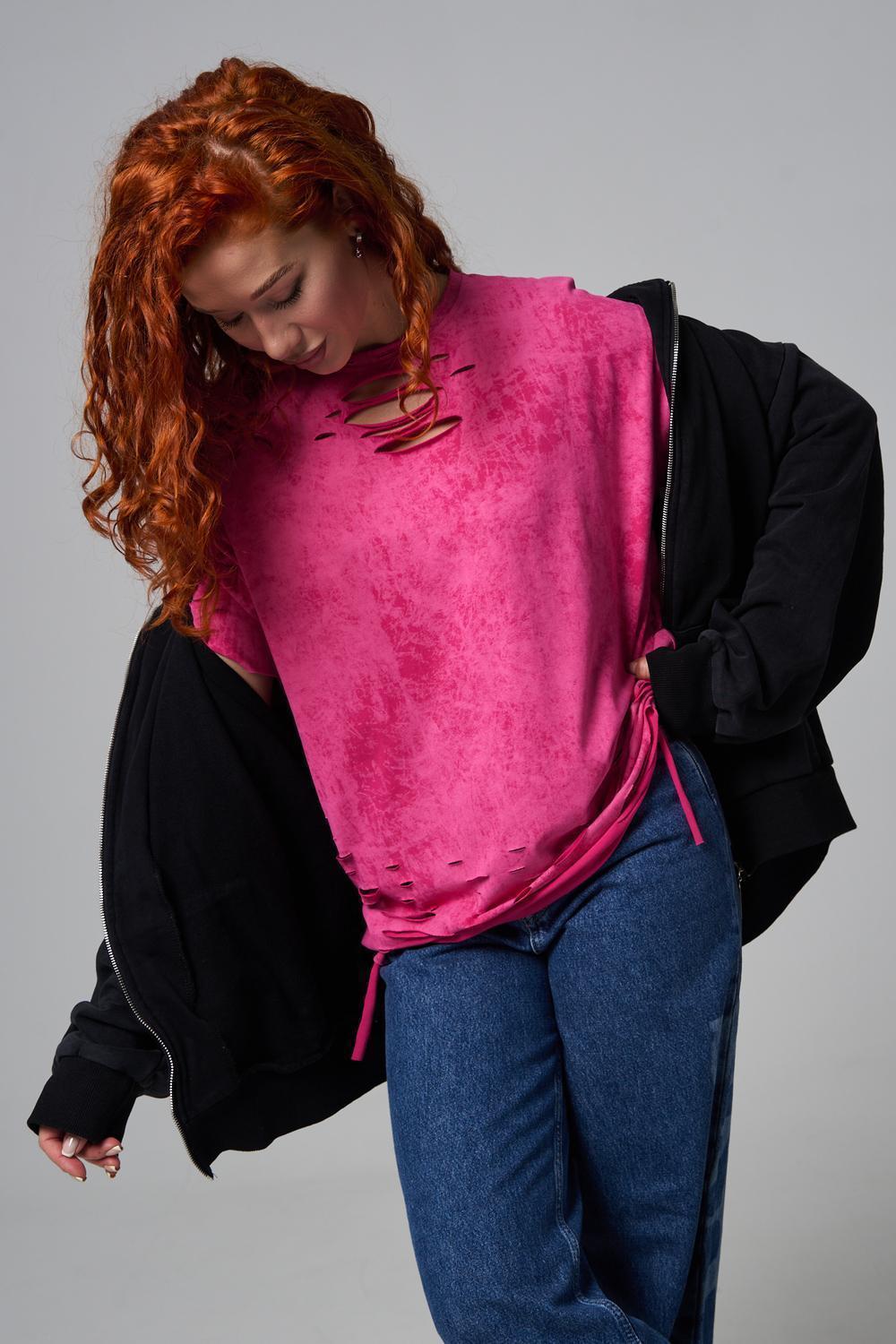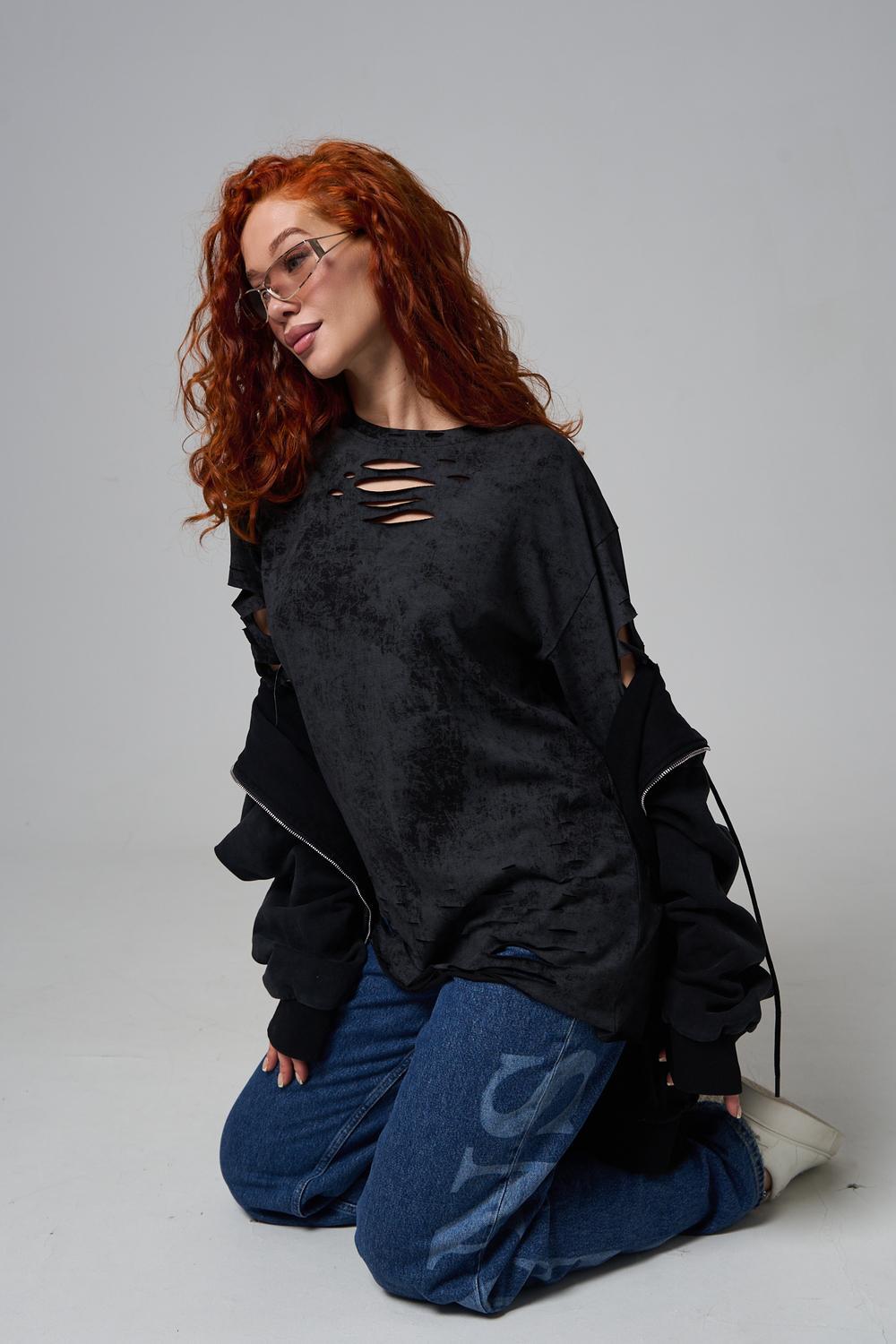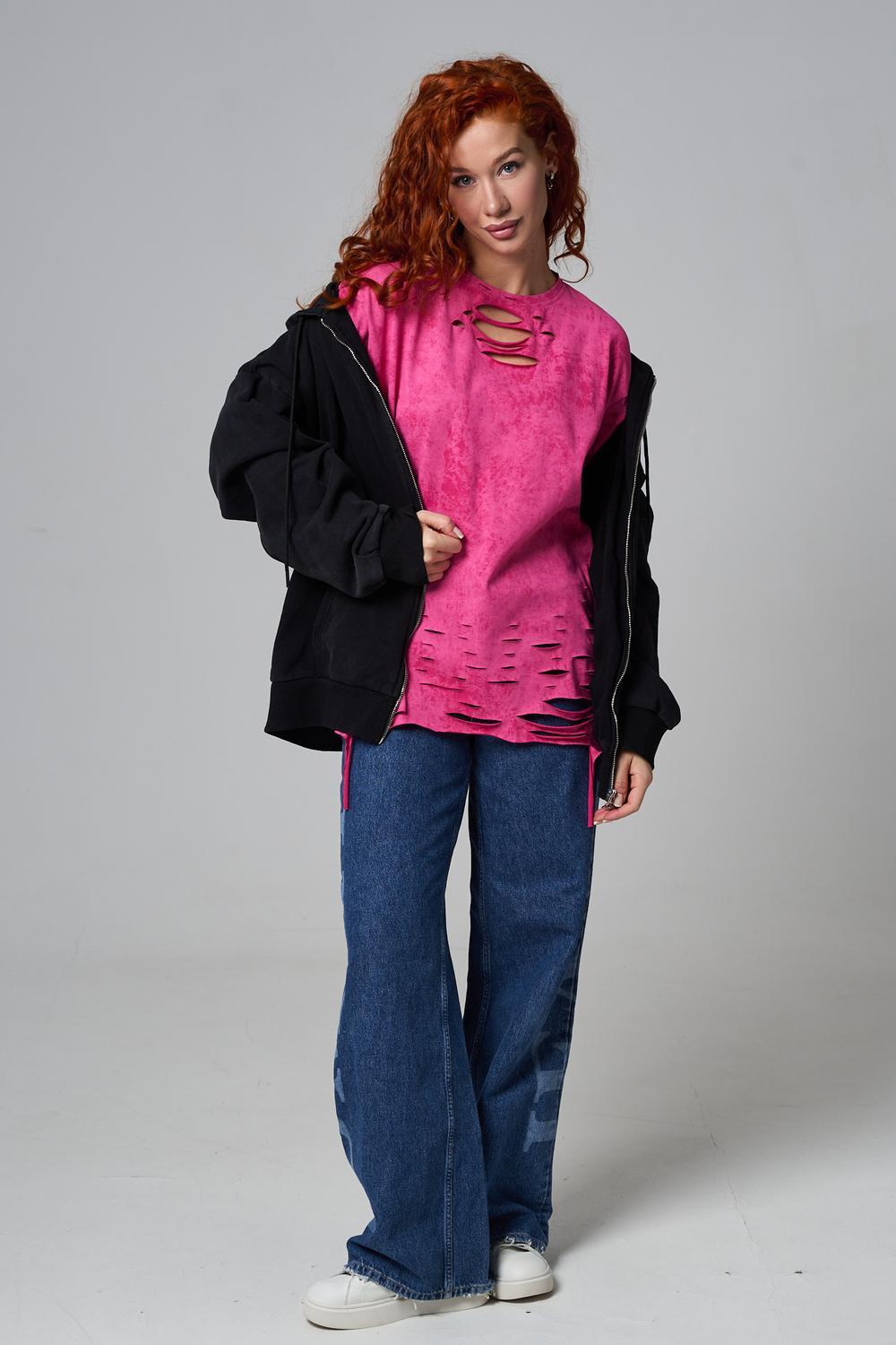 Эта женская футболка оверсайз прекрасно подойдет как для повседневной носки, так и для создания стильного образа. Модель выполнена из мягкого хлопка, обеспечивая комфорт в носке. Оригинальный дизайн с рваными элементами добавит вашему образу дерзости и индивидуальности. Стильная модель нирвана подойдёт для высоких и невысоких, для полных и худых, и даже plus size.