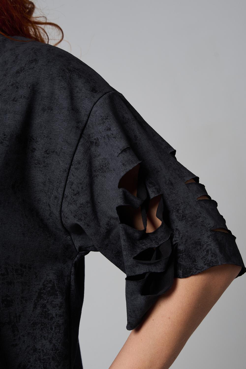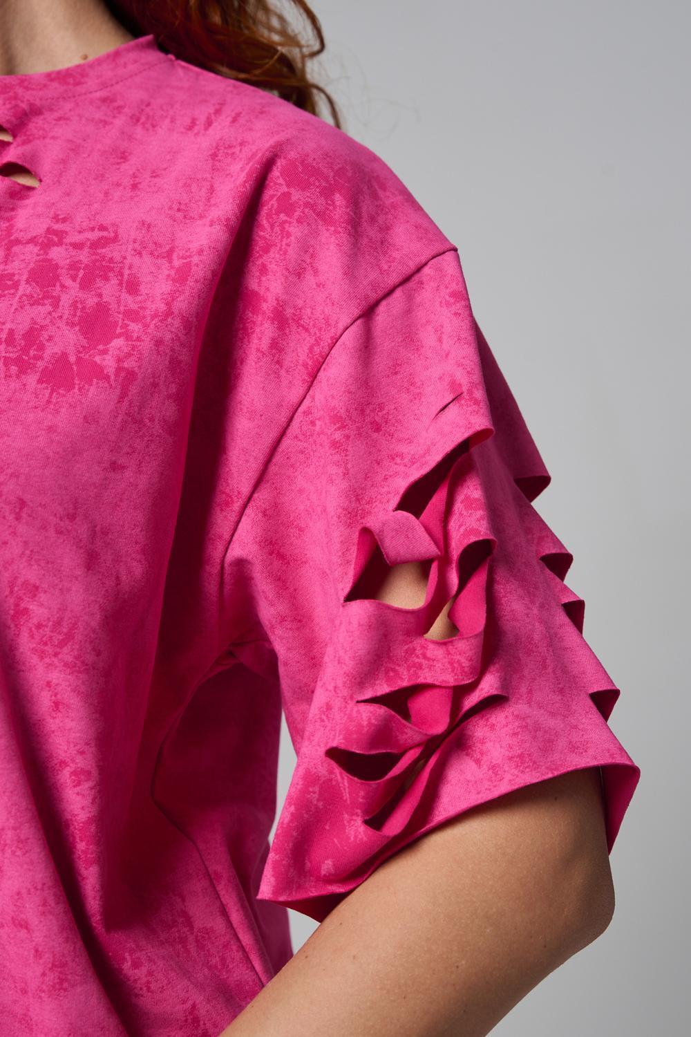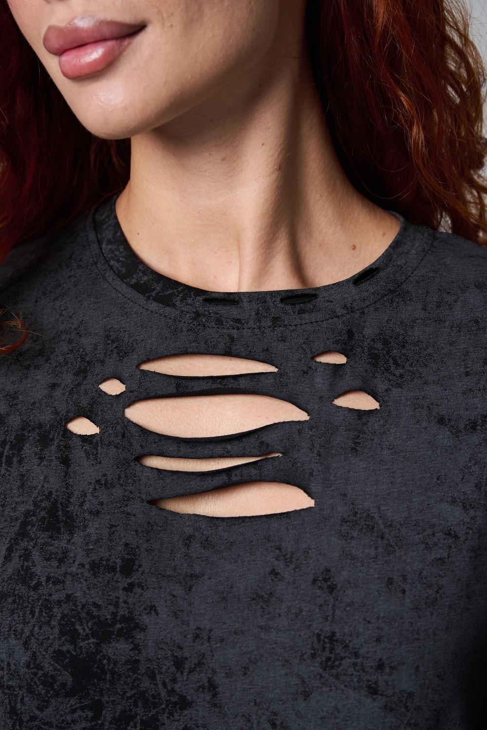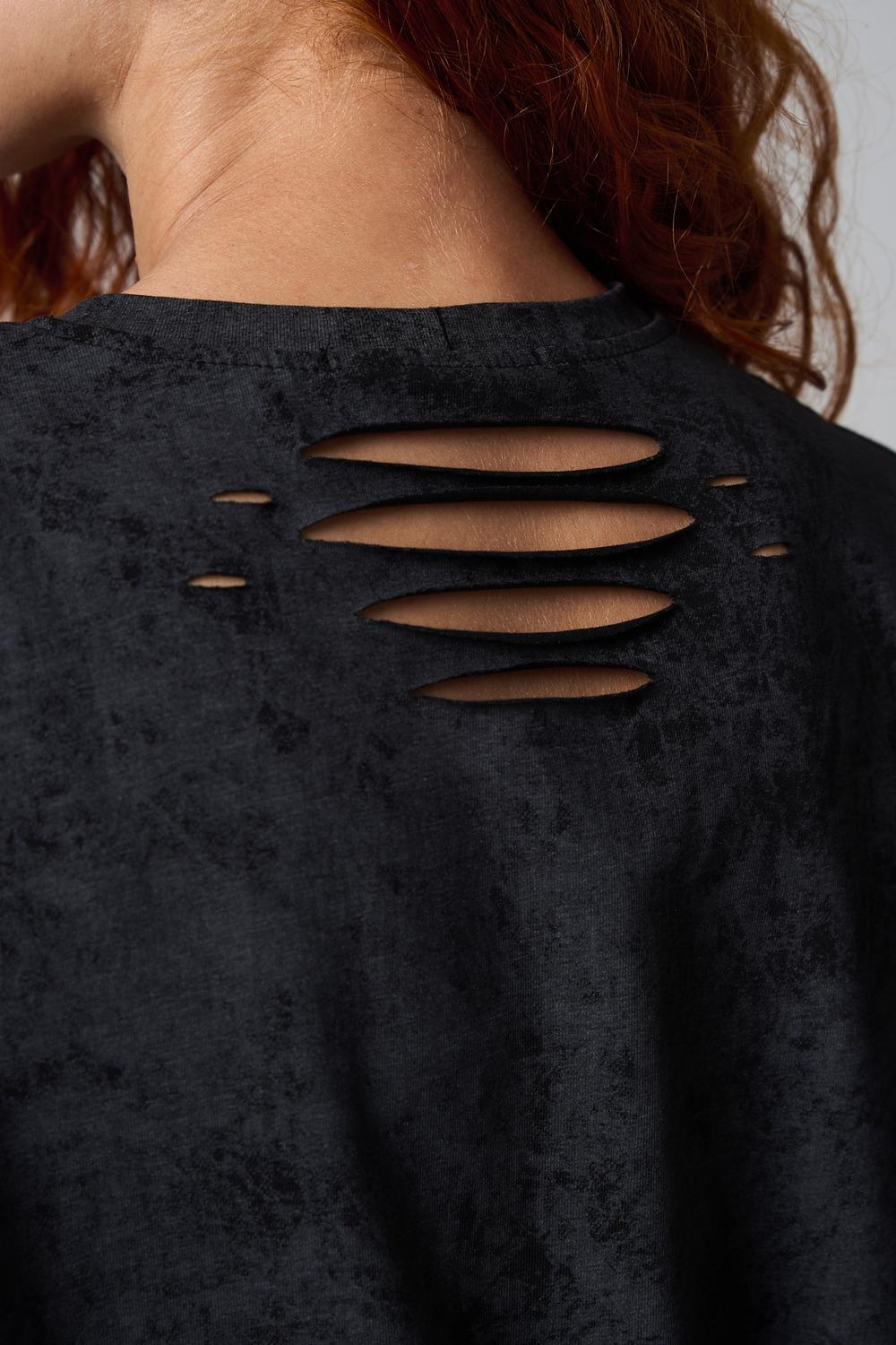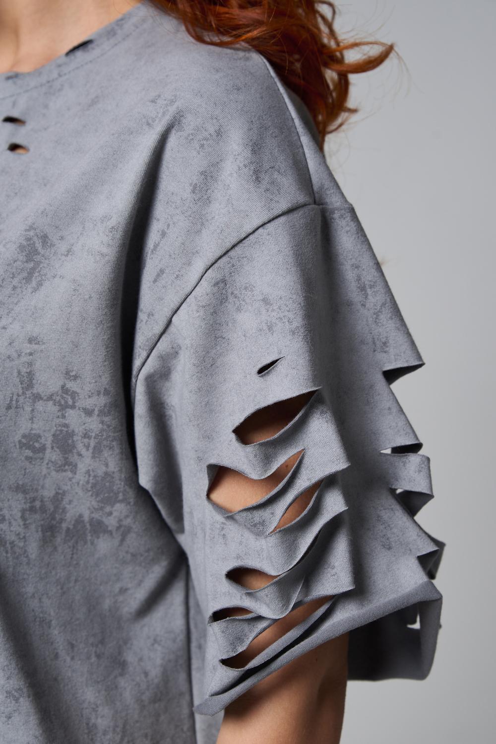 Эта женская футболка оверсайз прекрасно подойдет как для повседневной носки, так и для создания стильного образа. Модель выполнена из мягкого хлопка, обеспечивая комфорт в носке. Оригинальный дизайн с рваными элементами добавит вашему образу дерзости и индивидуальности. Стильная модель нирвана подойдёт для высоких и невысоких, для полных и худых, и даже plus size.