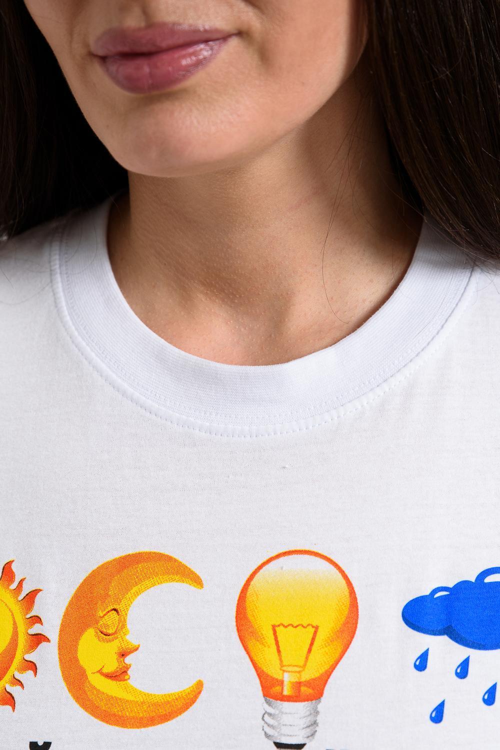Футболка это идеальный выбор для женщин, предпочитающих комфорт и стиль. Сделанная из 100% хлопка, эта футболка обеспечивает отличную дышащую способность, делая её идеальной для домашнего использования, пляжного отдыха или просто для повседневного ношения. Уникальный принт на передней части добавляет элемент индивидуальности и стиля, делая эту футболку отличным дополнением к вашему гардеробу.