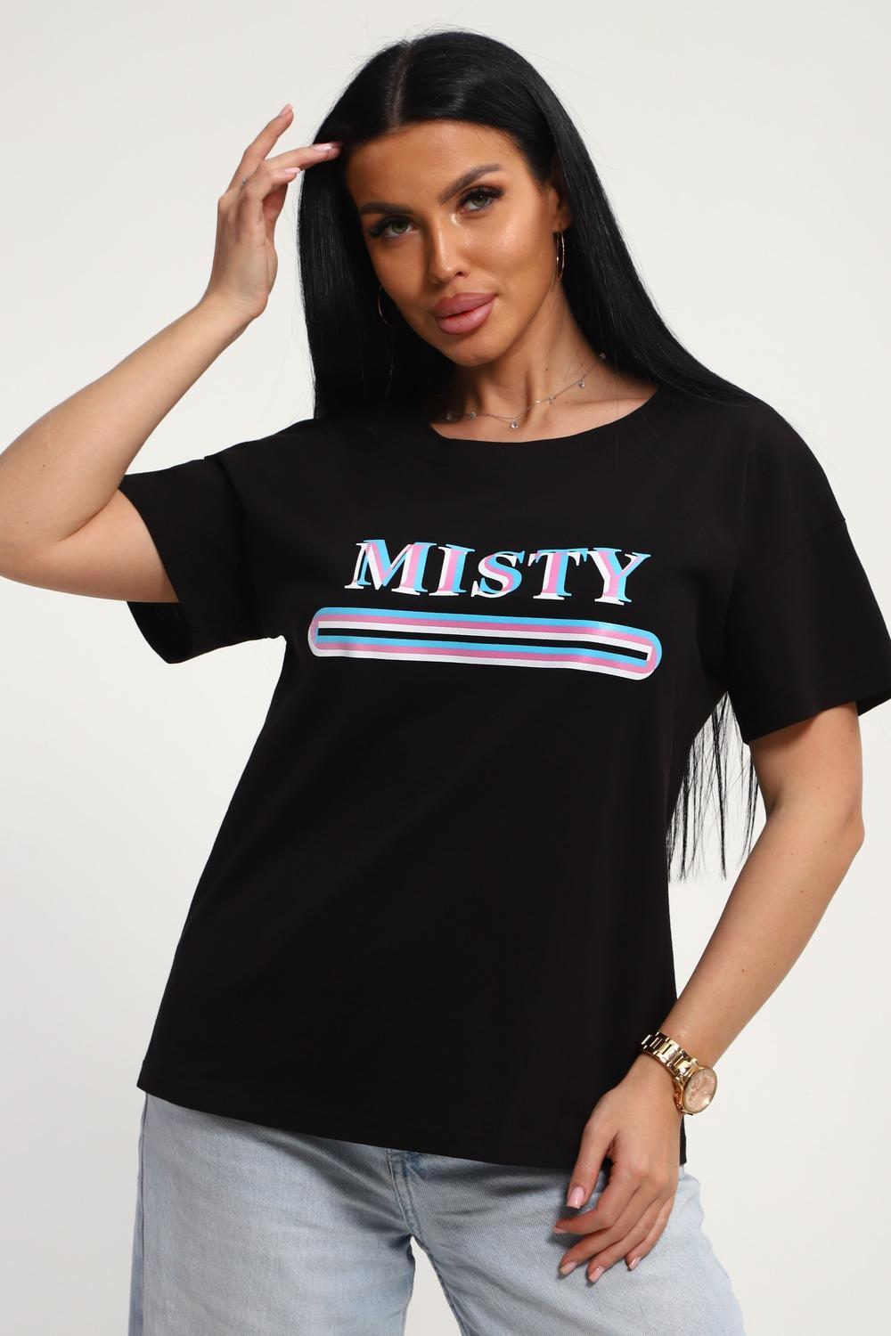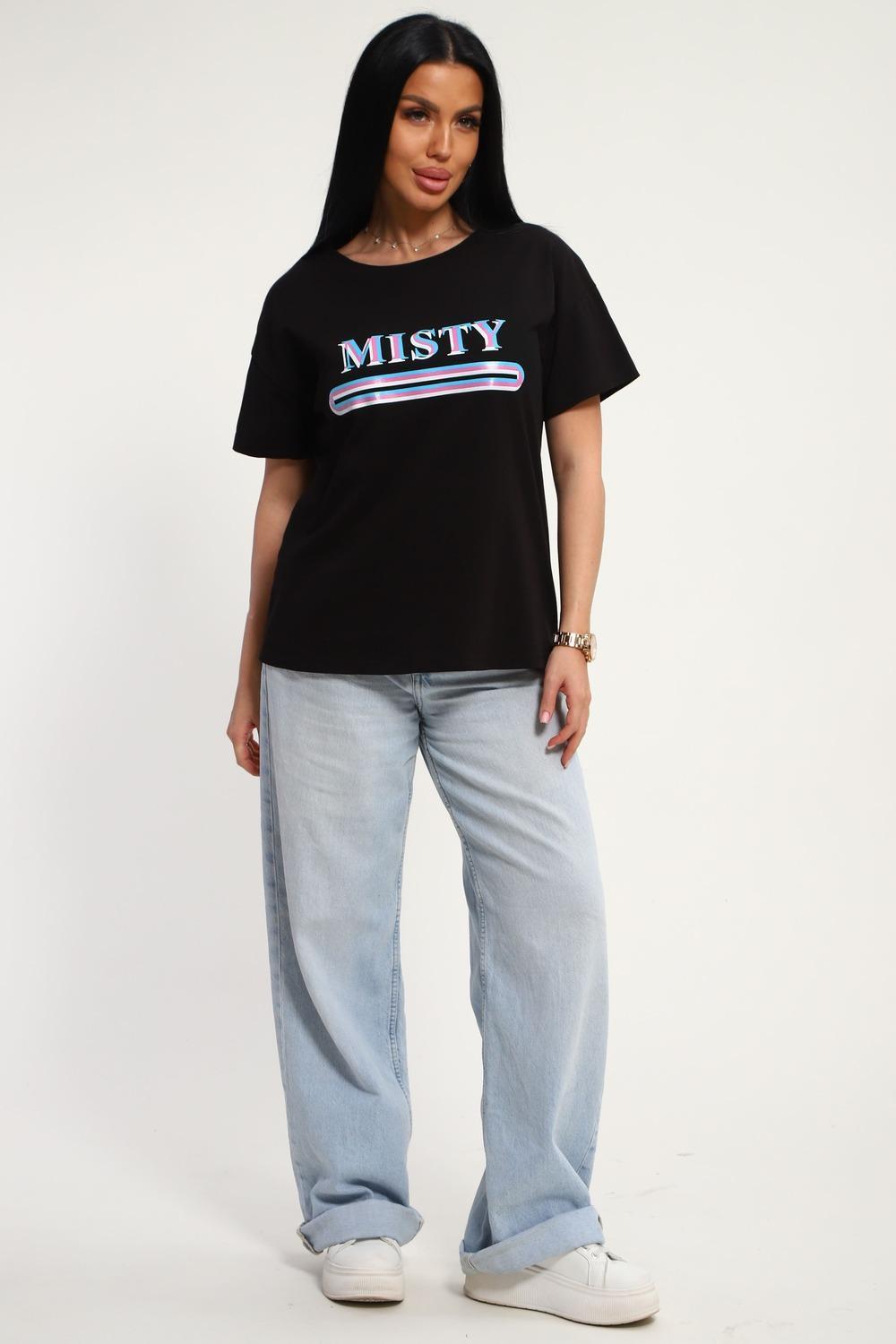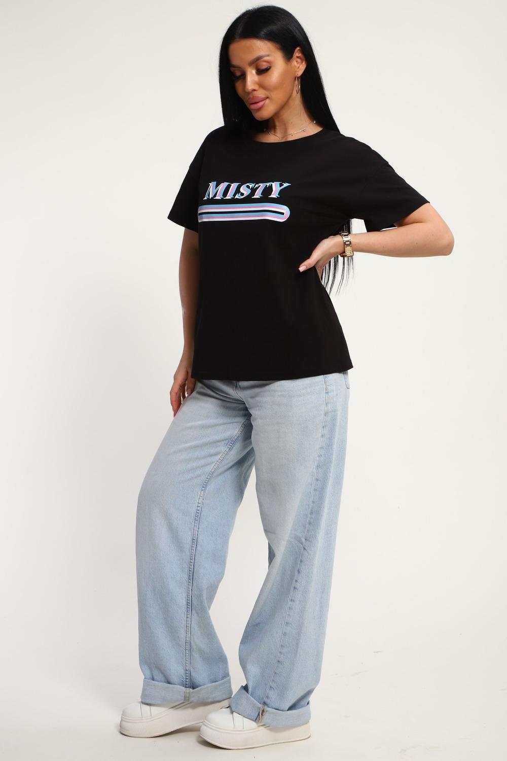 Футболка женская из гладкокрашенного трикотажа, хлопок 100%. Прямого силуэта, свободного облегания. горловина круглой формы. Рукав короткий. Низ изделия прямой. На полочке принт, шелкография.