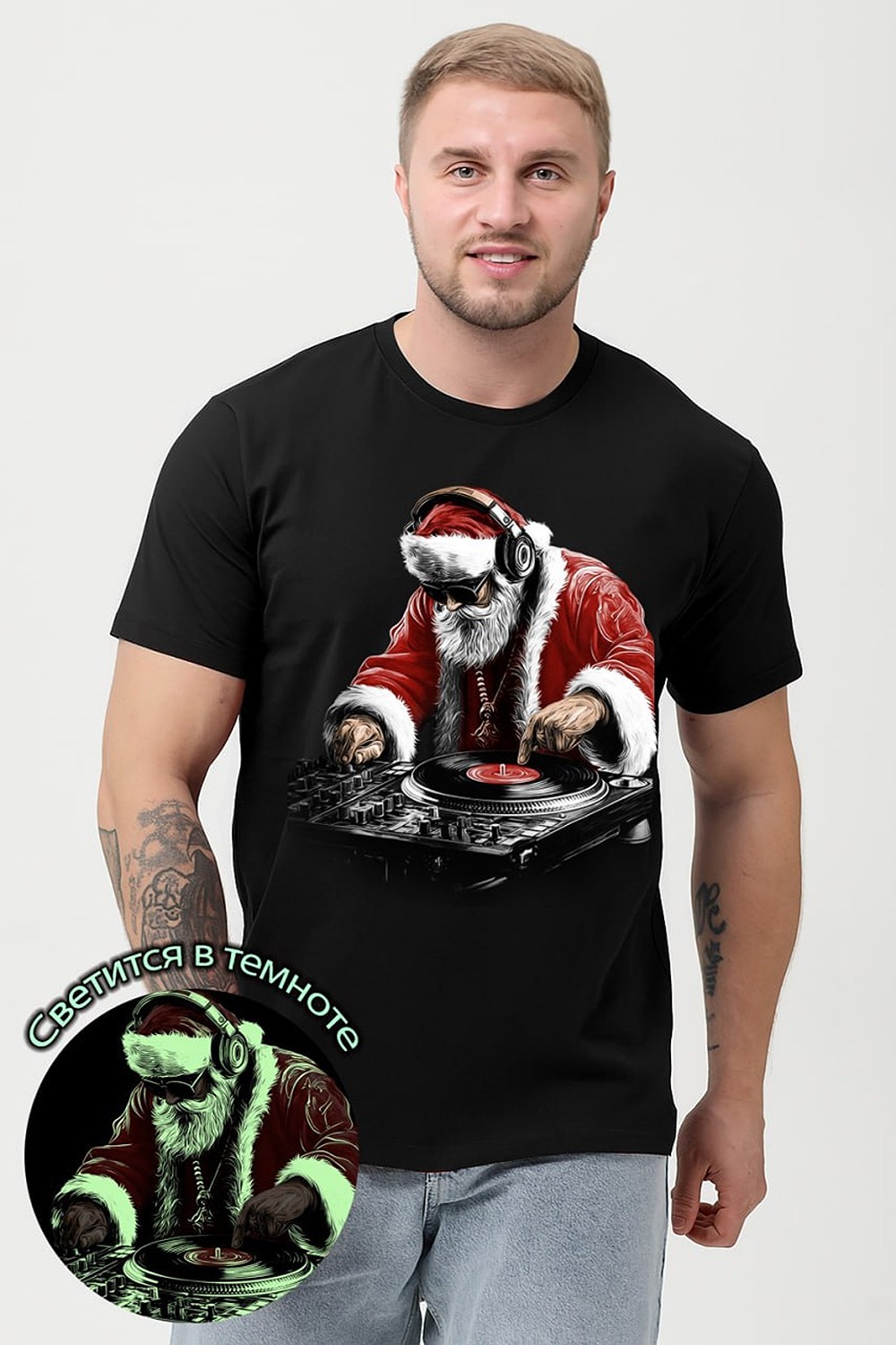 Особенность: принт светится в темноте! В ультрафиолетовом свете или полной темноте Санта засияет зелёным свечением — идеально для новогодних вечеринок, концертов или просто для wow-эффекта. Футболка из мягкого хлопкового трикотажа (100% хлопок, 180 г/м²), oversize-крой для комфорта, круглый вырез. Размеры: 46-60. Подходит для casual-луков с джинсами или шортами.