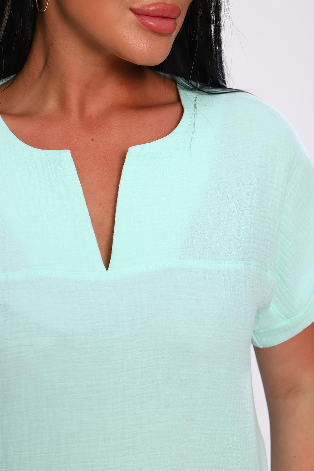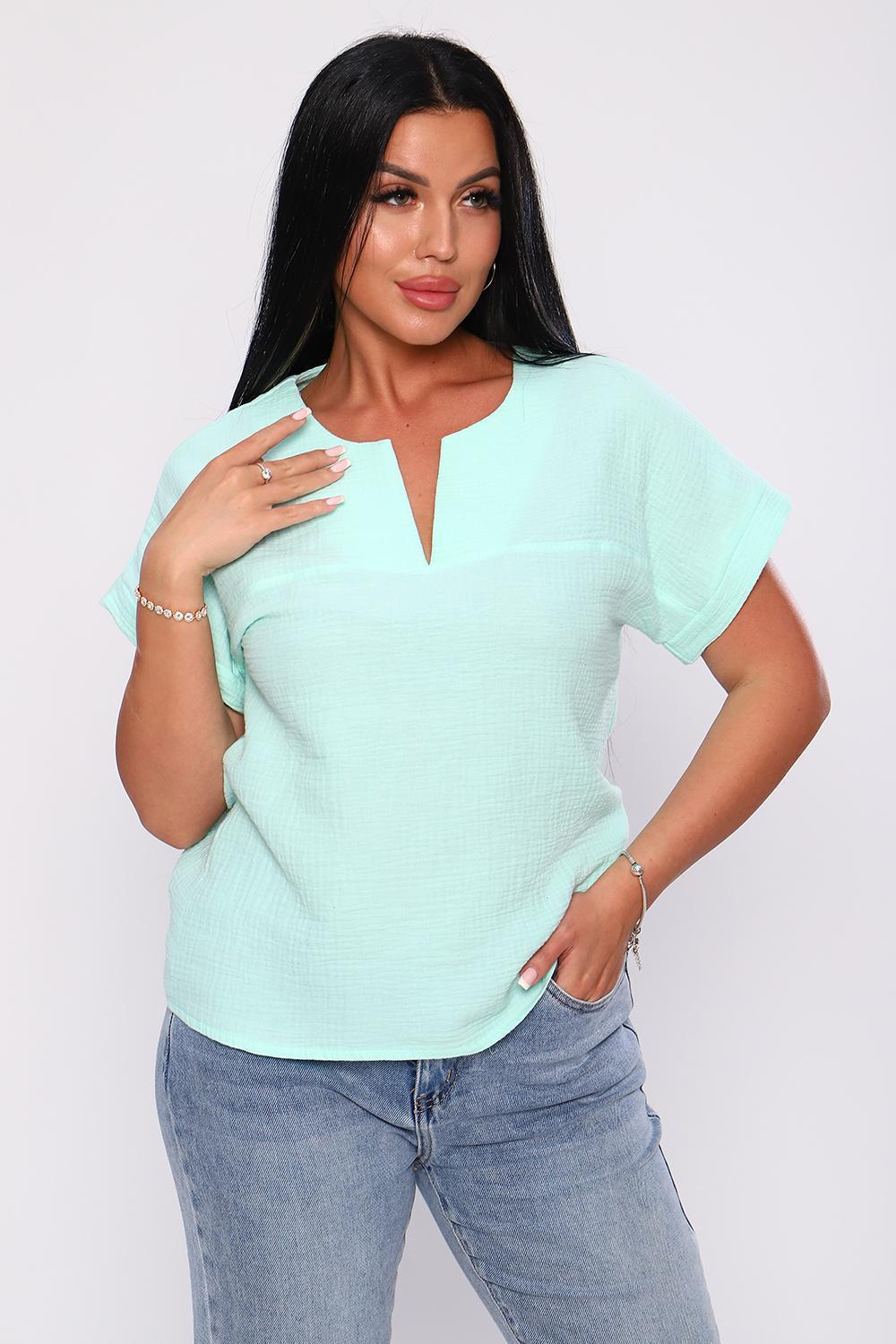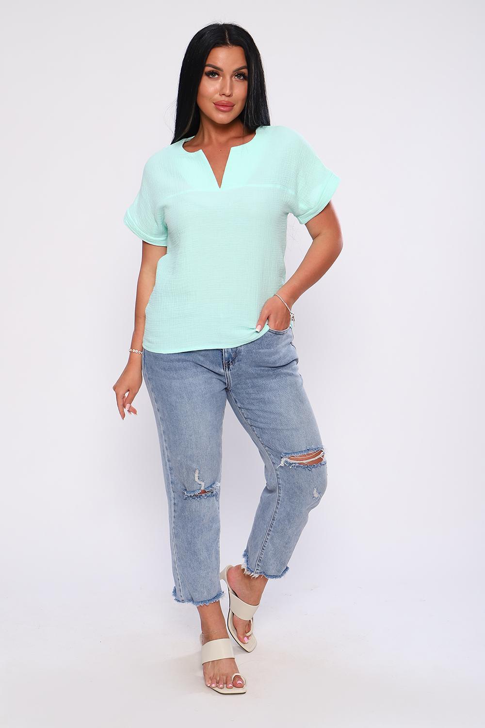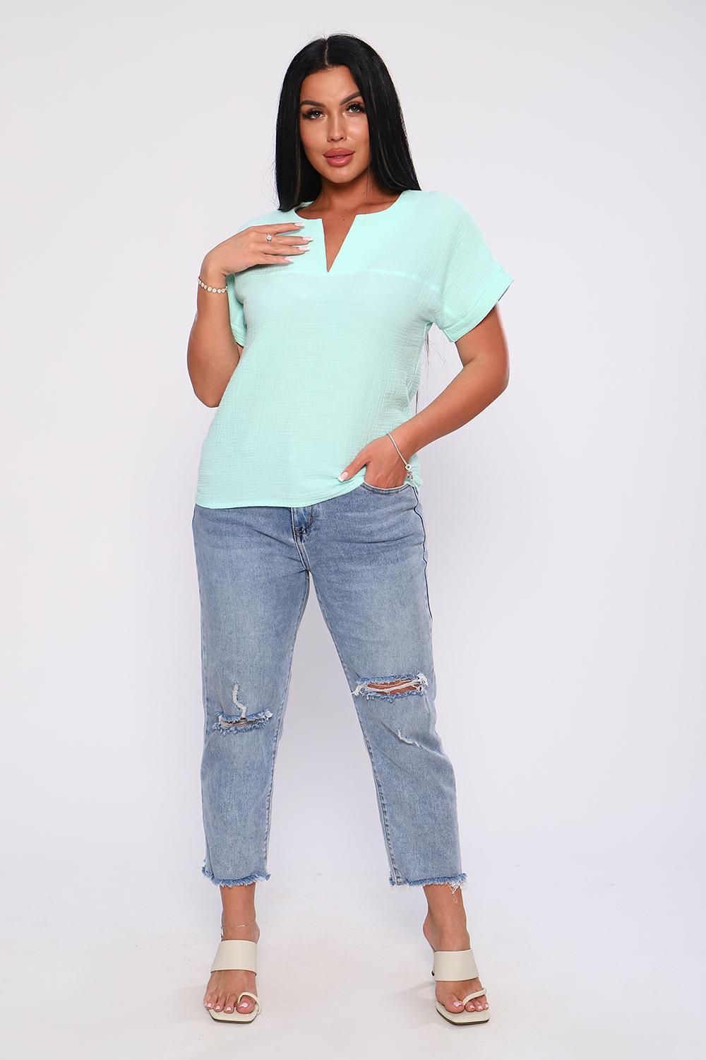 Удобная и практичная футболка из муслина - настоящая находка для тех, кто хочет выглядеть элегантно в любое время года. Муслин, состоящий из 100% хлопка, обеспечивает комфорт и свежесть, позволяет коже дышать в любую погоду. Свободный крой футболки подчеркивает фигуру, обеспечивает свободу движения. Спущенный рукав с небольшим манжетом придает законченность образу, V-образный вырез горловины подчеркнет вашу женственность и удлинит шею. Футболка из муслина проста в уходе, быстро сохнет, не требует глажки. В ней вы будете чувствовать себя уверенно и комфортно и на работе, и на отдыхе. Носите ее самостоятельно и с пиджаком - она гармонично дополнит и деловой костюм , и летний наряд.