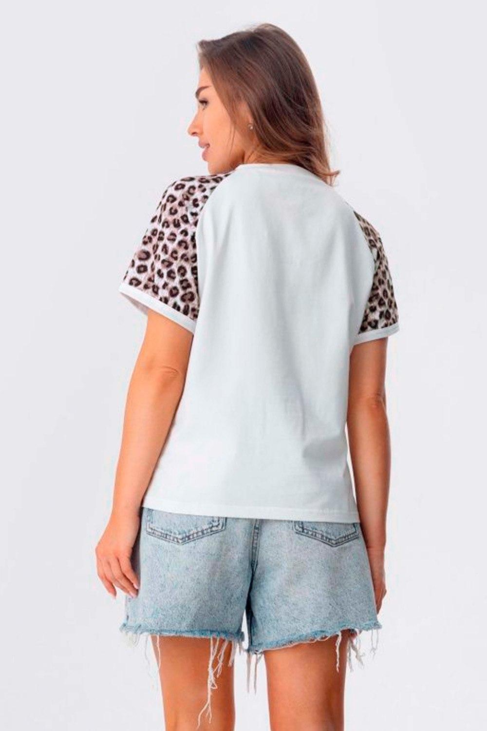 Стильная женская футболка из хлопка - настоящая находка для вашего гардероба! Модель воплощает в себе последние тренды pinterest, сочетая комфорт и элегантность в каждой детали. Премиальный хлопок обеспечивает максимальный комфорт в летний период - ткань легкая, приятная к телу и отлично пропускает воздух. Леопардовый принт наносится на рукава современными технологиями, что гарантирует его долговечность, а сама футболка сохраняет форму после множества стирок. Футболку женскую летнюю от бренда "Ивановский Трикотаж" можно носить под пиджак в офис, школу или университет. Создайте свой неповторимый образ с этой универсальной футболкой - она станет основой вашего стильного гардероба на каждый день!