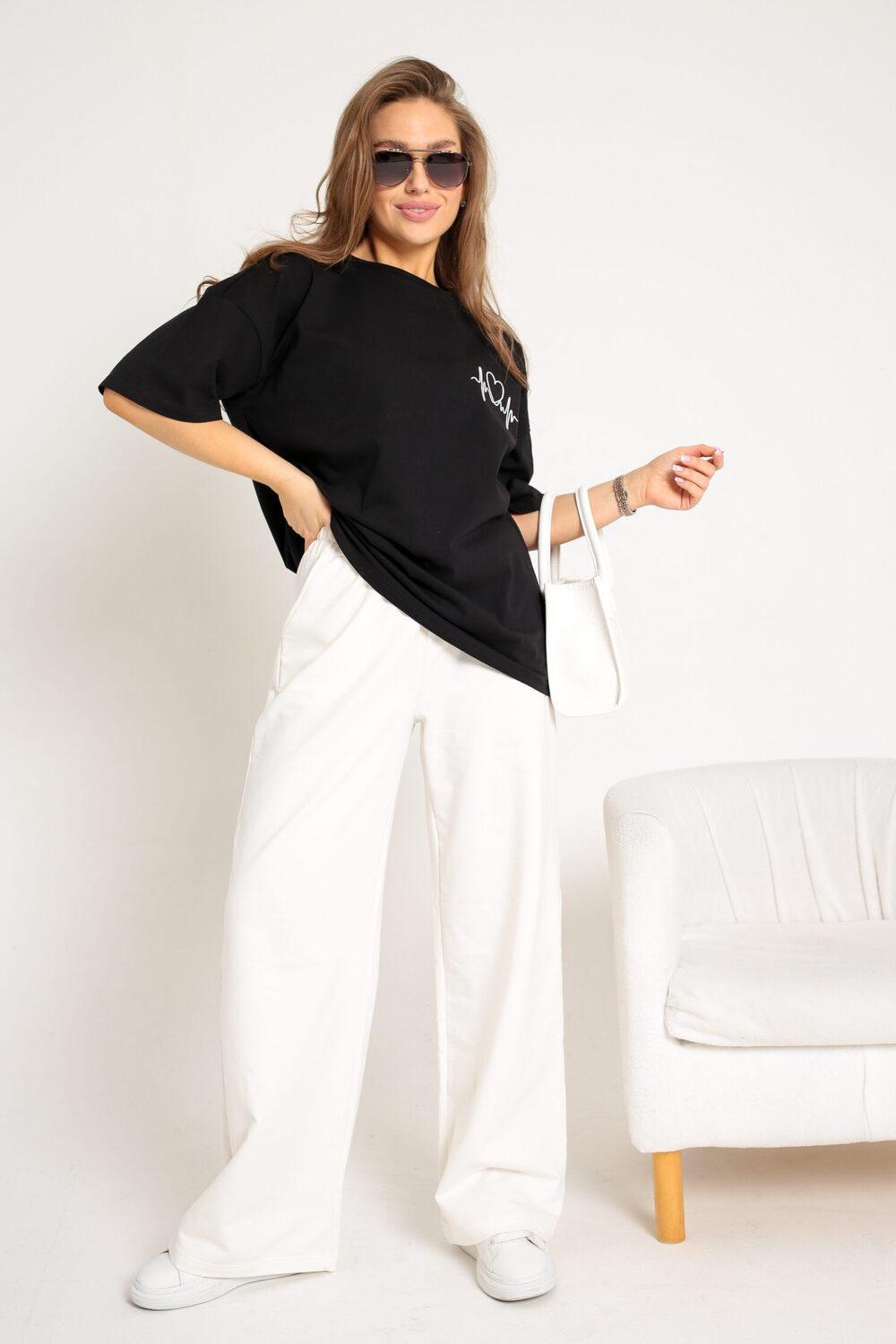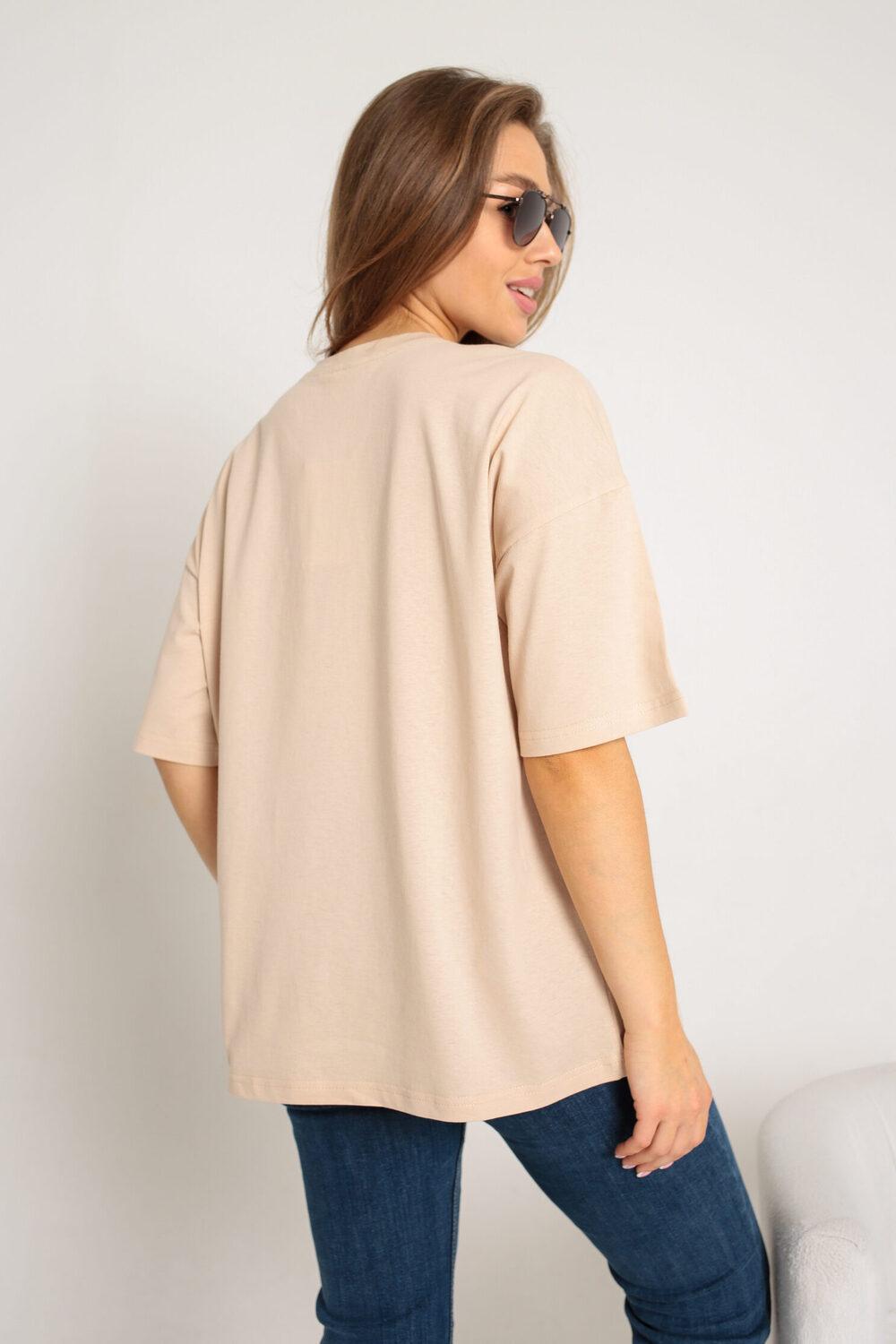 Бежевый и черный цвет позволяет легко сочетать футболку с различными элементами вашего гардероба, будь то джинсы, юбка или шорты. Эта футболка женская идеально подходит для создания как повседневных, так и более нарядных образов. Футболка женская однотонная с таким изысканным дизайном обязательно станет важной частью вашего гардероба.