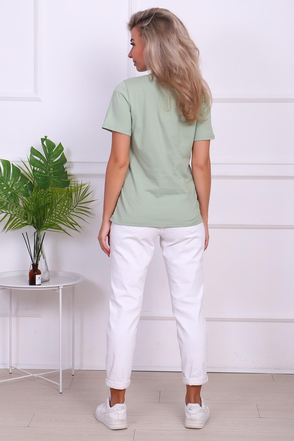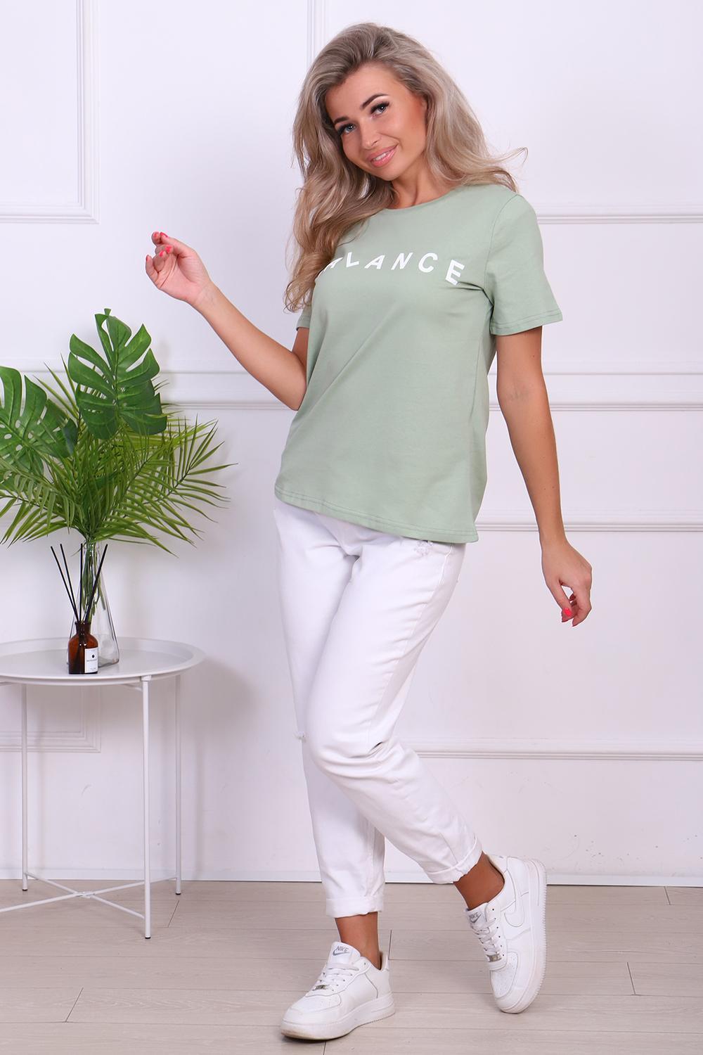 Футболка женская с коротким втачным рукавом, горловина круглой формы, на детали переда печать.