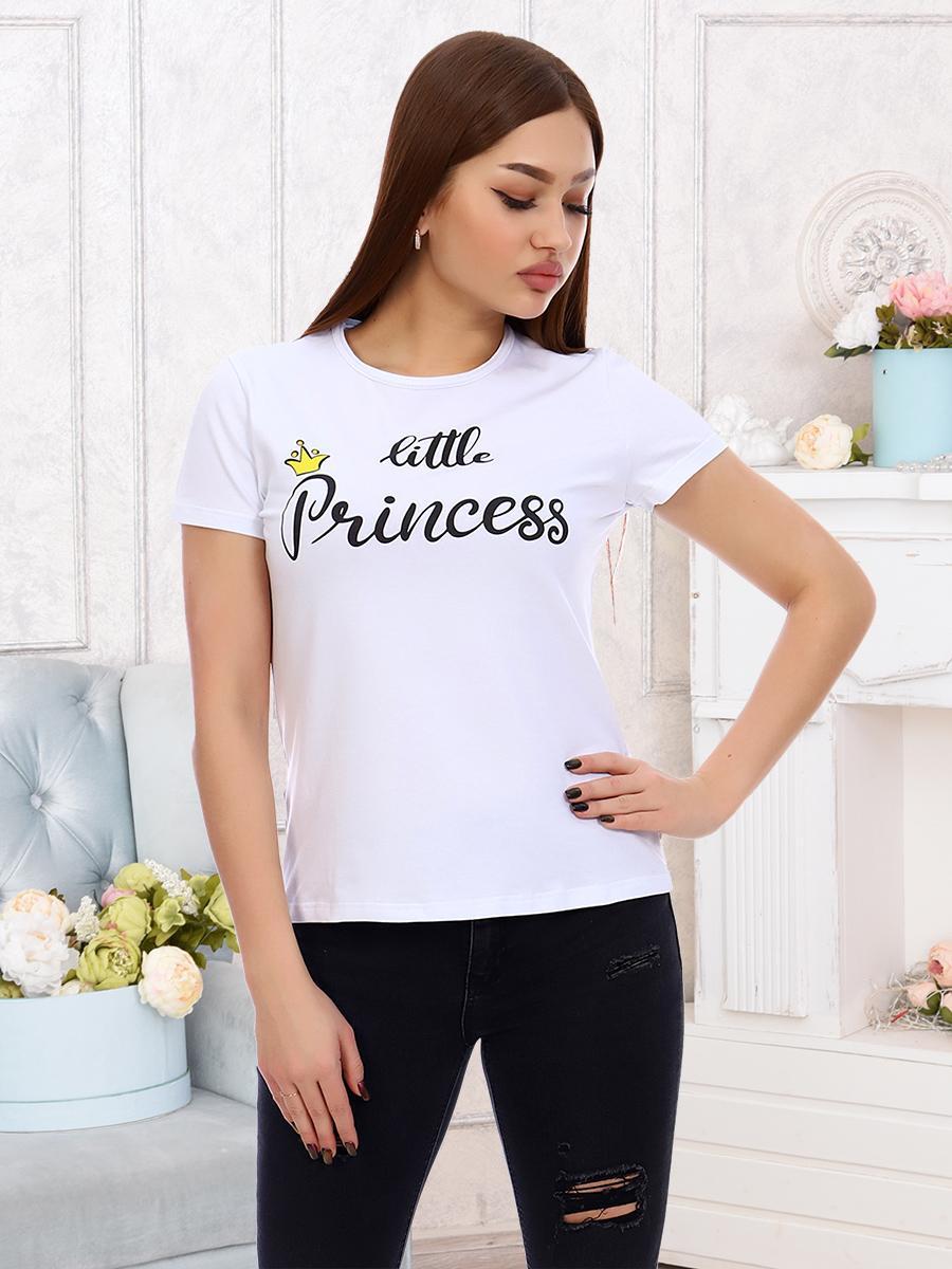 Футболка женская с коротким втачным рукавом, горловина круглой формы, на детали переда печать.