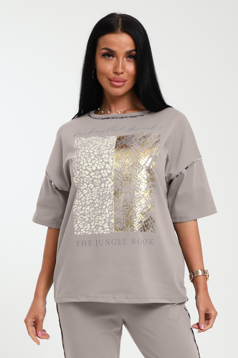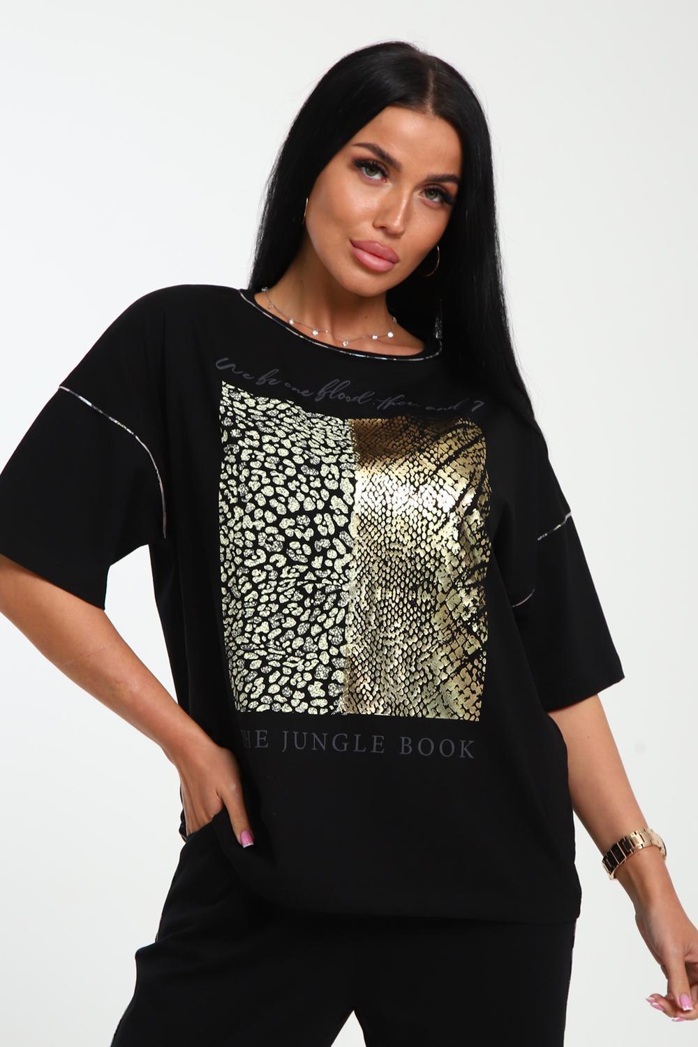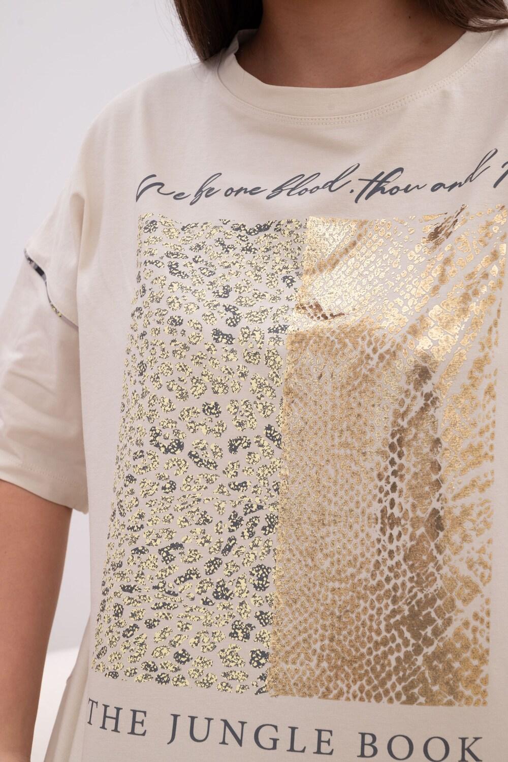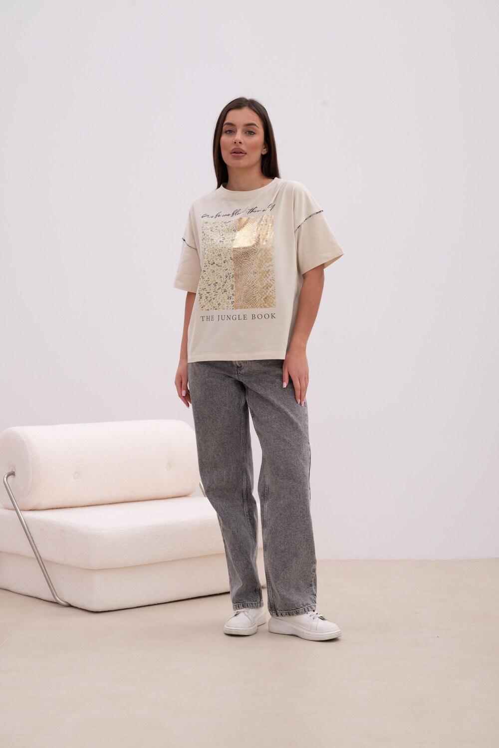 Трикотажная футболка премиум качества с модным принтом от NINEL. Модель выполнена из высококачественного кулирного волокна с лайкрой.