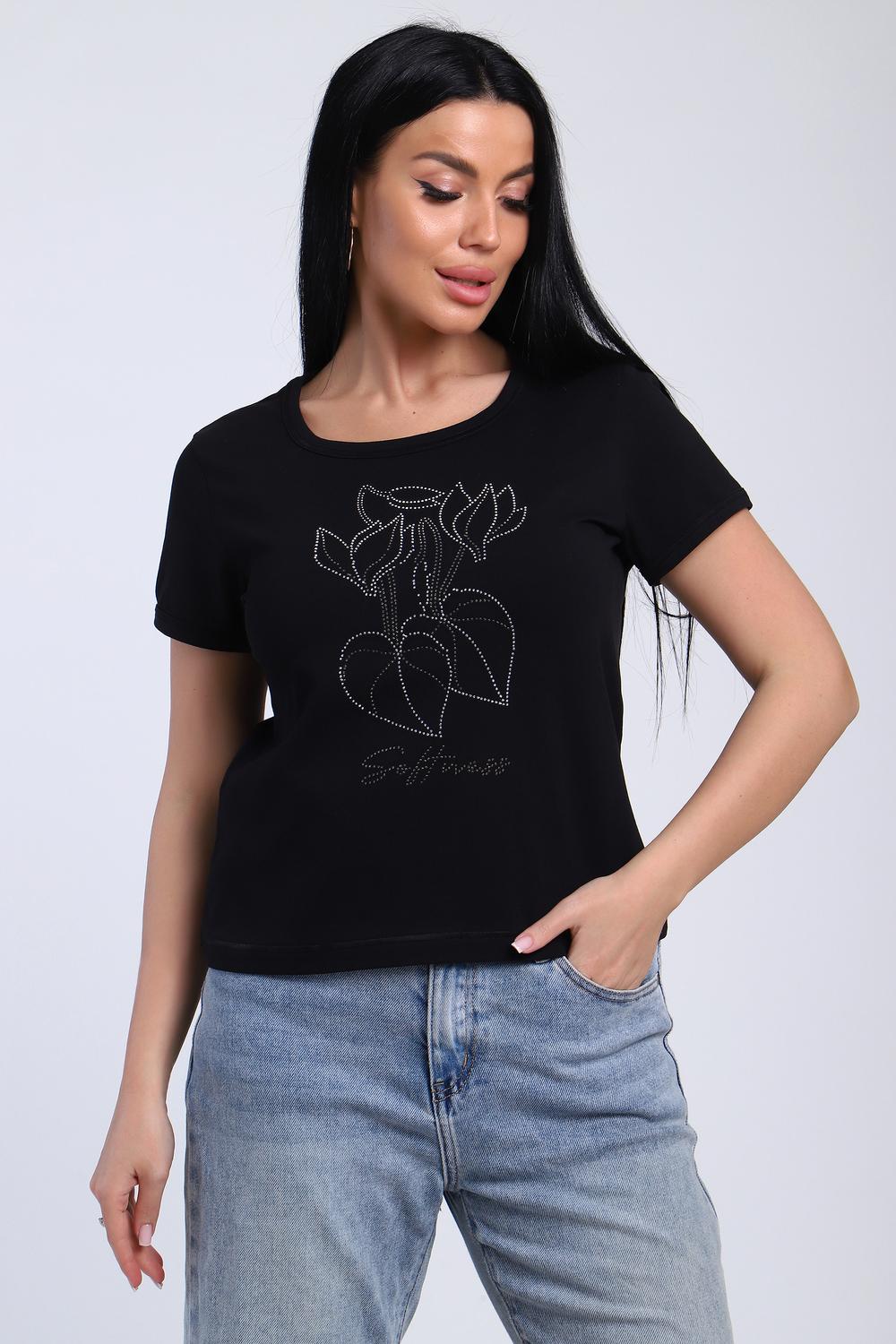 Футболка женская со стразами, ткань мягкая и приятная к телу. Базовая футболка это отличный вариант для вашего гардероба, ее можно сочетать с любыми вещами.