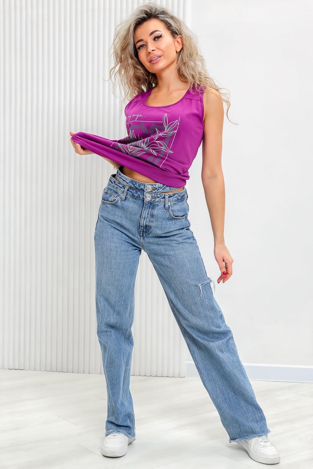 Майка прилегающего силуэта, с округлой горловиной. Полочка с кокетками. Горловина, проймы обработаны бейкой из основного полотна.