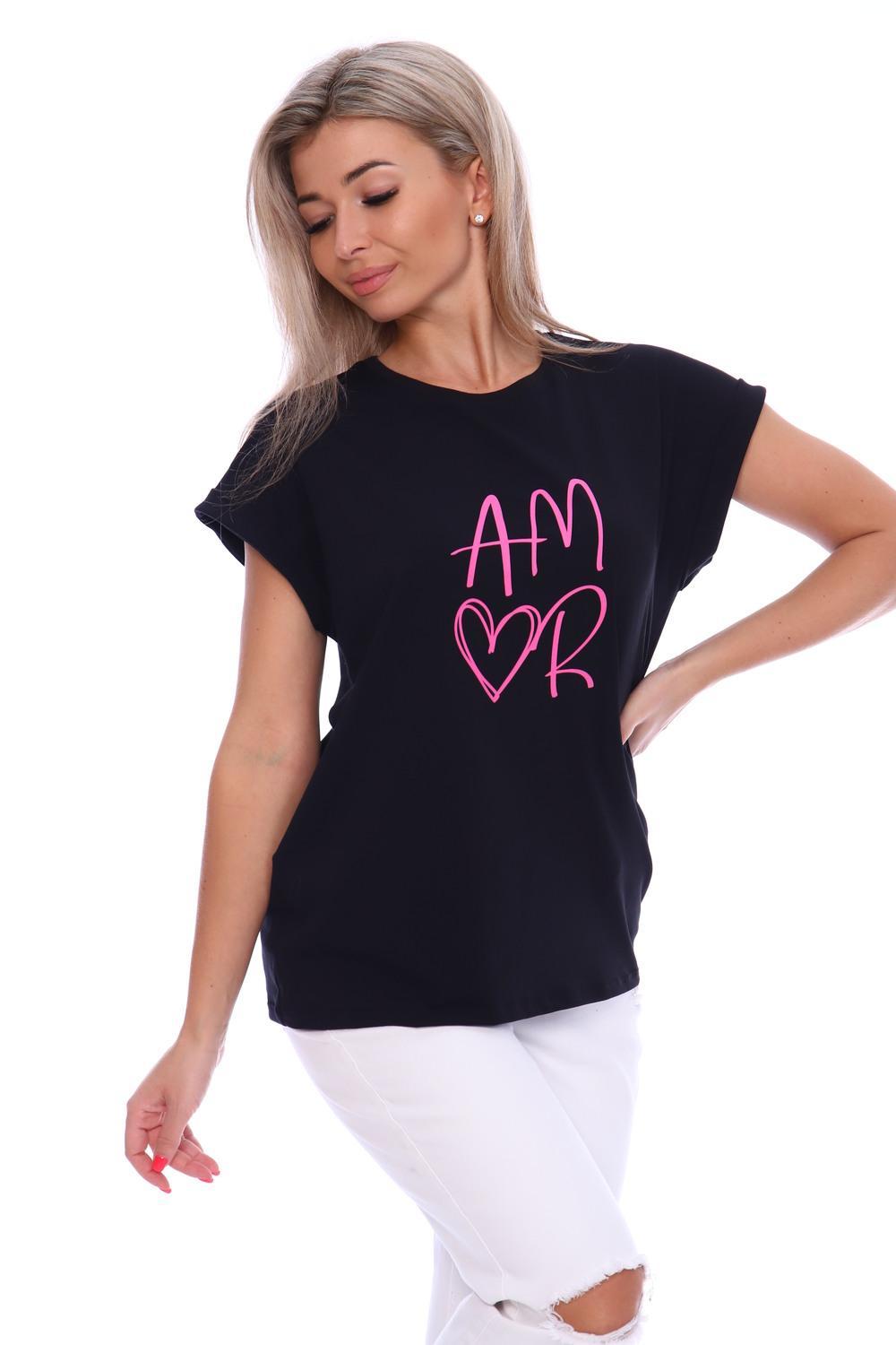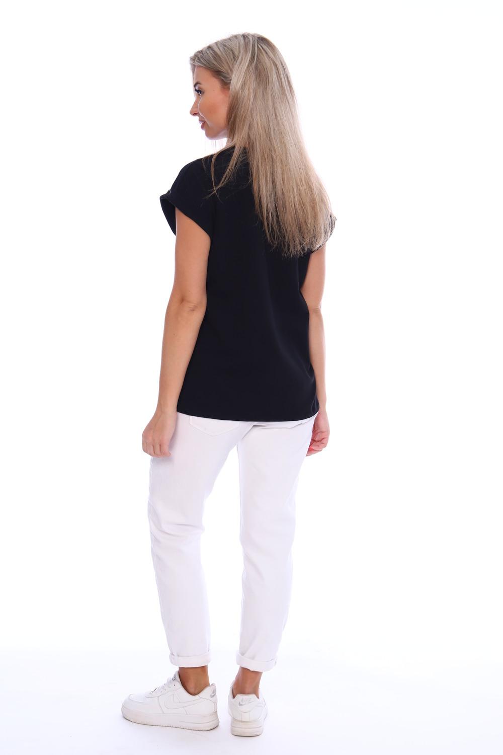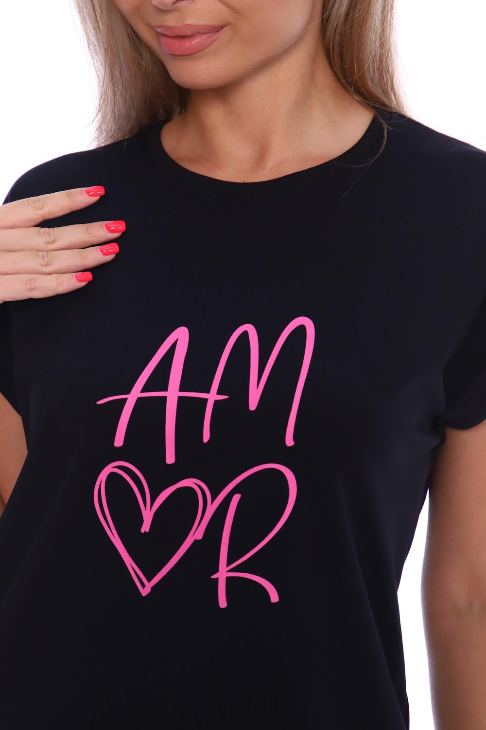 Футболка женская с оригинальным принтом, из хлопковой ткани с лайкрой. Ткань держит форму, не вытягивается, приятная на ощупь. Стильная футболка классического фасона со спущенным рукавом. Посадка свободная. Такая модель подойдет абсолютно всем и станет необходимой вещью в вашем гардеробе.