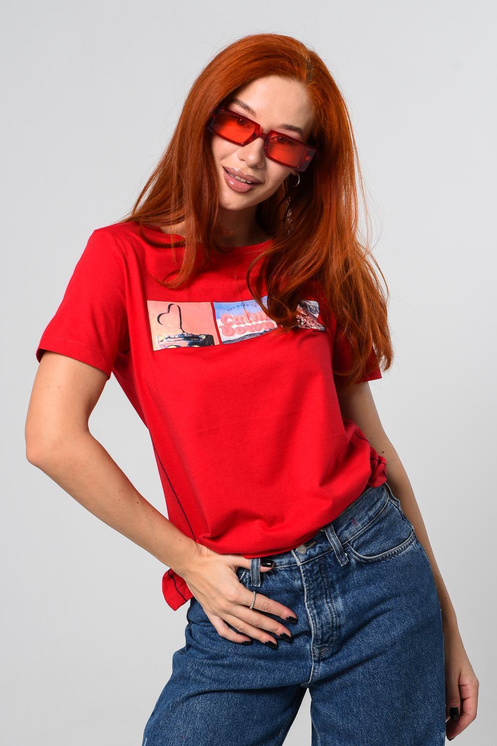Футболка женская красная. Подойдет на повседневный образ, модель свободного кроя, не сковывает движения. Красивый принт придает изюминку футболке. Приятный и дышащий материал. Состав: хлопок 100%