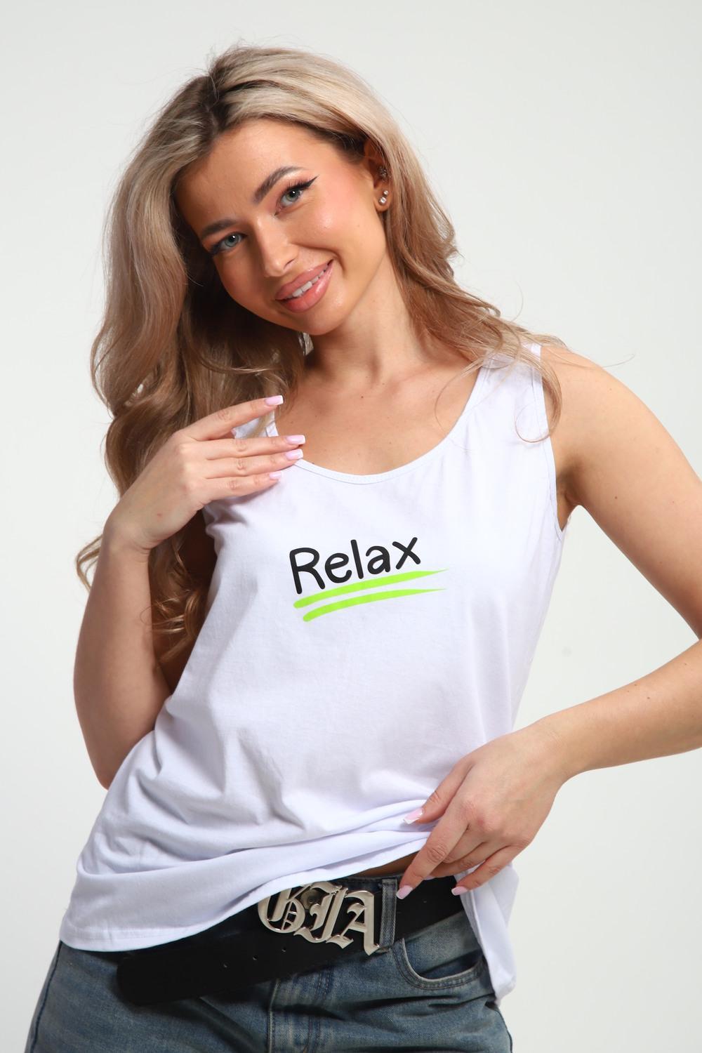 Майка женская с принтом. Данная модель выполнена из трикотажного полотна кулирка.