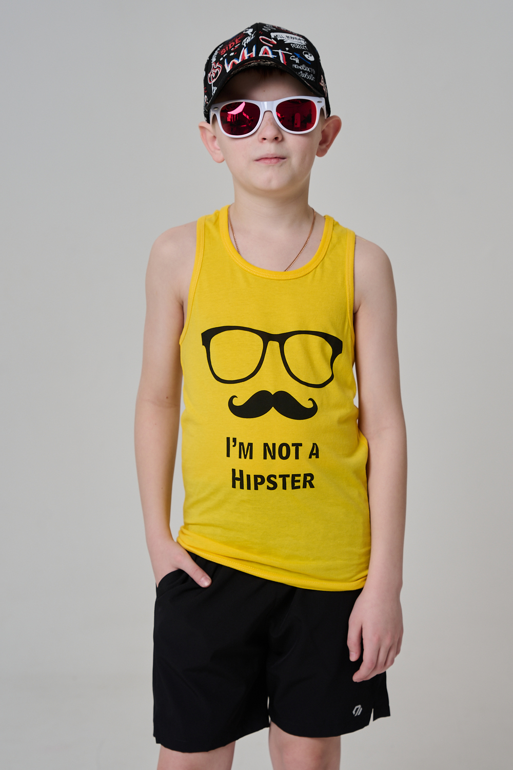 Прямая майка свободного кроя из натурального хлопка. Принт графичный, без дополнительных элементов и изображений. Модель подходит для повседневной носки.