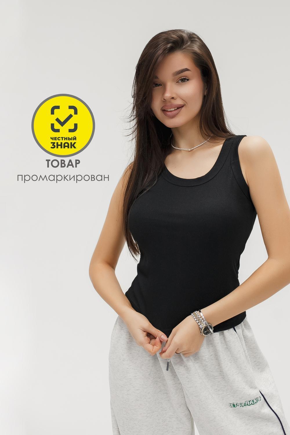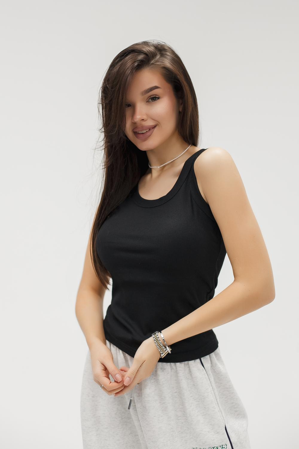 Уход за майкой простой: бережная стирка при низкой температуре, без отбеливателей, сушка в тени и осторожное гладление при средней температуре продлят срок службы изделия и сохранят насыщенный чёрный цвет. Закажите сейчас — универсальный и практичный топ, который станет базой в вашем гардеробе.