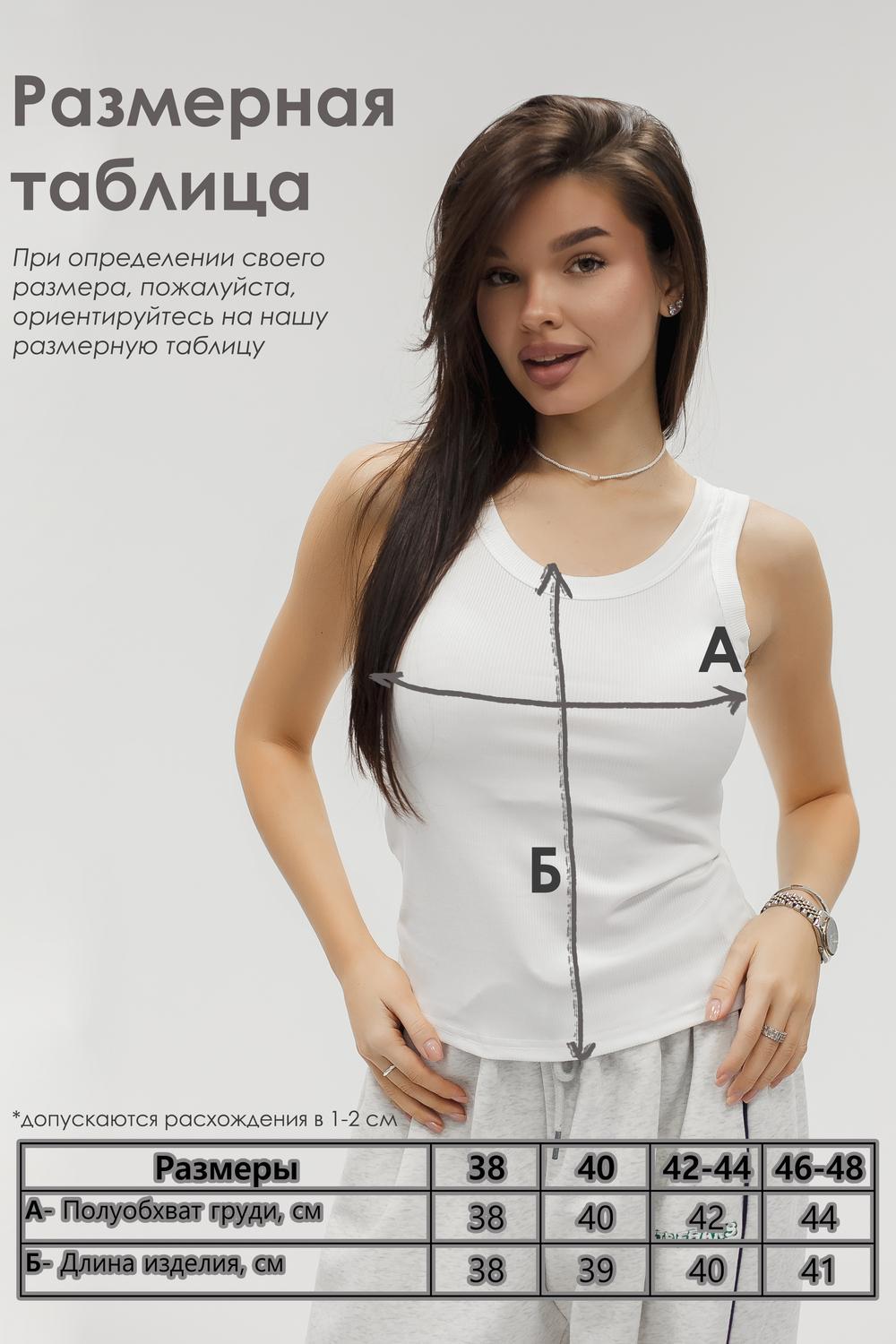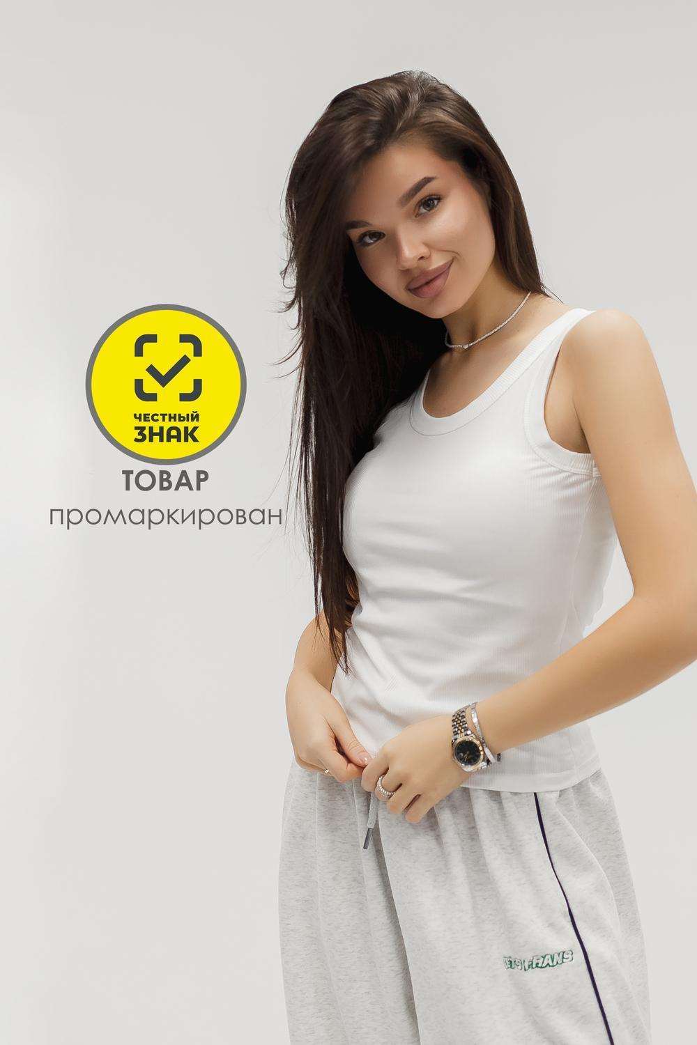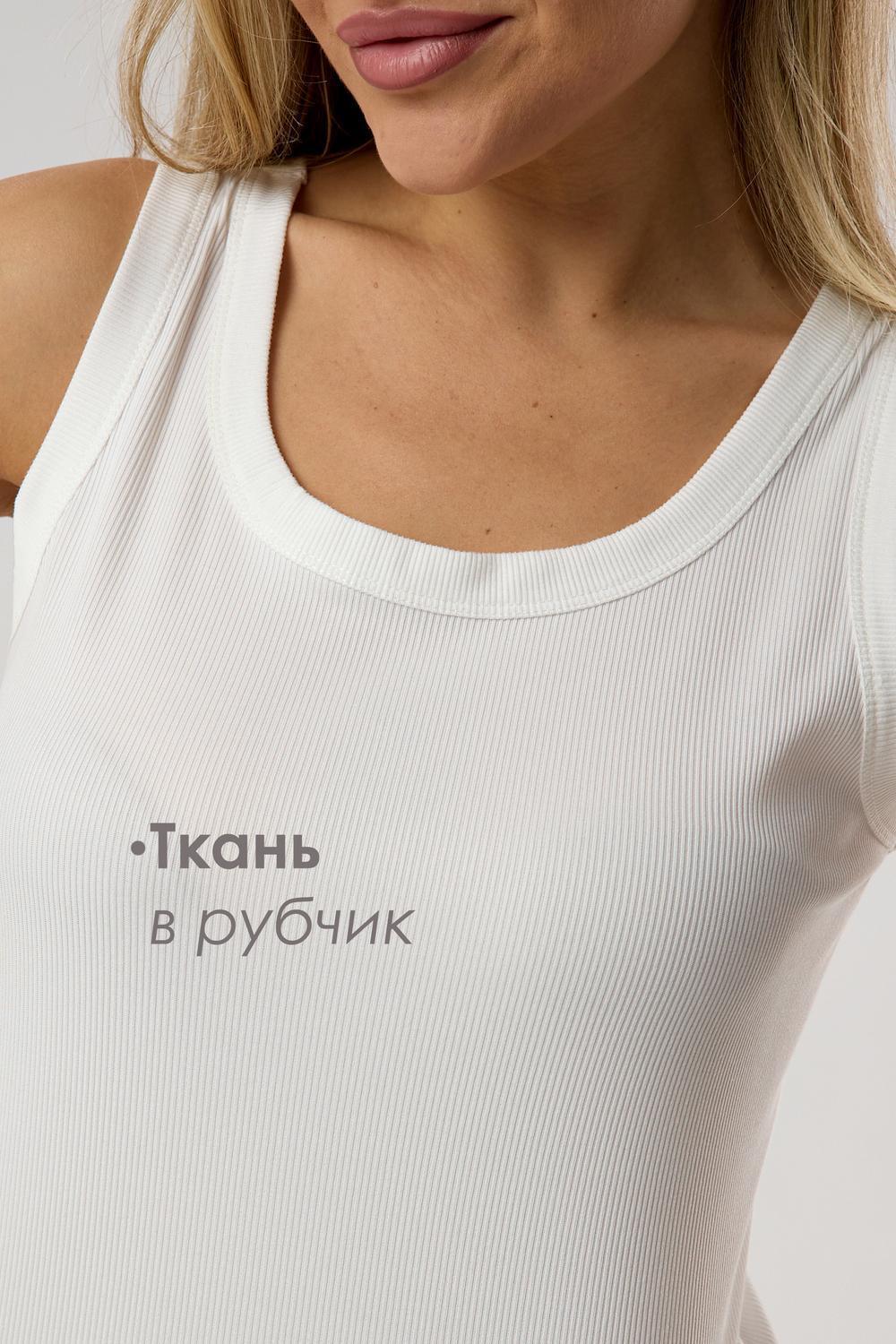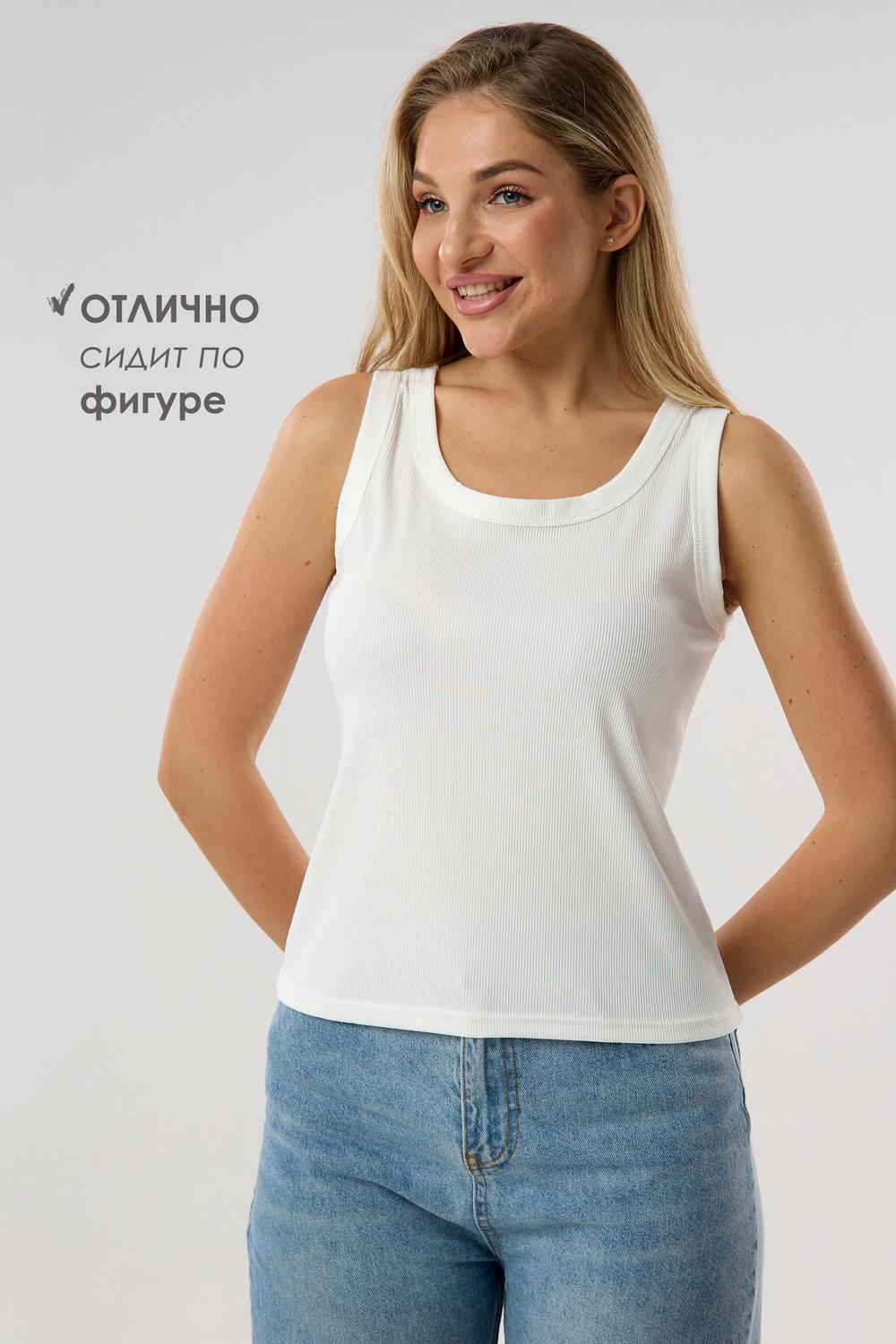 Женская майка в рубчик — белый облегающий топ, составом 95% полиэстер и 5% спандекс для идеальной посадки. Ткань приятна к телу, не вызывает раздражения и сохраняет форму даже после частых стирок, а фактура в рубчик придаёт изделию аккуратный, стильный вид.