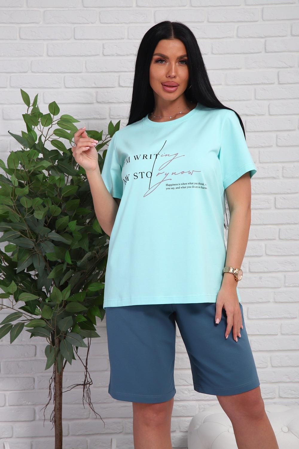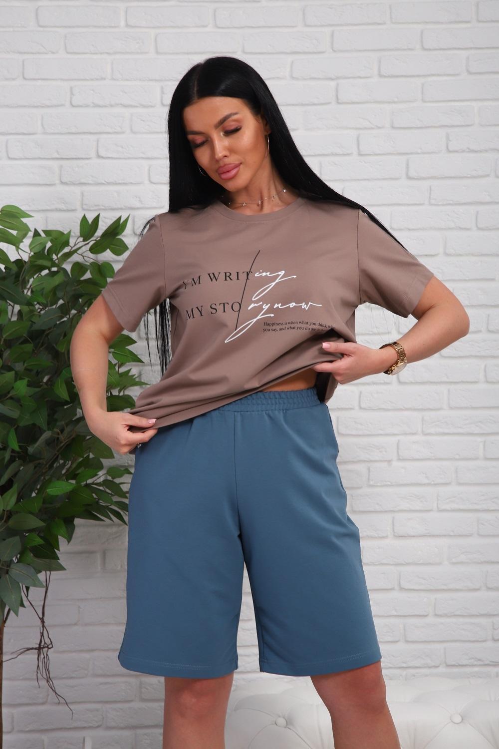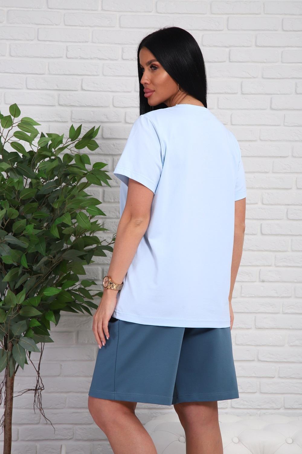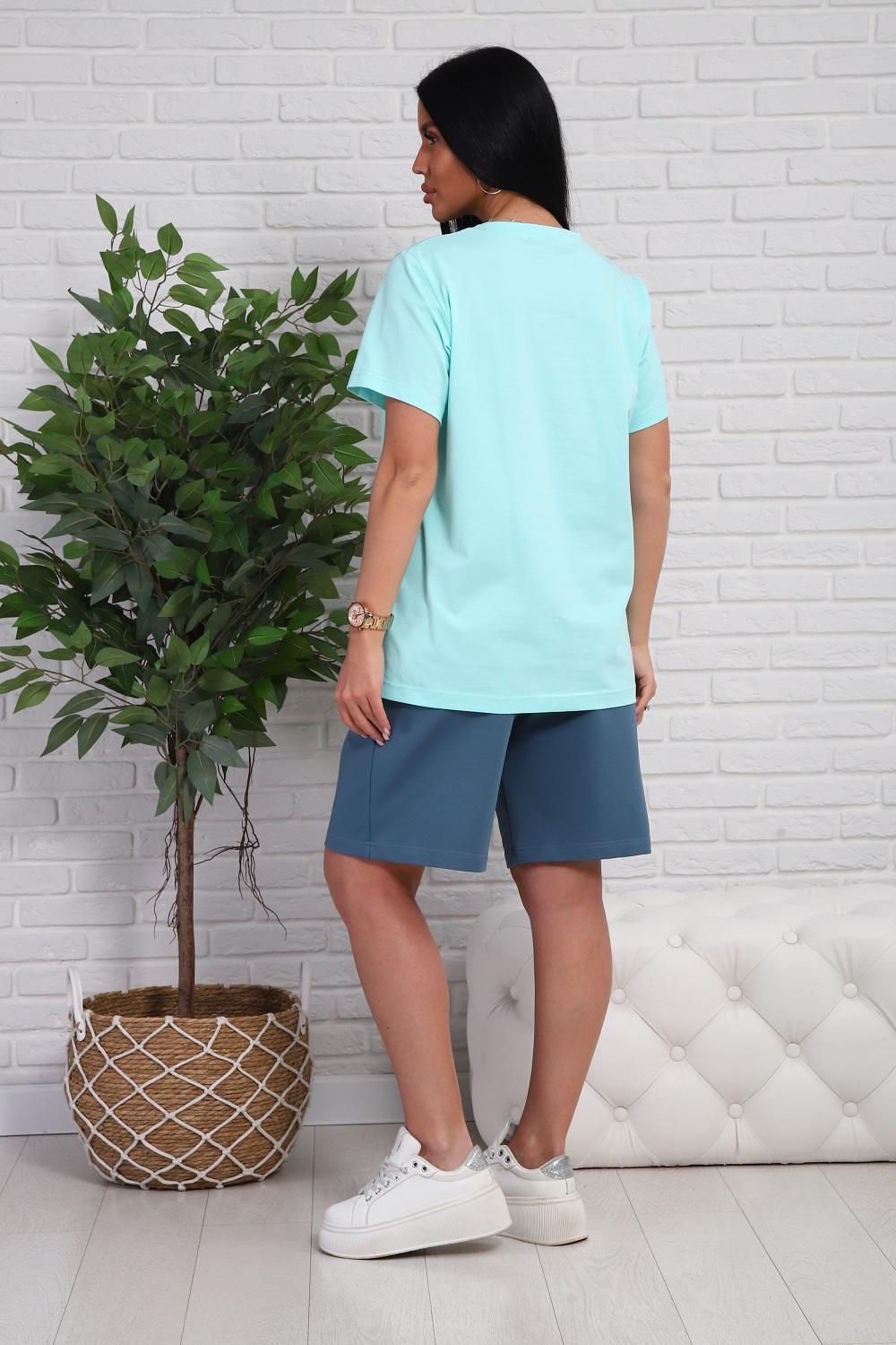 Костюм женский - футболка с короткими рукавами и шорты с боковыми карманами.