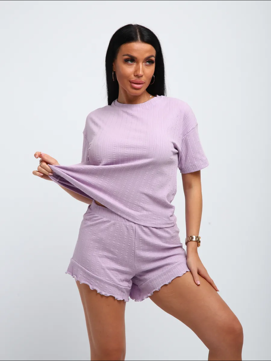 Летний костюм женский с шортами домашний - хит этого сезона. Костюм домашний женский летний выполнен из легкого, тонкого, но прочного трикотажного полотна, в составе которого 95% хлопок. Повседневное изделие включает в себя шорты и футболку. Мягкая хлопковая ткань костюма приятна к телу, позволяет коже дышать, не деформируется и не сковывает движения. Шорты свободные без карманов имеют, широкую резинку, которая не давит на живот, что позволяет чувствовать себя комфортно. Базовая футболочка свободного кроя имеет среднюю длину и короткий рукав. Пижама женская с шортами прямого кроя настолько универсальная, что можно использовать как в качестве домашней одежды, так и для активного отдыха. Благодаря своему фасону костюм подходит дамам всех возрастов. Широкая размерная сетка позволит подобрать модный образ для женщин больших размеров, полных, высоких и невысоких, среднего роста. Порадуй себя, подруг и любимую хорошим подарком на 8 марта! Порадуй себя, бабушку и маму подарком.