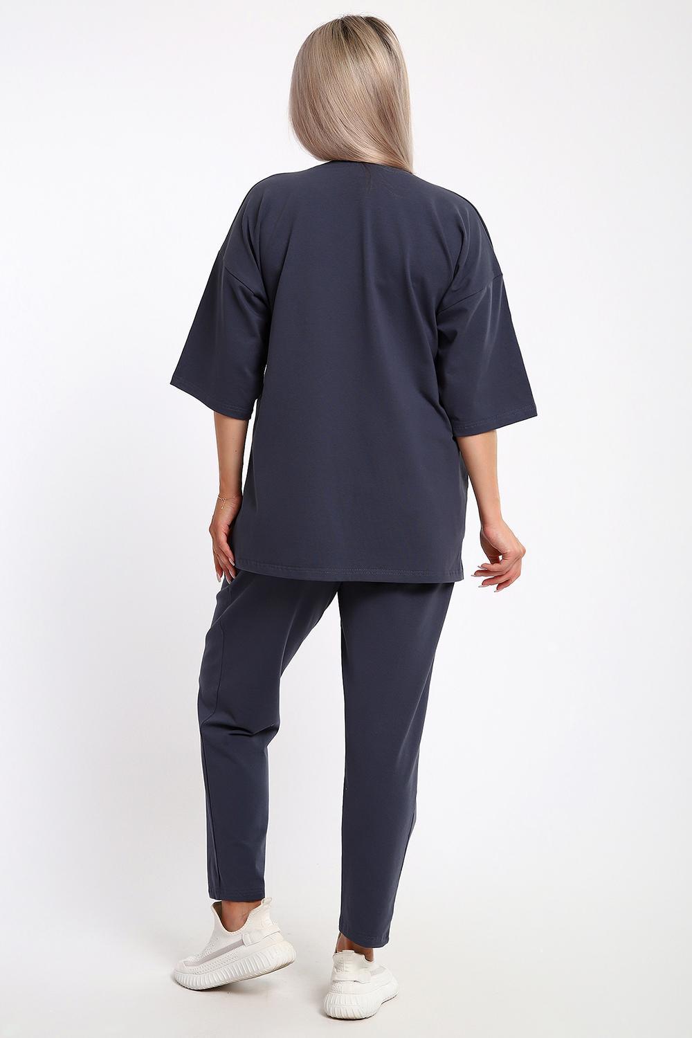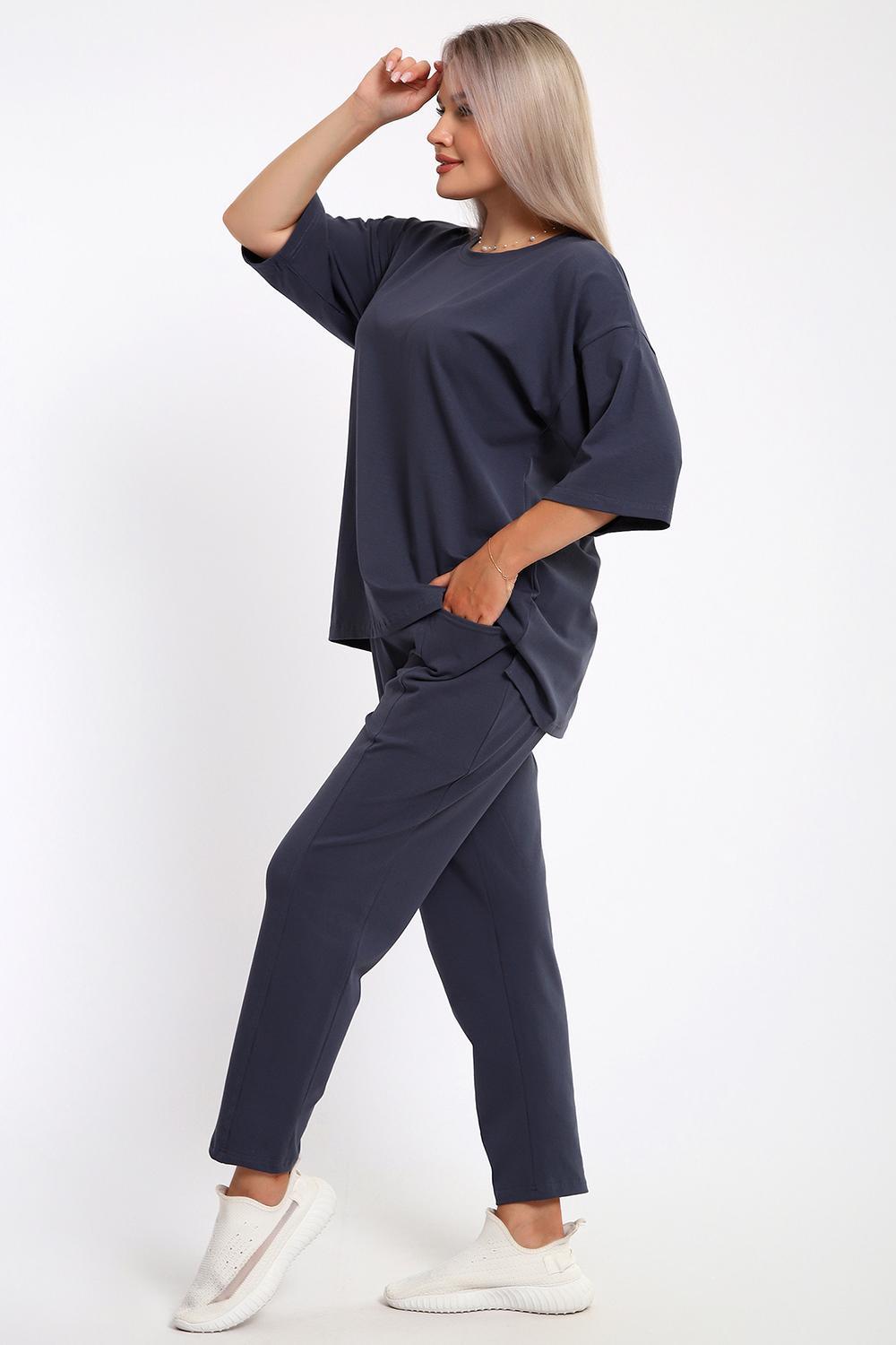 Этот женский костюм из легкого но плотного трикотажа — идеальный выбор для тех, кто ценит сочетание практичности и современного стиля. Модель выполнена из кулирки с лайкрой, что делает ее незаменимой для летних прогулок, отдыха или в качестве стильной домашней одежды.