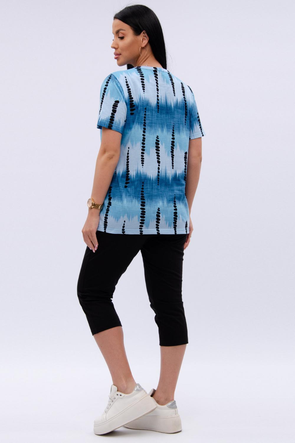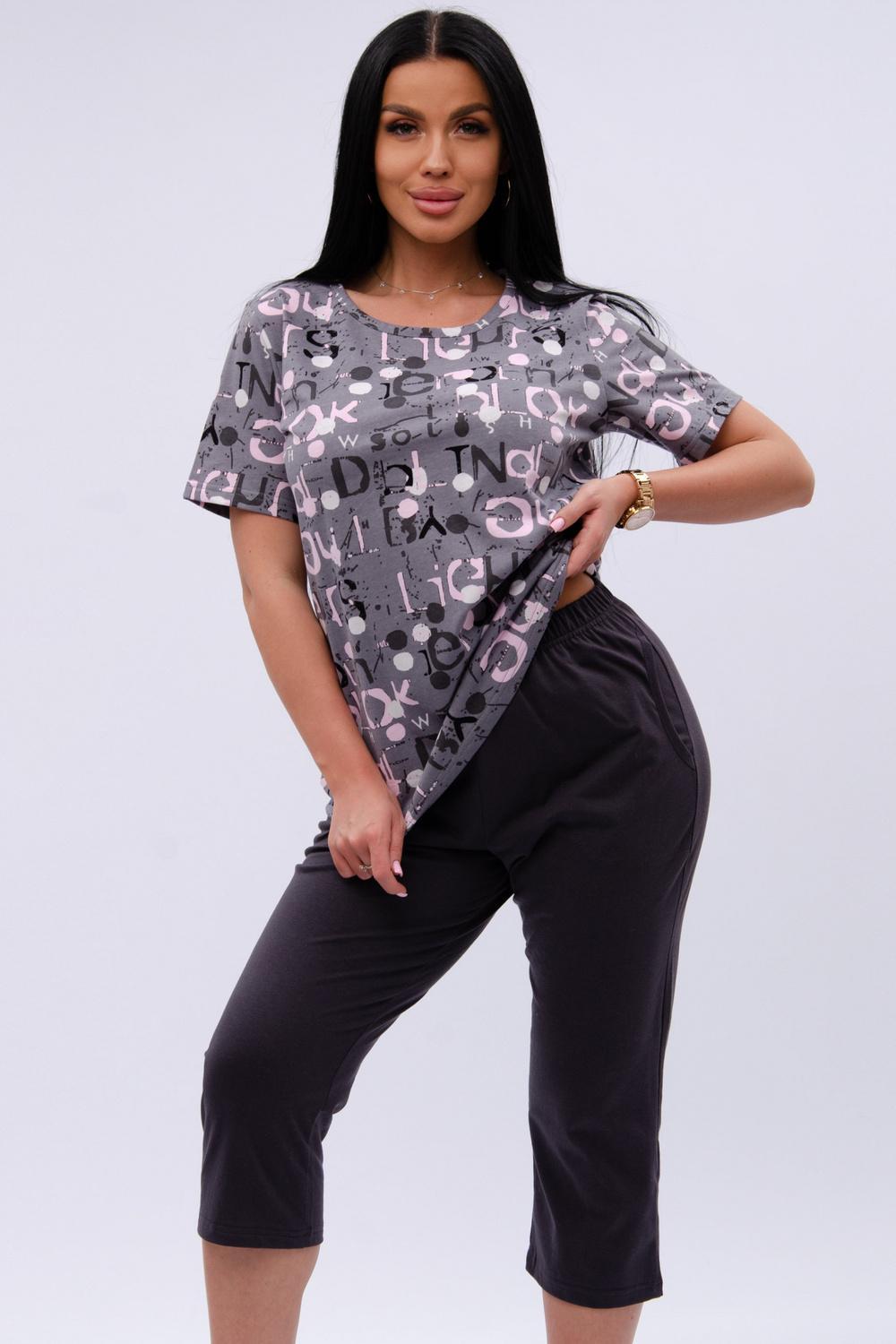 Женский костюм из футболки и бриджей — отличный выбор для дачного сезона и прогулок. Бриджи черного цвета из 100% хлопка обеспечивают комфорт и свободу движения, что особенно важно для активного отдыха на свежем воздухе или дома.