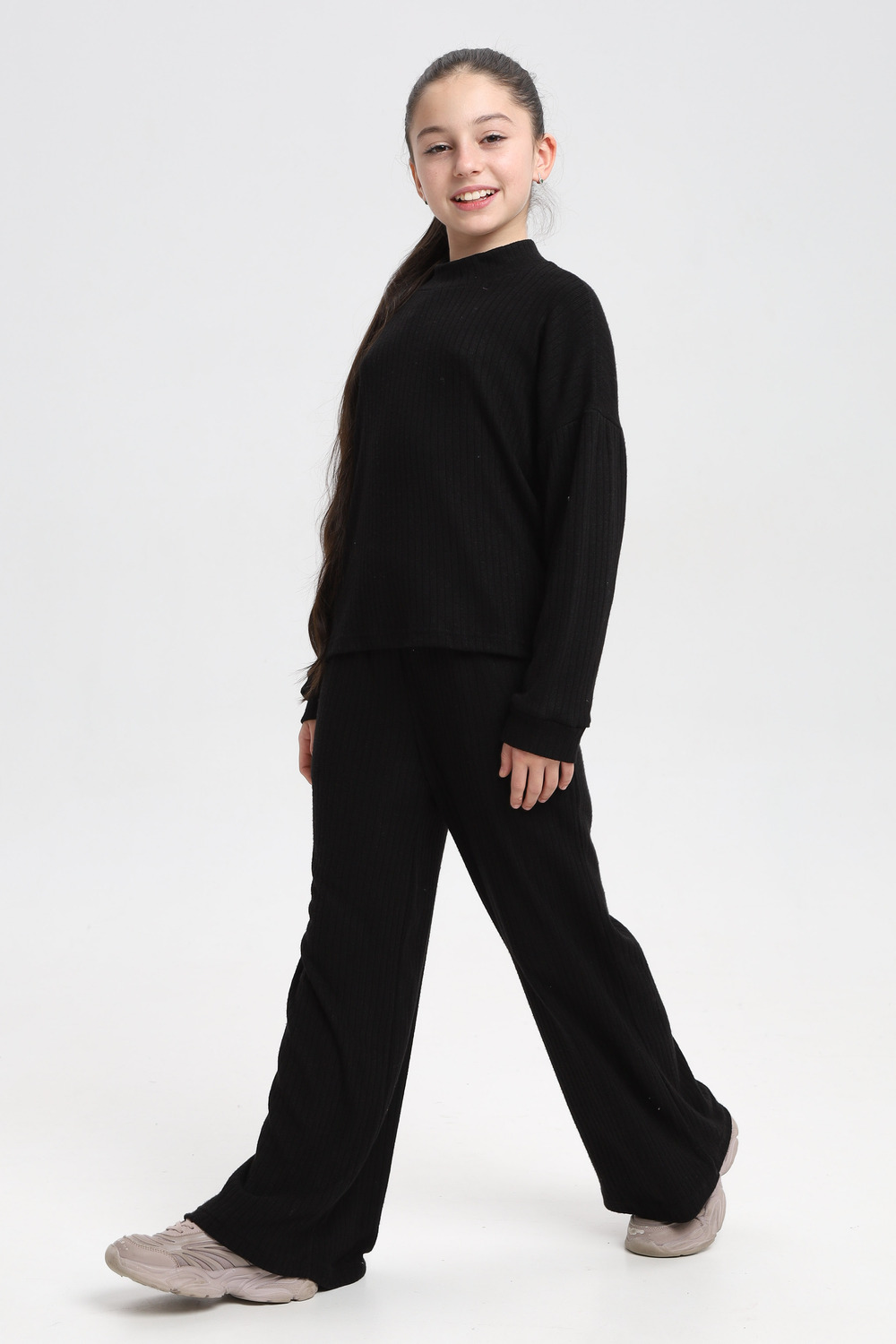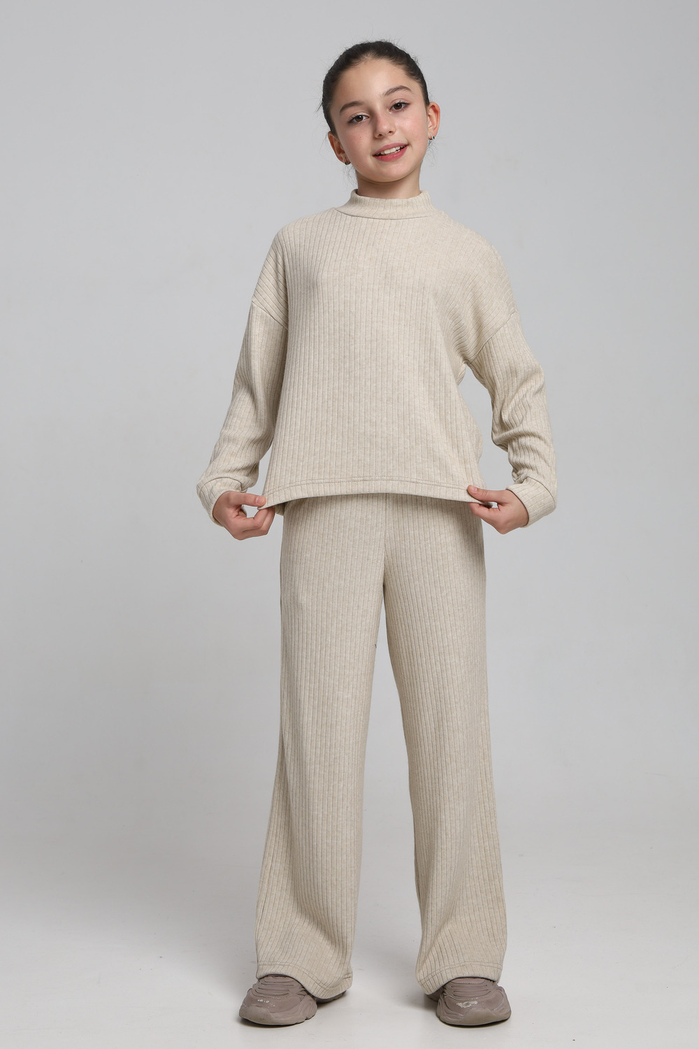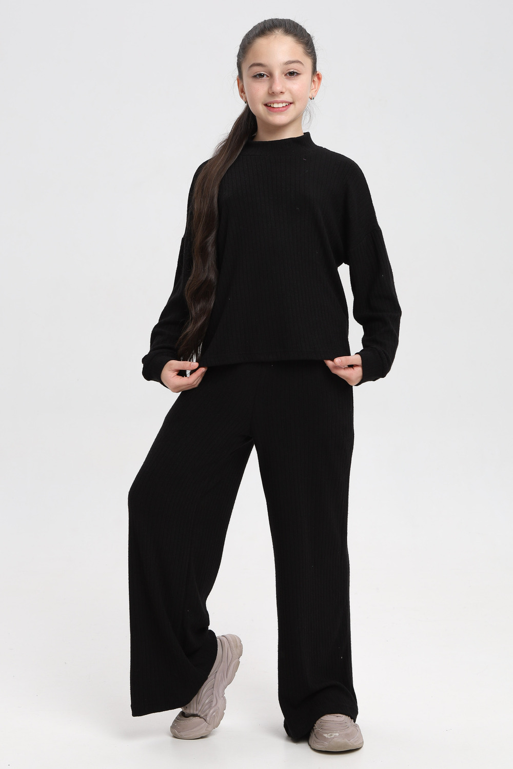 Классный детский костюм из нежной , плотной, теплой лапши ангоры. Водолазка джемпер с длинным рукавом ,брюки палаццо, с карманами.
