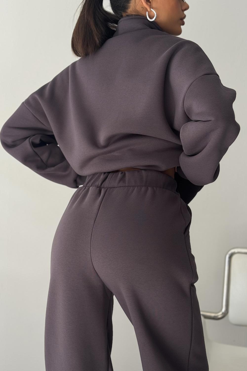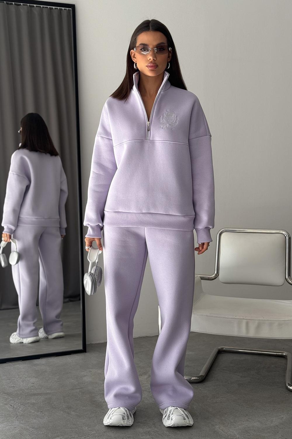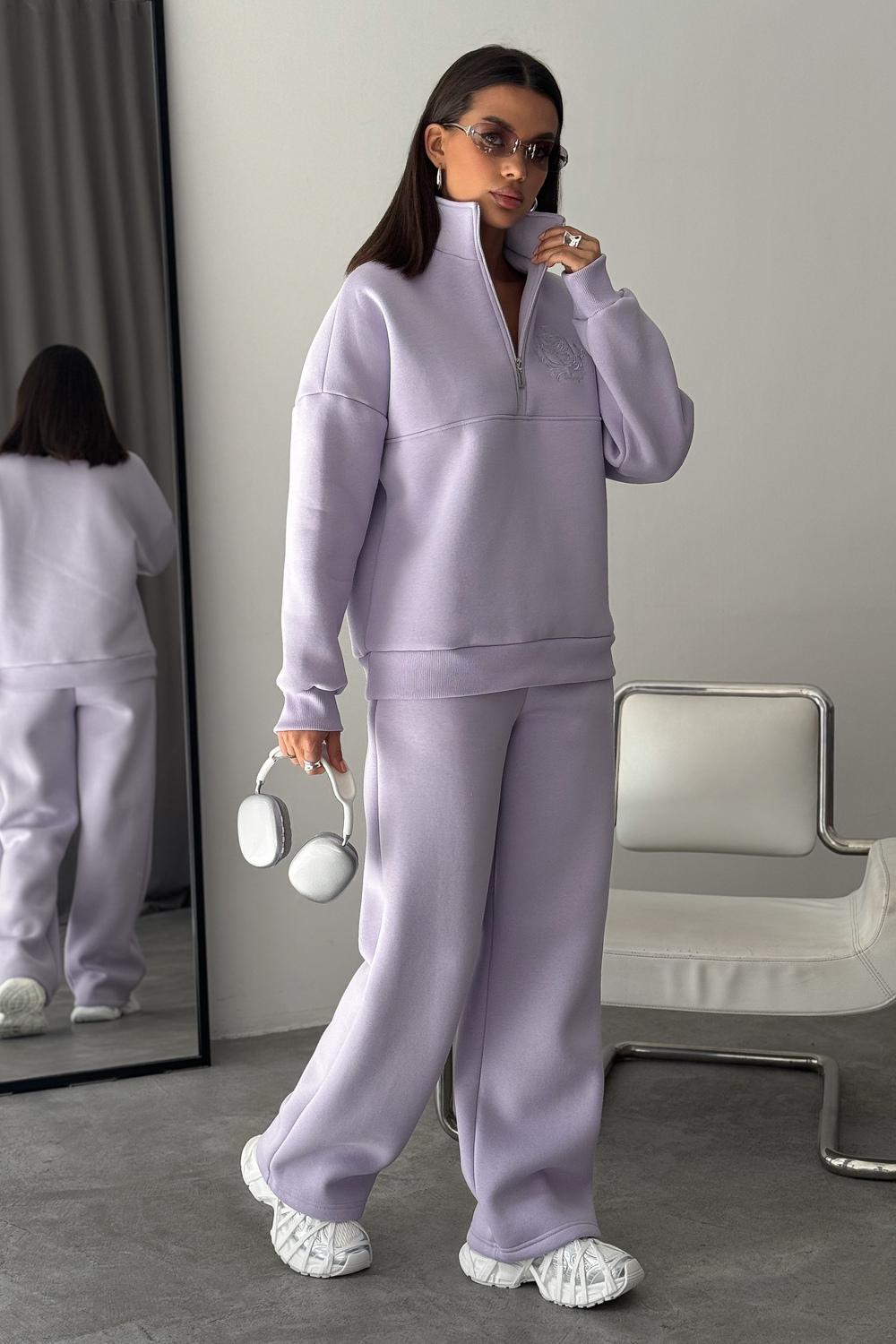 Теплый женский спортивный костюм — отличный выбор в качестве базовой одежды для зимы и холодного демисезонного периода! Комплект - двойка из коллекции включает свитшот с длинными рукавами и брюки с высокой посадкой. Модели сшиты из мягкого и приятного к телу футера. Это плотный материал, который приятно согревает и отлично дышит. В составе ткани хлопок и полиэстер. Вещи имеют прямой крой и свободно сидят по фигуре.