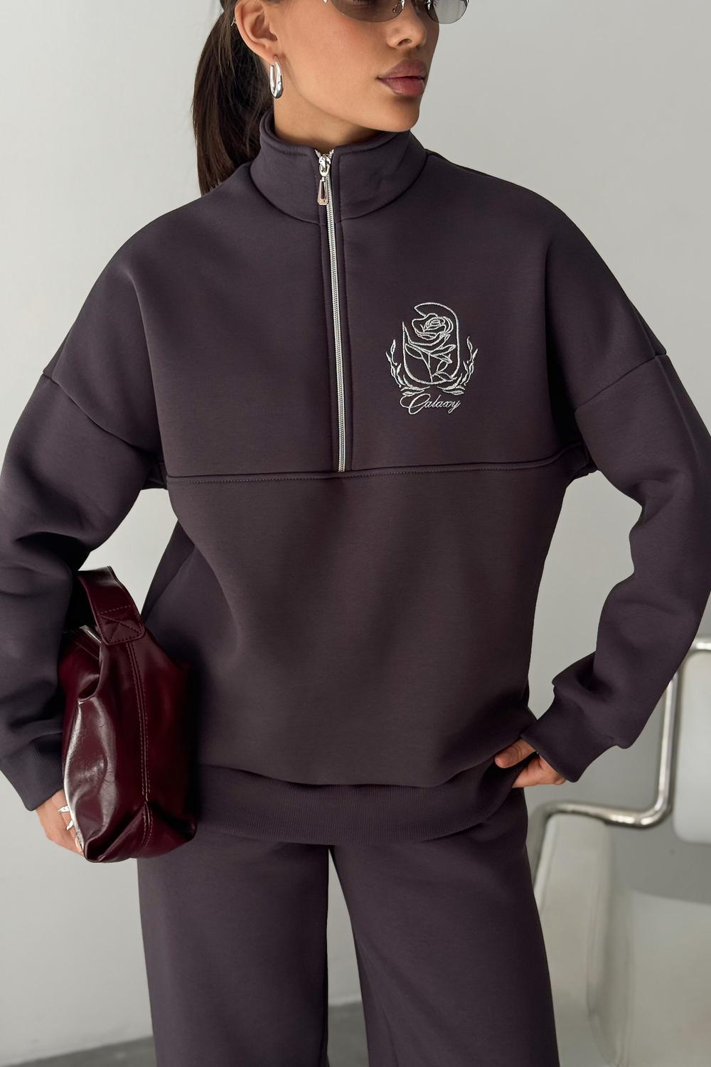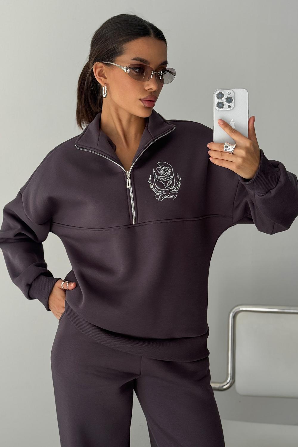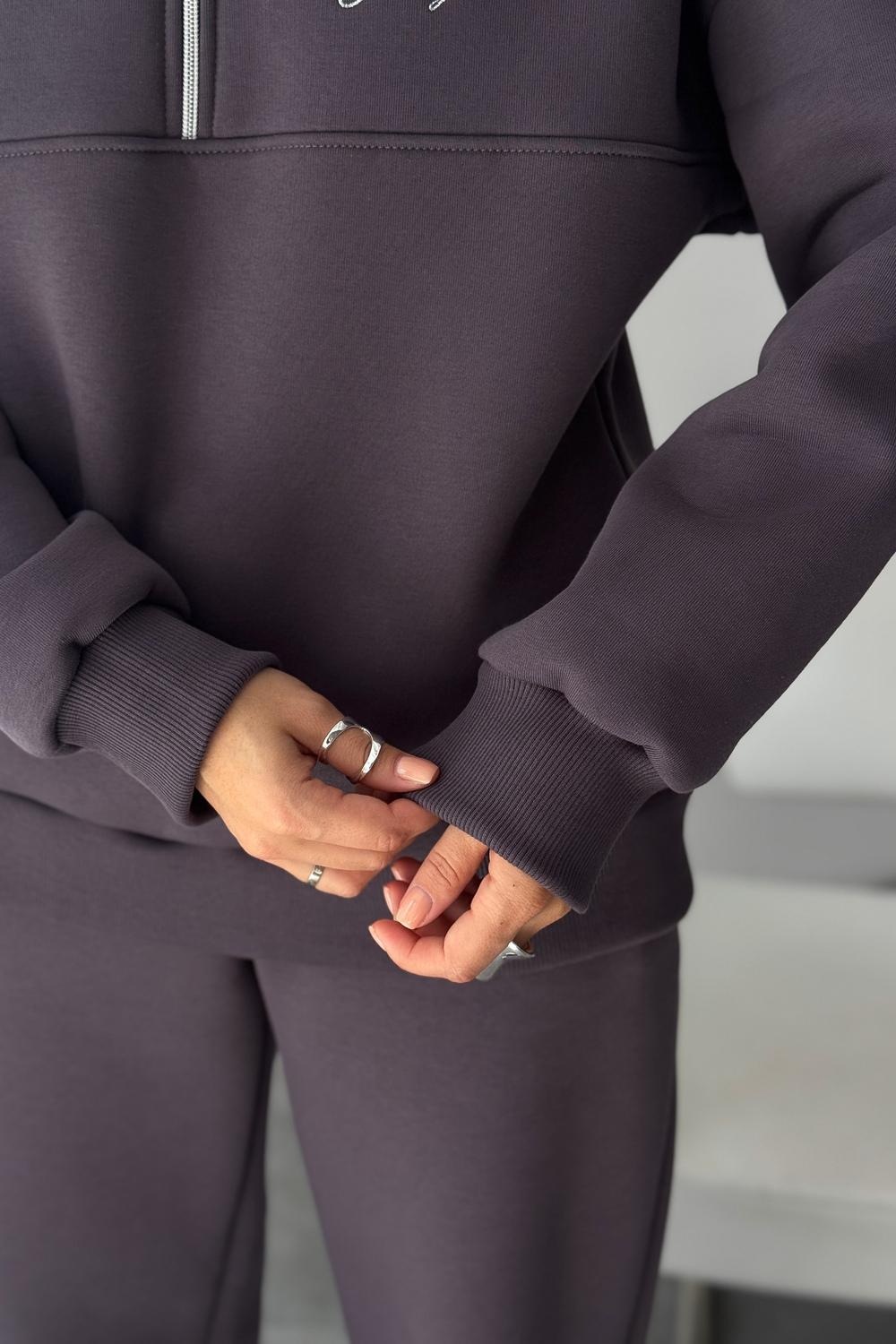 Теплый женский спортивный костюм — отличный выбор в качестве базовой одежды для зимы и холодного демисезонного периода! Комплект - двойка из коллекции включает свитшот с длинными рукавами и брюки с высокой посадкой. Модели сшиты из мягкого и приятного к телу футера. Это плотный материал, который приятно согревает и отлично дышит. В составе ткани хлопок и полиэстер. Вещи имеют прямой крой и свободно сидят по фигуре.