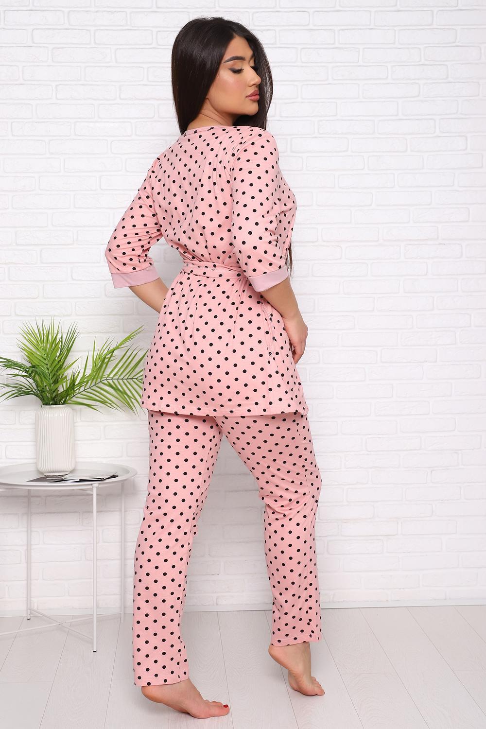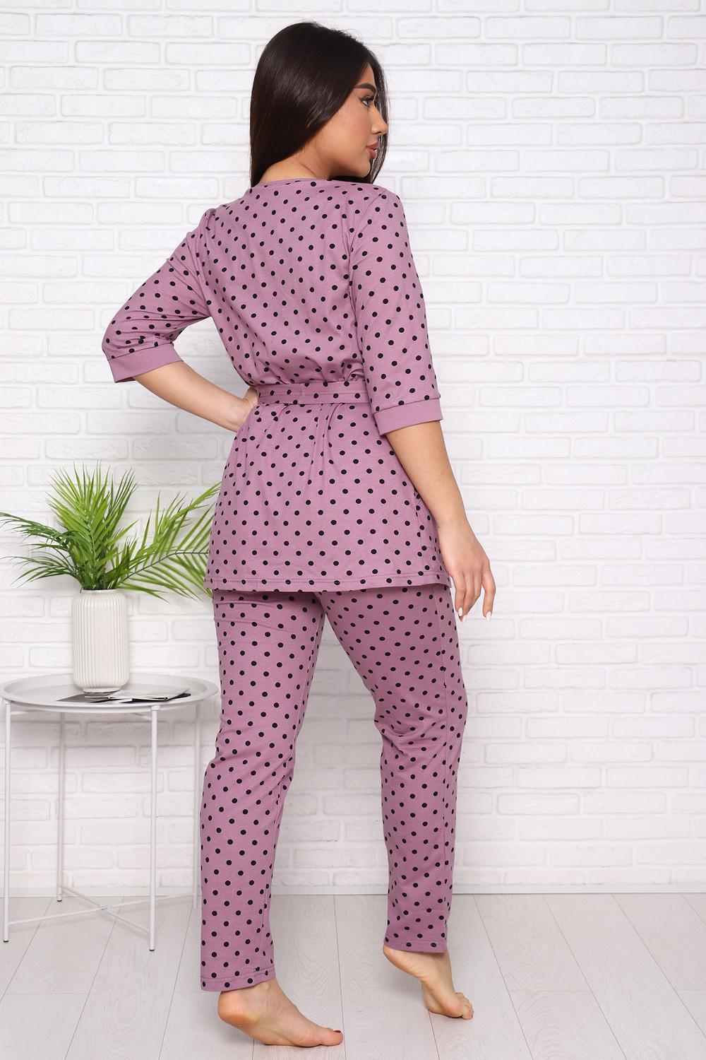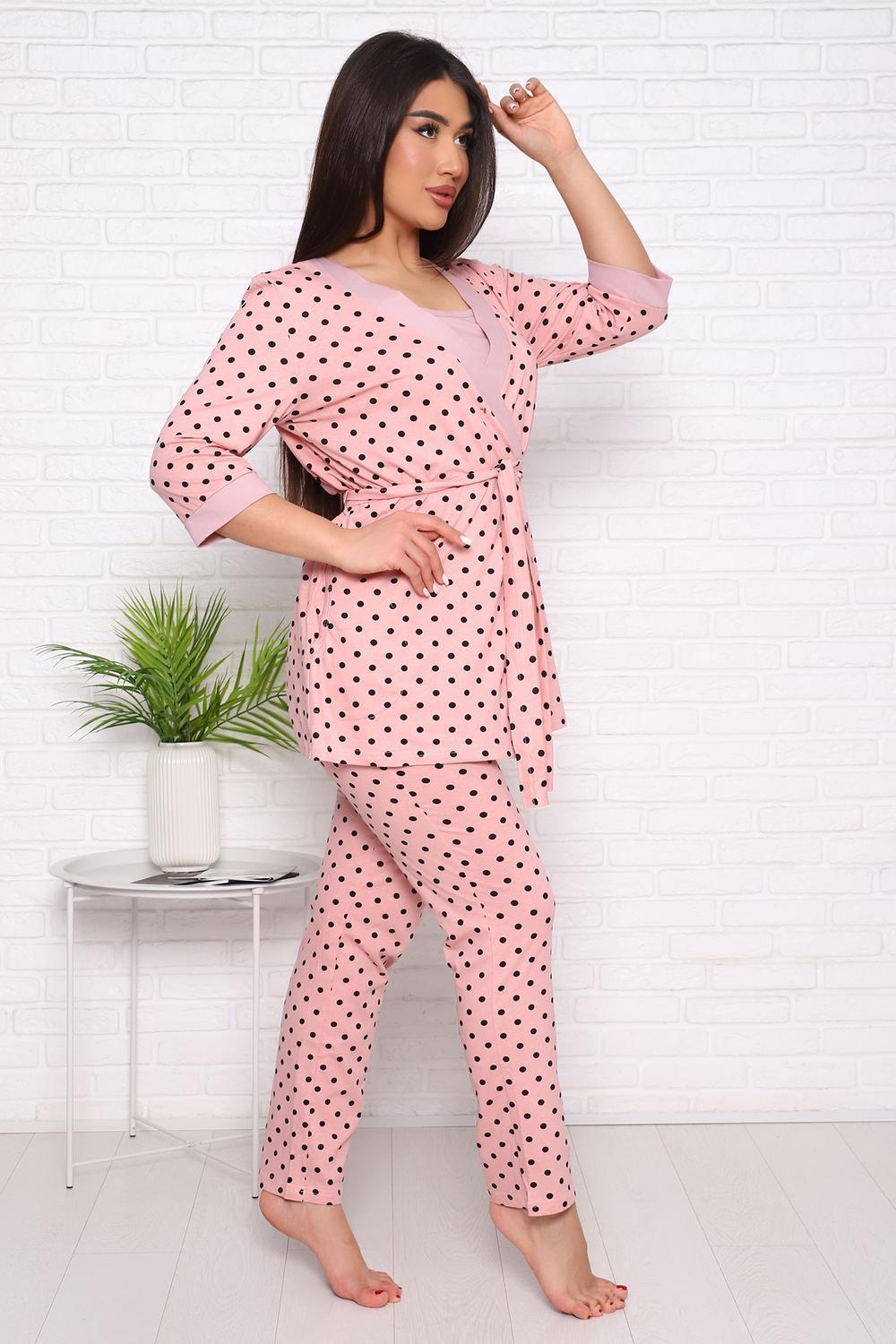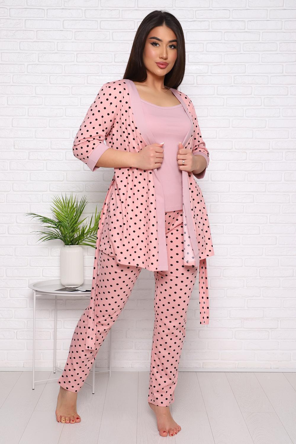 Комплект женский для сна и отдыха, состоящий из жакета, топа и брюк. Жакет с карманами, длиной до середины бедра. Топ на тонких бретелях. Брюки на резинке.