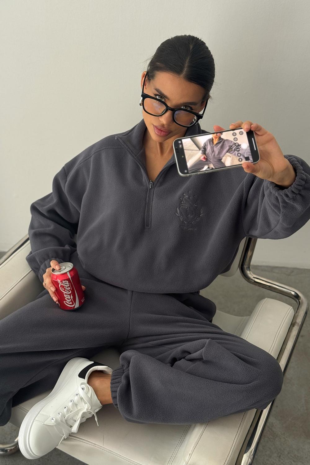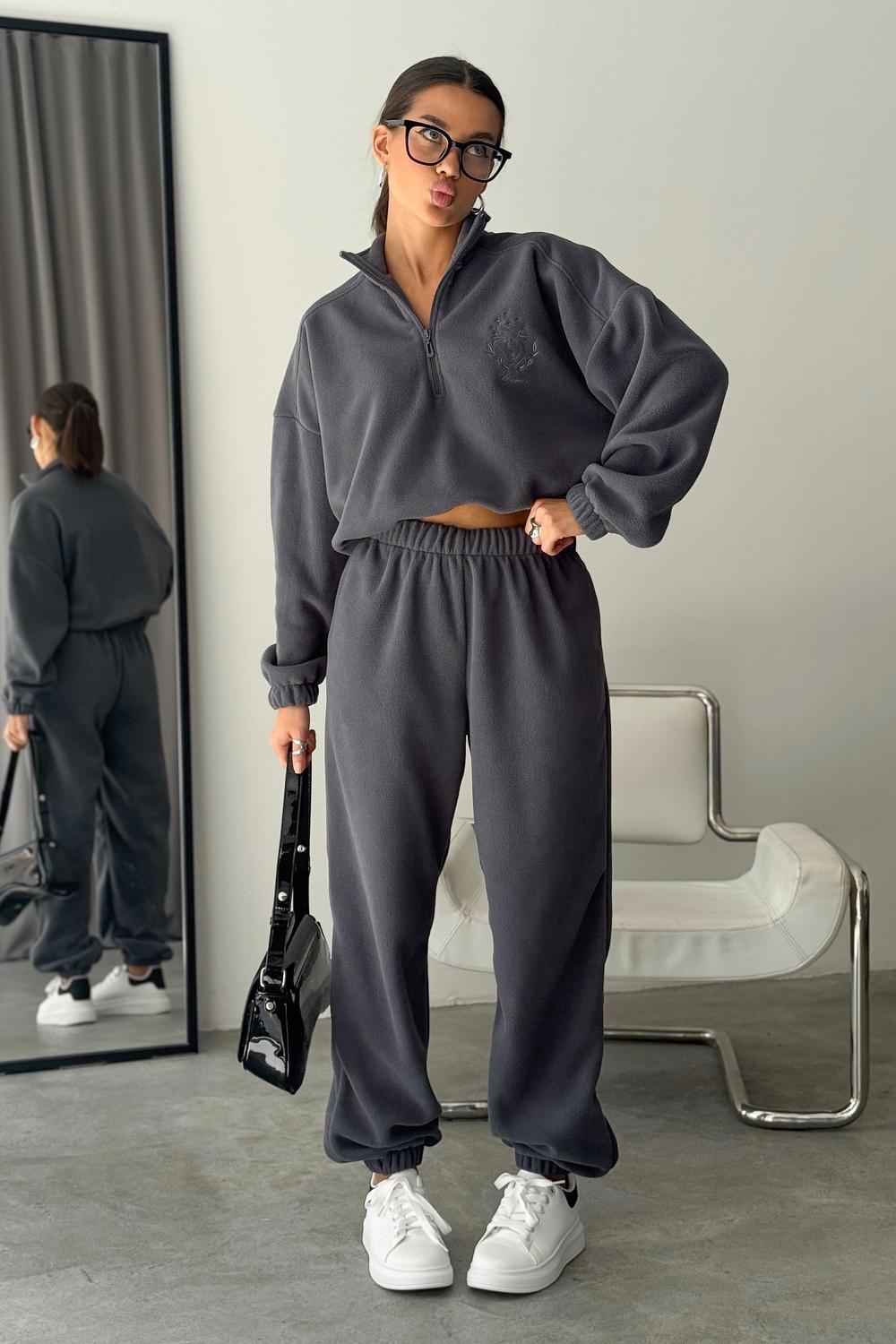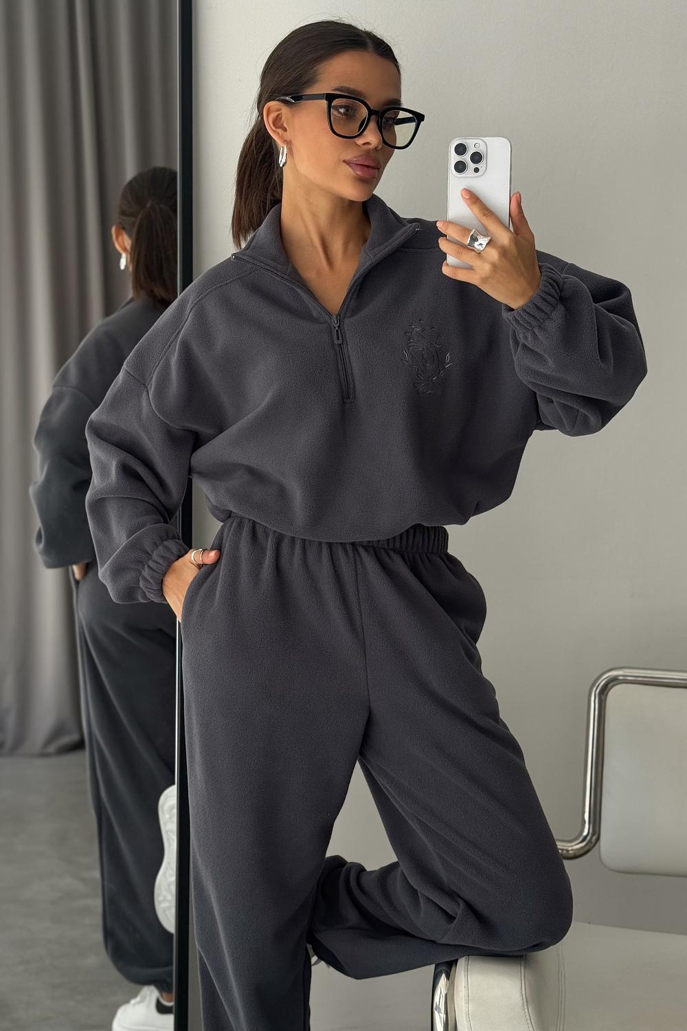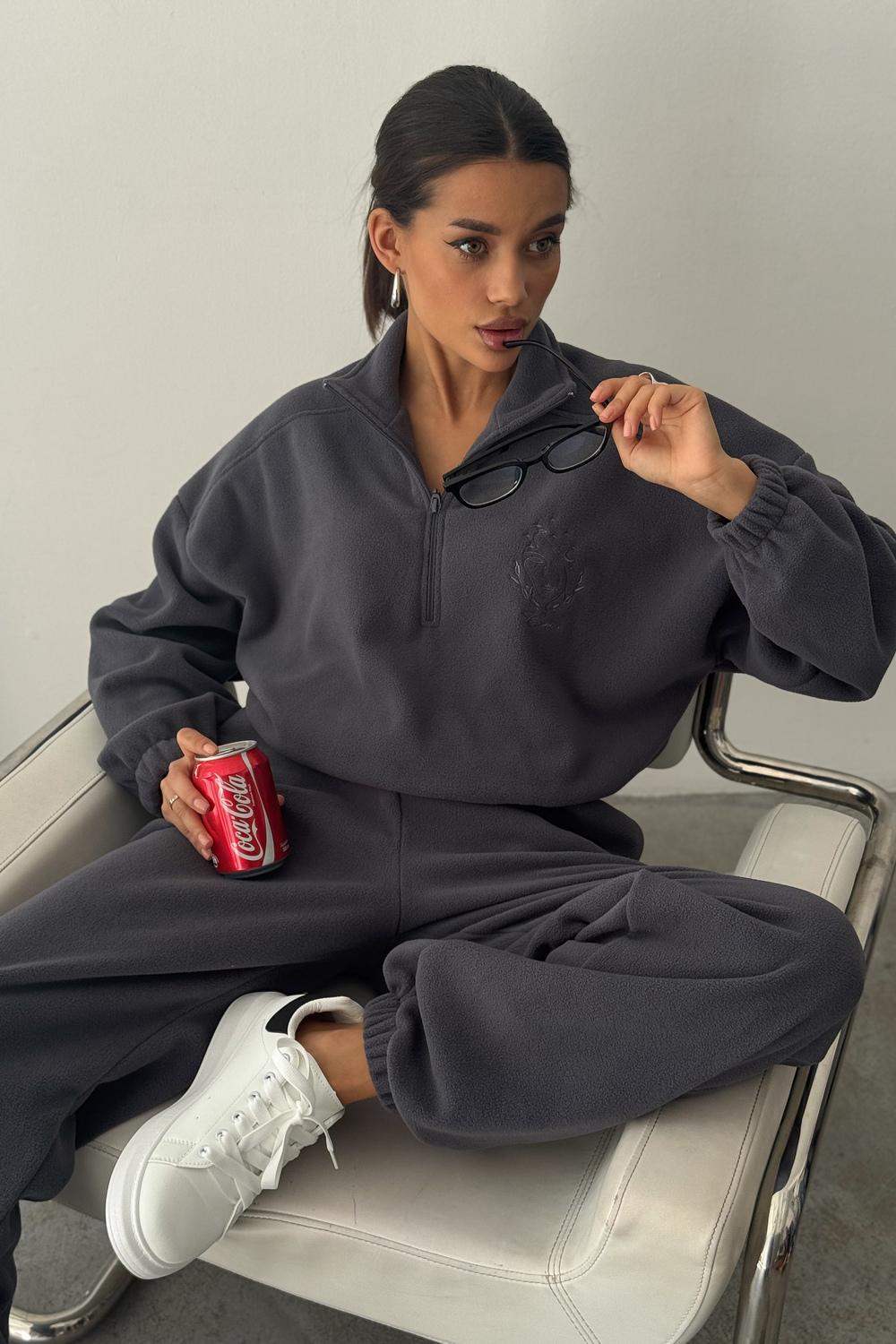 Модный женский спортивный флисовый костюм Cosmos, который станет незаменимым элементом вашего гардероба в осенне-зимний период. Костюм женский брючный флисовый теплый на молнии это именно то, что вы искали. Стильный и мягкий зип комплект включает в себя удобную халф зип толстовку с V- образным вырезом и широкие брюки, идеально подходящие как для активных прогулок, так и для расслабленного отдыха дома. Костюм на флисе изготовлен из качественного материала и достаточно утепленный. Материал мягкий и теплый, обеспечивает максимальный комфорт. Оверсайз покрой скрывает недостатки, делая силуэт стройным!