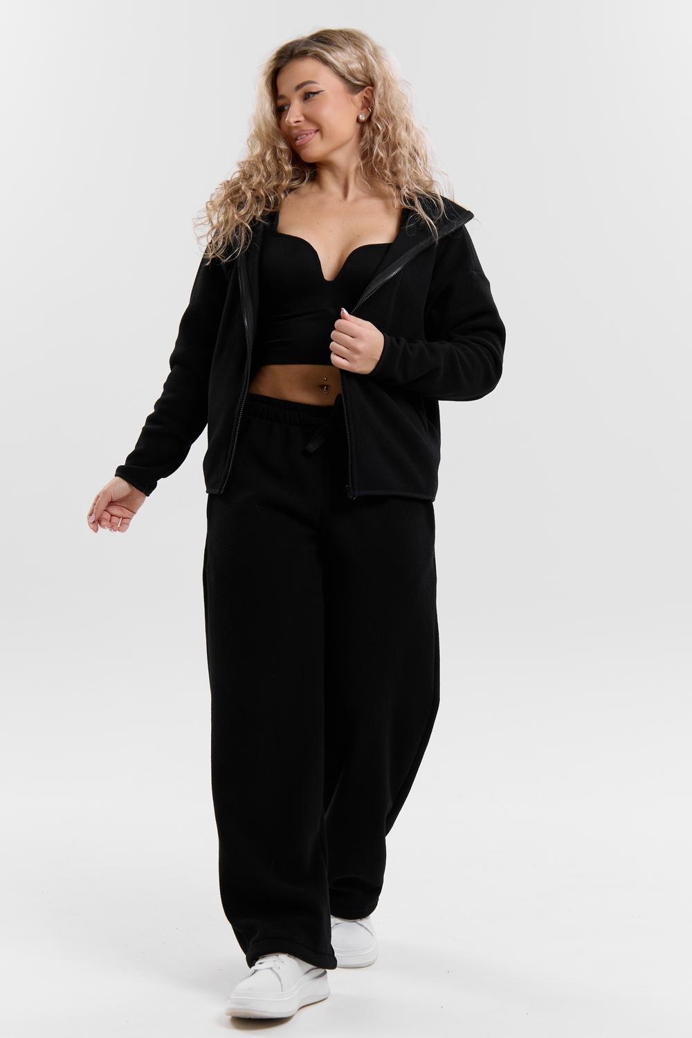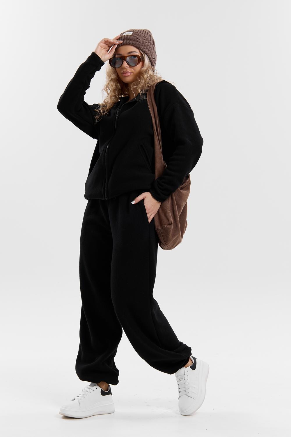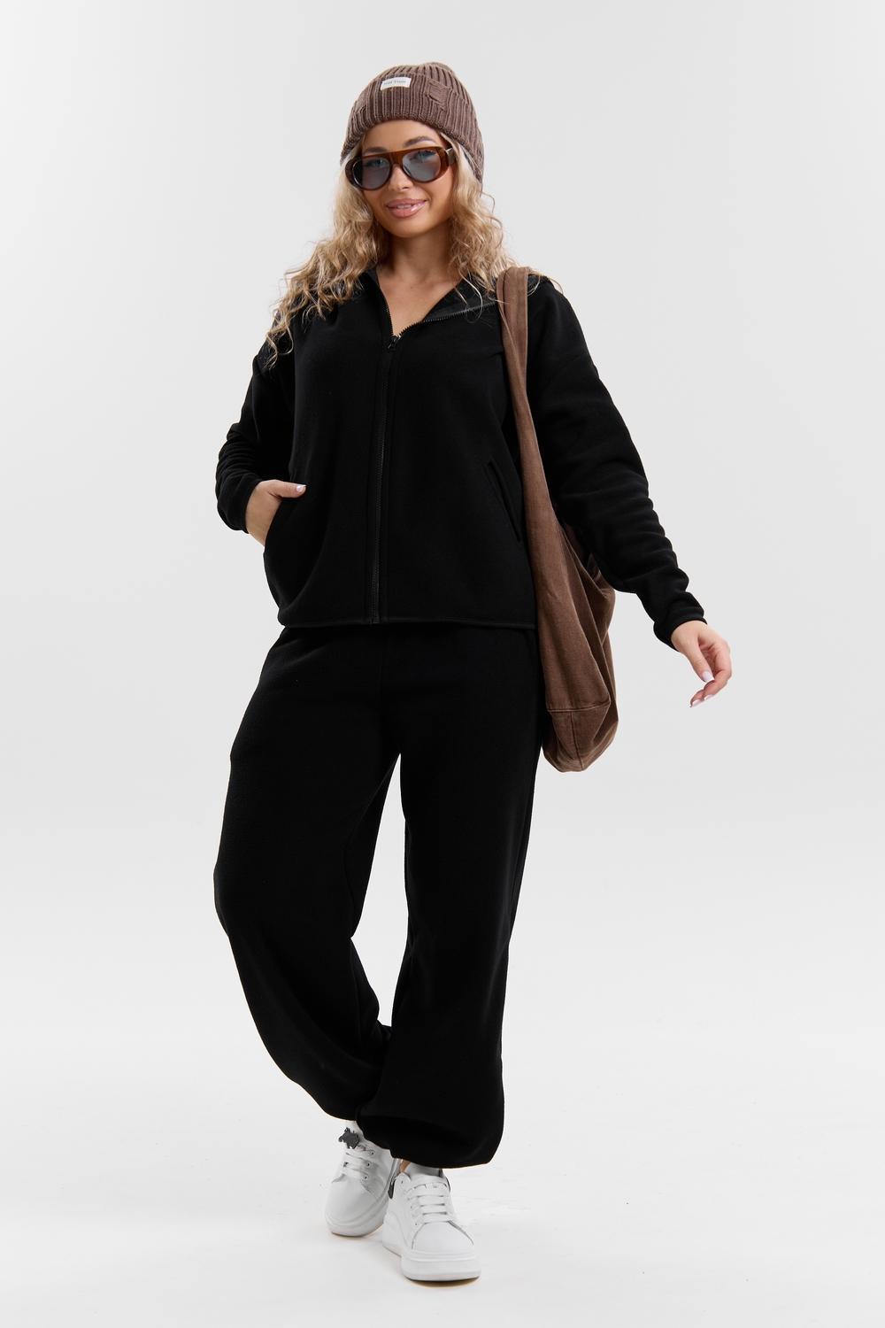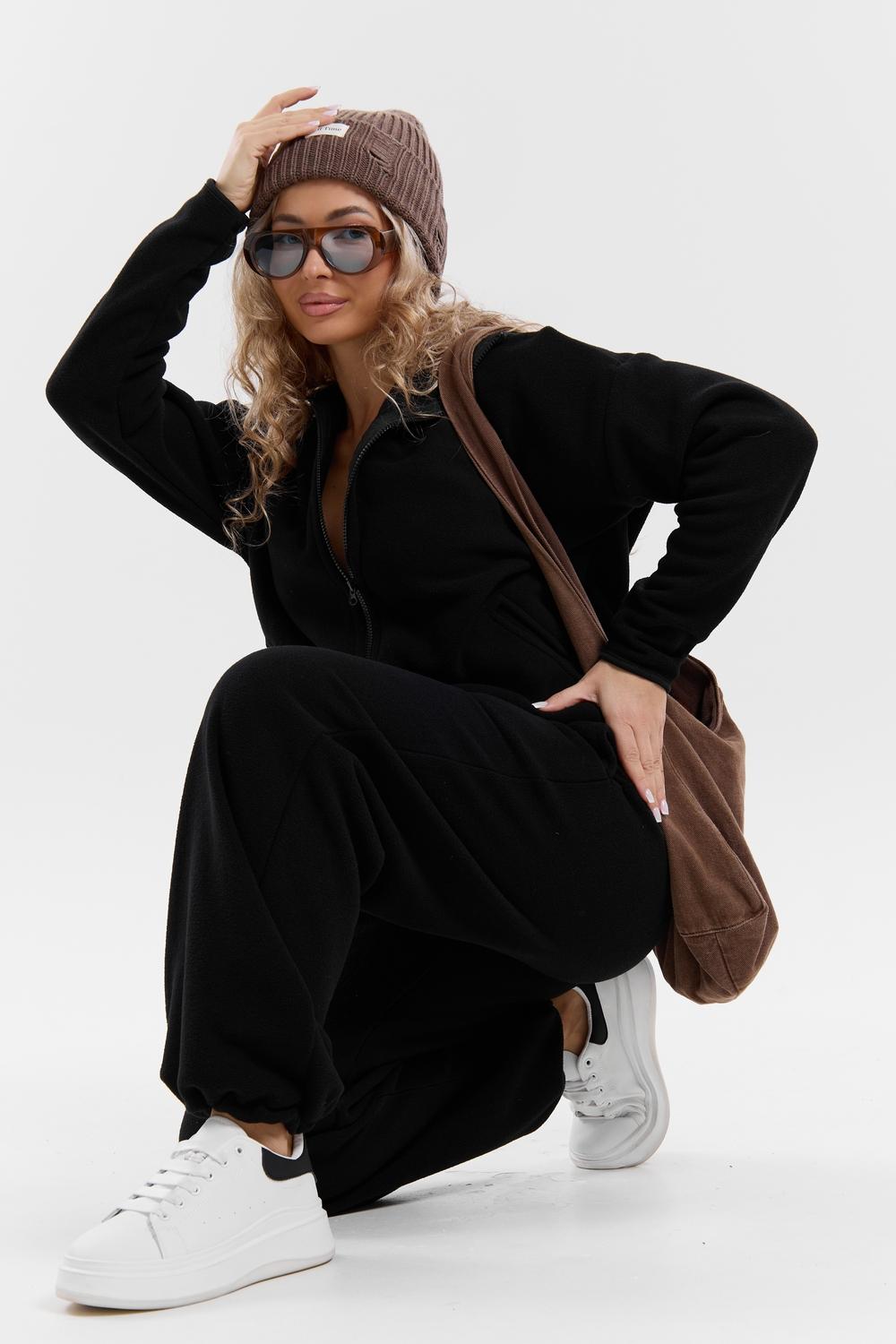 Флисовый костюм на молнии станет незаменимой вещью в вашем гардеробе. Костюм выполнен из плотной, мягкой ткани , что делает его очень теплым и приятным к телу. Благодаря высокому вороту, а также комфортному капюшону, надежно защитит ваше горло от прохлады в любое время года – будь то осень, весна, зима или прохладное лето. Качественная молния добавляет стильный акцент, а удобный замок обеспечивает легкое надевание и снятие. Резинка на поясе обеспечивает идеальную посадку и комфорт, брюки мягко облегают талию, не сдавливая и не сползая. Шнур на поясе добавляет не только стильный акцент, но и даёт возможность индивидуально регулировать посадку. Резинки на манжетах фиксируют брючины, затягивая с помощью фиксатора, создавая аккуратный новый образ. Такой крой визуально вытягивает ноги и придаёт образу собранность. Свободный фасон багги гарантирует свободу движений и комфорт в течение всего дня. Прорезные боковые карманы и накладные сзади - незаменимый элемент для удобства. Они не выпирают, не утяжеляют силуэт и в то же время добавляют практичности. В них можно удобно разместить разные мелочи- это маленькая деталь, которая делает модель ещё более функциональной. Флисовый костюм помогает создавать стильные образы. Его универсальный крой позволяет использовать его как повседневную одежду для прогулок, так и для дома. Модный фасон подойдет для женщин любого телосложения. Костюм представлен без яркого принта и рисунка, что делает его универсальной базой. Забудьте о зимних холодах – костюм подарит уют. Наш костюм с удобными большими прорезными карманами станет вашим спутником в создании спортивных или расслабленных аутфитов. Костюм на молнии с высоким воротником и капюшоном подойдут для создания модных образов в стиле кэжуал, спорт и спортшик. Используйте его как костюм для активного отдыха или как базовый лук на каждый день. Настоящий тренд сезона, который идеально впишется в ваш образ в любое время. Почувствуйте себя уютно в нашем плюшевом и стильном костюме.