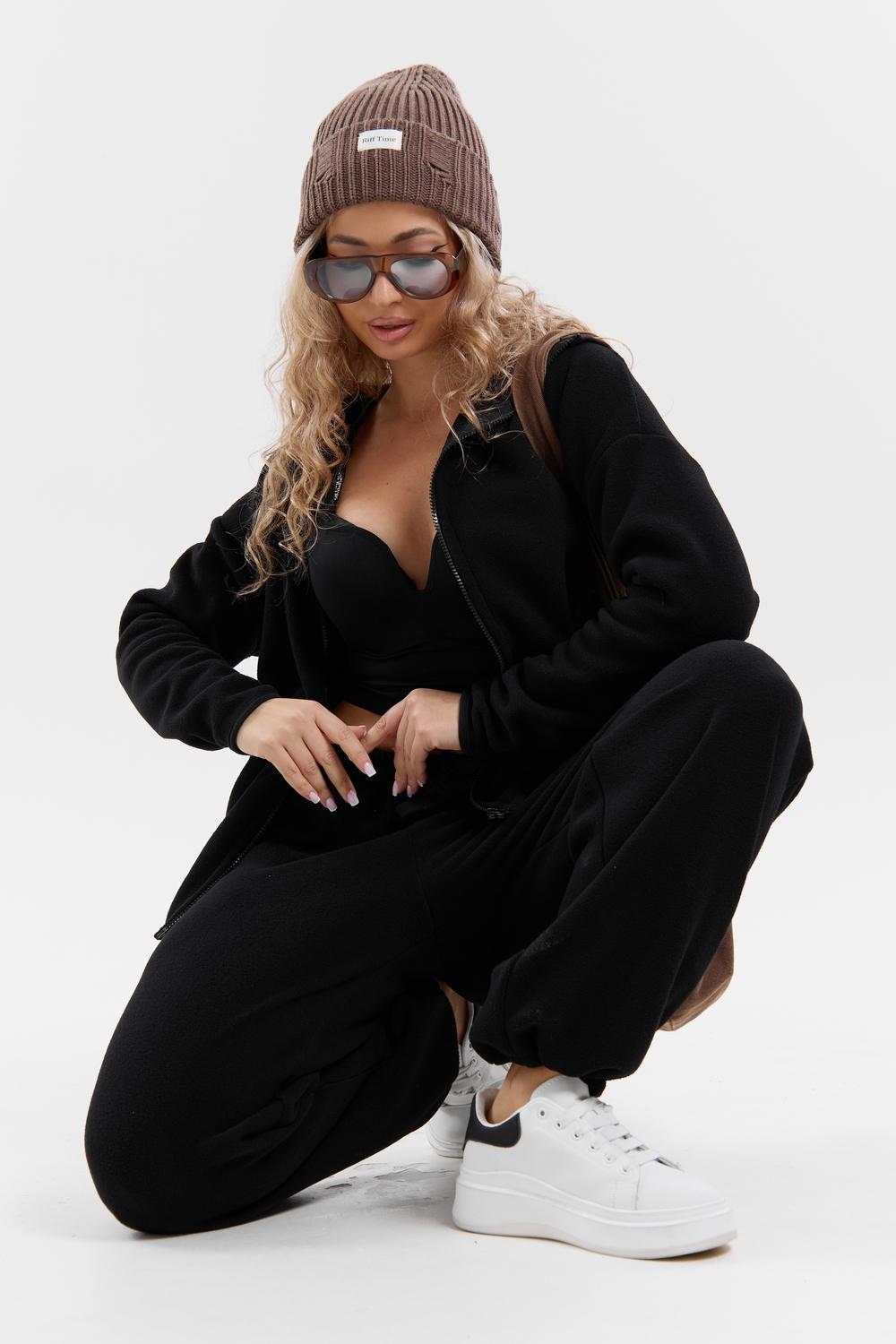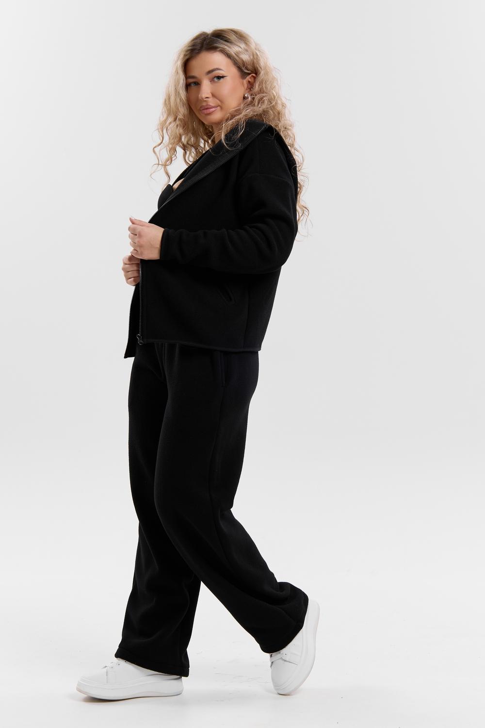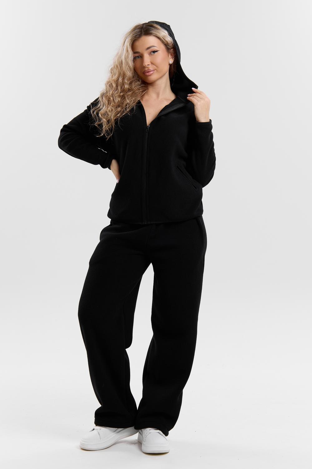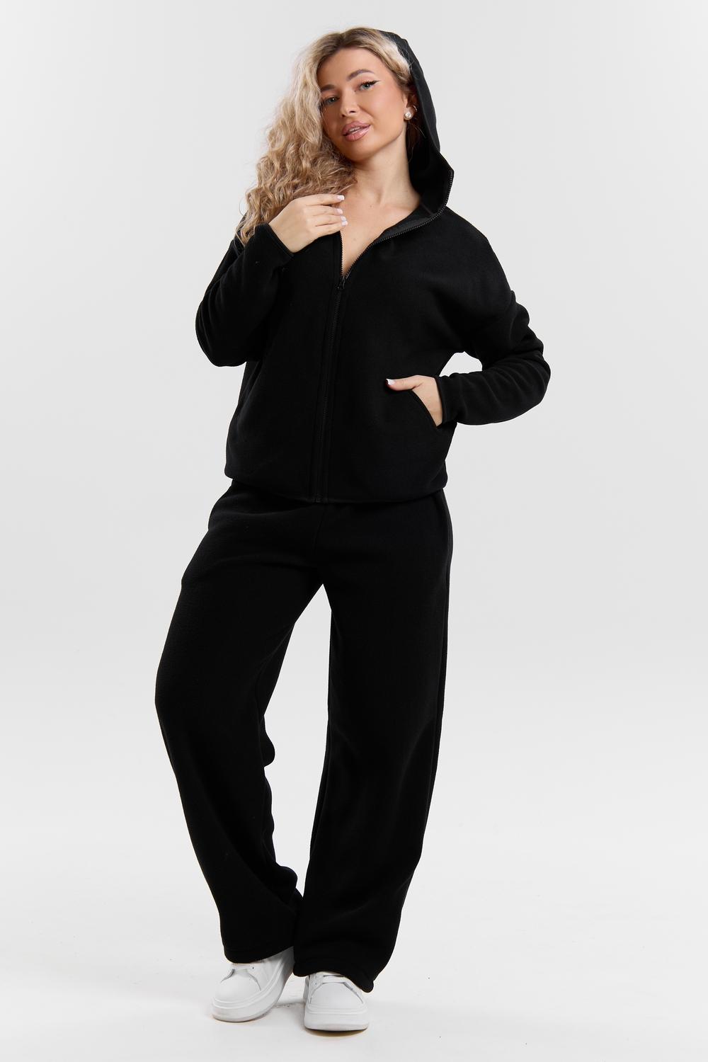 Флисовый костюм на молнии станет незаменимой вещью в вашем гардеробе. Костюм выполнен из плотной, мягкой ткани , что делает его очень теплым и приятным к телу. Благодаря высокому вороту, а также комфортному капюшону, надежно защитит ваше горло от прохлады в любое время года – будь то осень, весна, зима или прохладное лето. Качественная молния добавляет стильный акцент, а удобный замок обеспечивает легкое надевание и снятие. Резинка на поясе обеспечивает идеальную посадку и комфорт, брюки мягко облегают талию, не сдавливая и не сползая. Шнур на поясе добавляет не только стильный акцент, но и даёт возможность индивидуально регулировать посадку. Резинки на манжетах фиксируют брючины, затягивая с помощью фиксатора, создавая аккуратный новый образ. Такой крой визуально вытягивает ноги и придаёт образу собранность. Свободный фасон багги гарантирует свободу движений и комфорт в течение всего дня. Прорезные боковые карманы и накладные сзади - незаменимый элемент для удобства. Они не выпирают, не утяжеляют силуэт и в то же время добавляют практичности. В них можно удобно разместить разные мелочи- это маленькая деталь, которая делает модель ещё более функциональной. Флисовый костюм помогает создавать стильные образы. Его универсальный крой позволяет использовать его как повседневную одежду для прогулок, так и для дома. Модный фасон подойдет для женщин любого телосложения. Костюм представлен без яркого принта и рисунка, что делает его универсальной базой. Забудьте о зимних холодах – костюм подарит уют. Наш костюм с удобными большими прорезными карманами станет вашим спутником в создании спортивных или расслабленных аутфитов. Костюм на молнии с высоким воротником и капюшоном подойдут для создания модных образов в стиле кэжуал, спорт и спортшик. Используйте его как костюм для активного отдыха или как базовый лук на каждый день. Настоящий тренд сезона, который идеально впишется в ваш образ в любое время. Почувствуйте себя уютно в нашем плюшевом и стильном костюме.