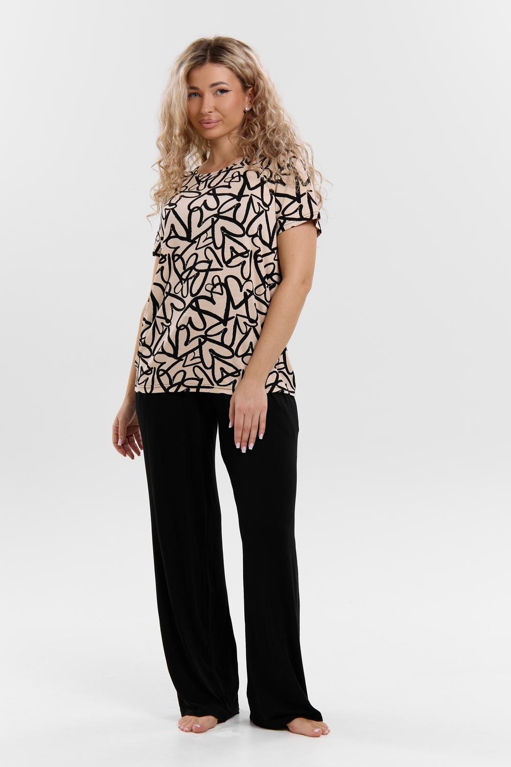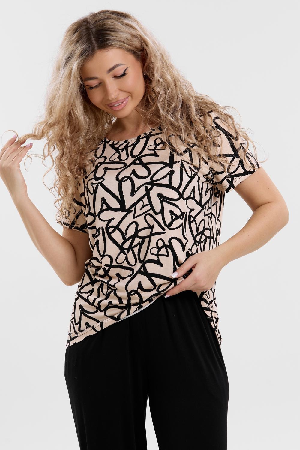 Стань воплощением уюта и стиля! Женский костюм из мягкой ткани — идеальное решение для домашнего отдыха, прогулок и даже лёгких занятий спортом. Яркий верх с оригинальным принтом добавляет настроения, а свободные однотонные брюки обеспечивают максимум комфорта. В таком костюме ты всегда будешь чувствовать себя уверенно и привлекательно — где бы ты ни была!