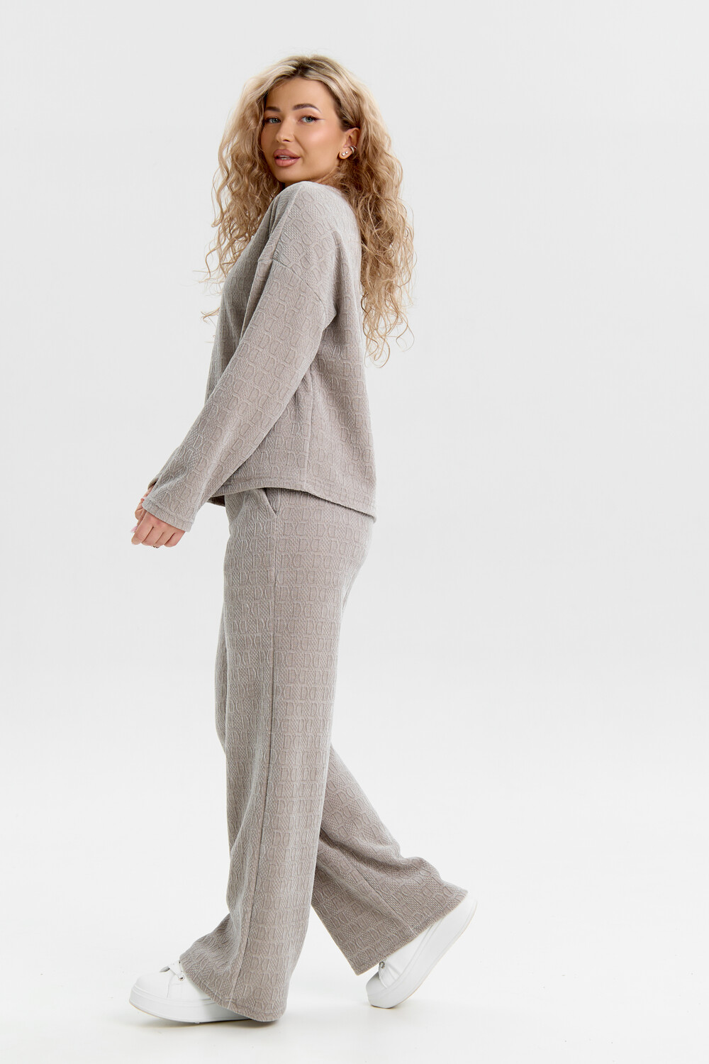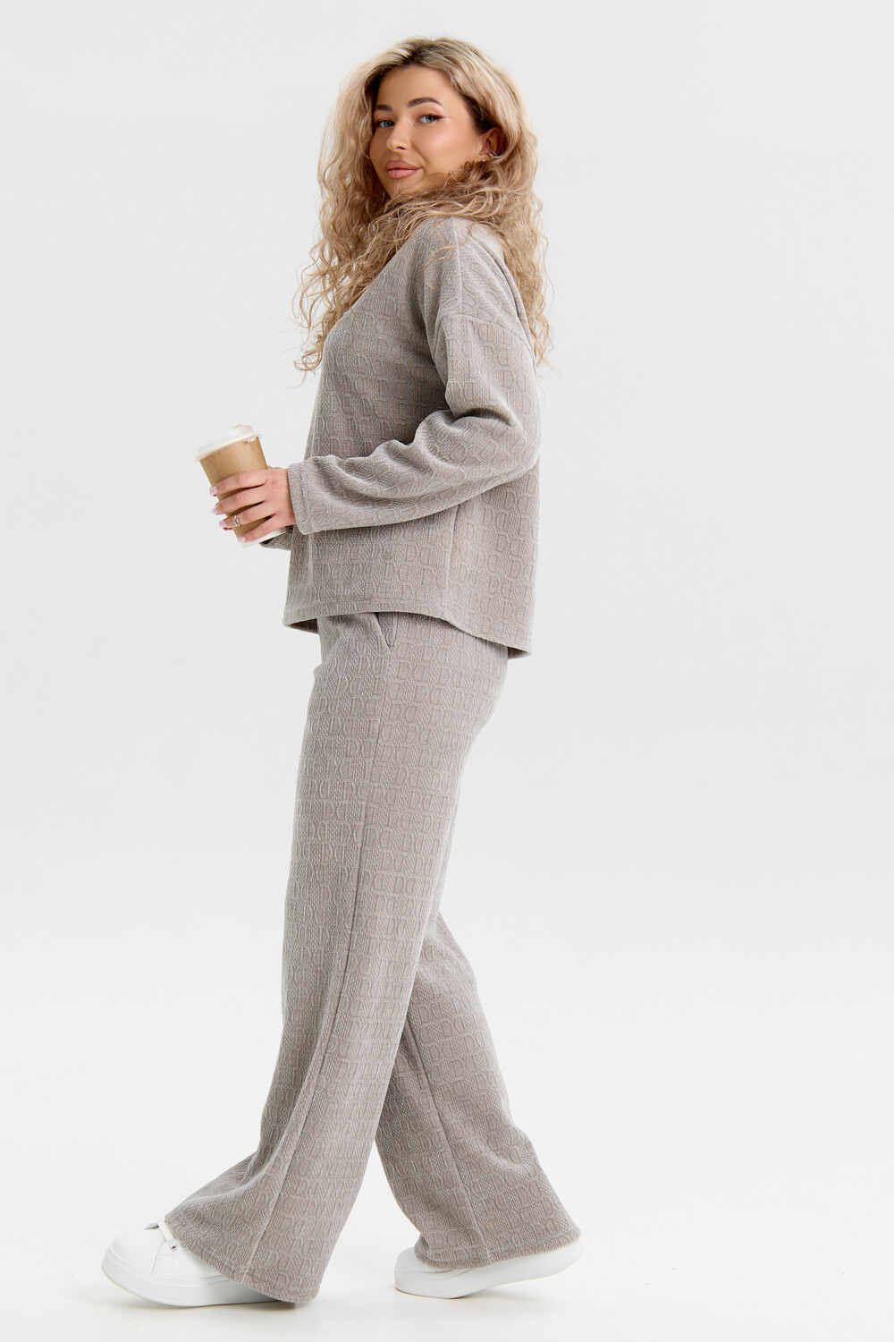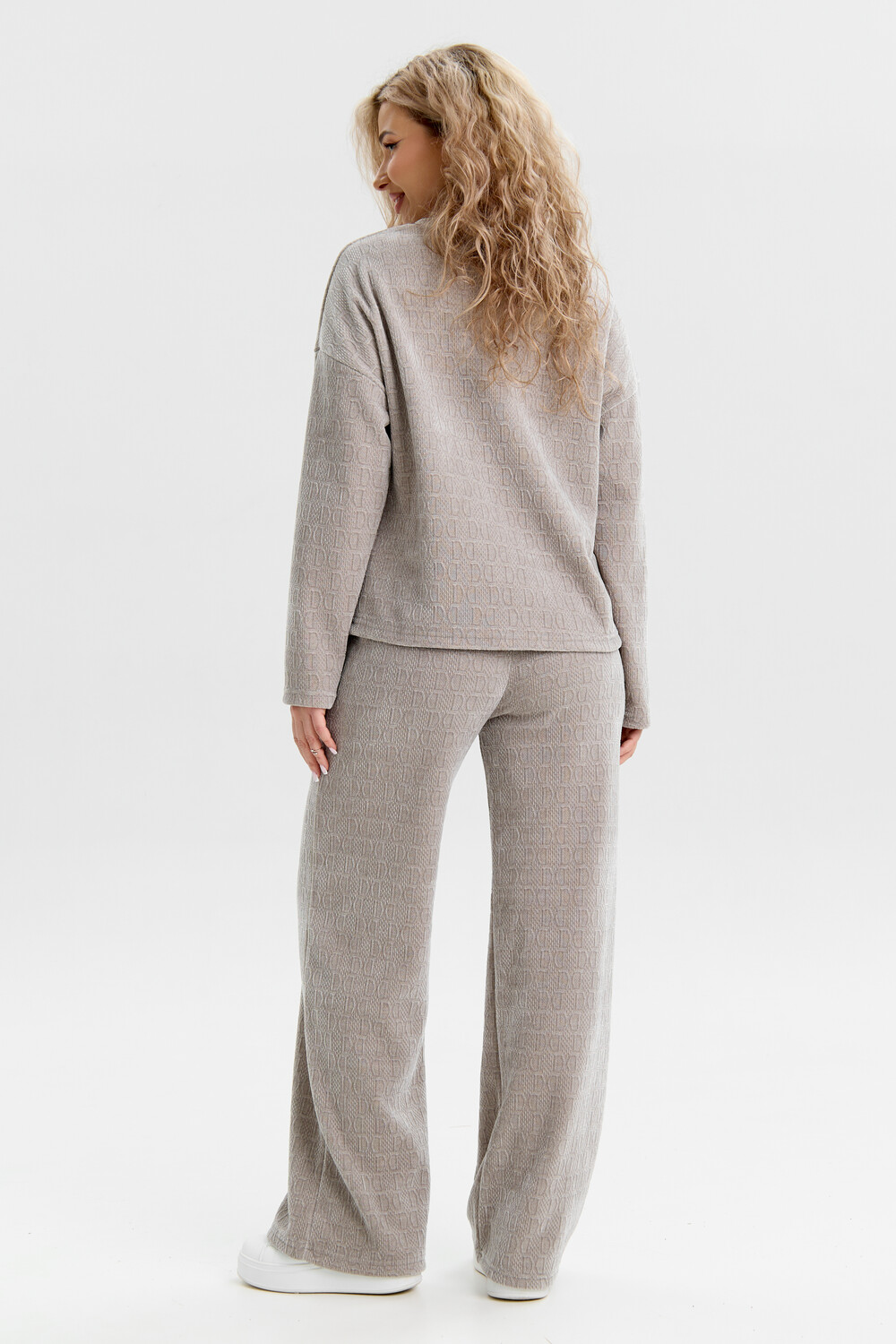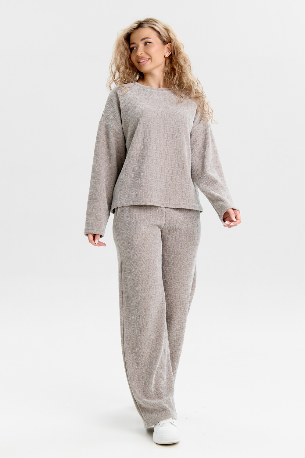 Женский костюм выполнен из жаккарда высокого качества. Жаккард - высокотехнологичный материал, прошедшей особую обработку. Ткань отличается высокими теплозащитными свойствами, при этом является дышащей. По своим характеристикам она не уступает шерстяным полотнам. И даже в сыром состоянии удерживает тепло у тела. Материал прочный, эластичный, влагостойкий. Воздухопроницаемая гигроскопичная ткань создает для тела комфортный микроклимат. Изделия из жаккарда легкие, не мнутся, не деформируются, не вытягиваються.В такой одежде удобно и комфортно. Эластичность материала позволяет легко двигаться. Костюм состоит из лонгслива и брюк. Лонг в стиле OVERSIZE ( одежда свободного кроя ) - это свобода самовыражения, позволяющая чувствовать себя комфортно и стильно одновременно. Горловина свитшота выполнена с обтачкой. Линия плеча спущена, длинный рукав. Женские стильные брюки - трубы представлены с вместительными боковыми карманами. Пояс выполнен на специализированной круговой поясной машине, что делает швы ровными и качественными. А профессиональные закрепки на поясе, придают изделию законченный вид и качество. Свободный крой прекрасно будет смотреться на дамах с любыми формами. Костюм такого плана представлен в широкой размерной сетке, что позволяет выбрать его как девушке, так и женщине. Костюм модных расцветок, будет удачным выбором для поездок в отпуск, на пикник, для школы, для активного отдыха и прогулок по городу. Будет гармонично сочетаться как с кроссовками, так и с ботинками. Используя эту модель в качестве домашнего костюма, Вы поймёте, что это именно тот самый идеальный вариант, в котором будете себя чувствовать удобно, комфортно и современно. Костюм с брюками - это настоящая находка для тех, кто ценит свою индивидуальность!