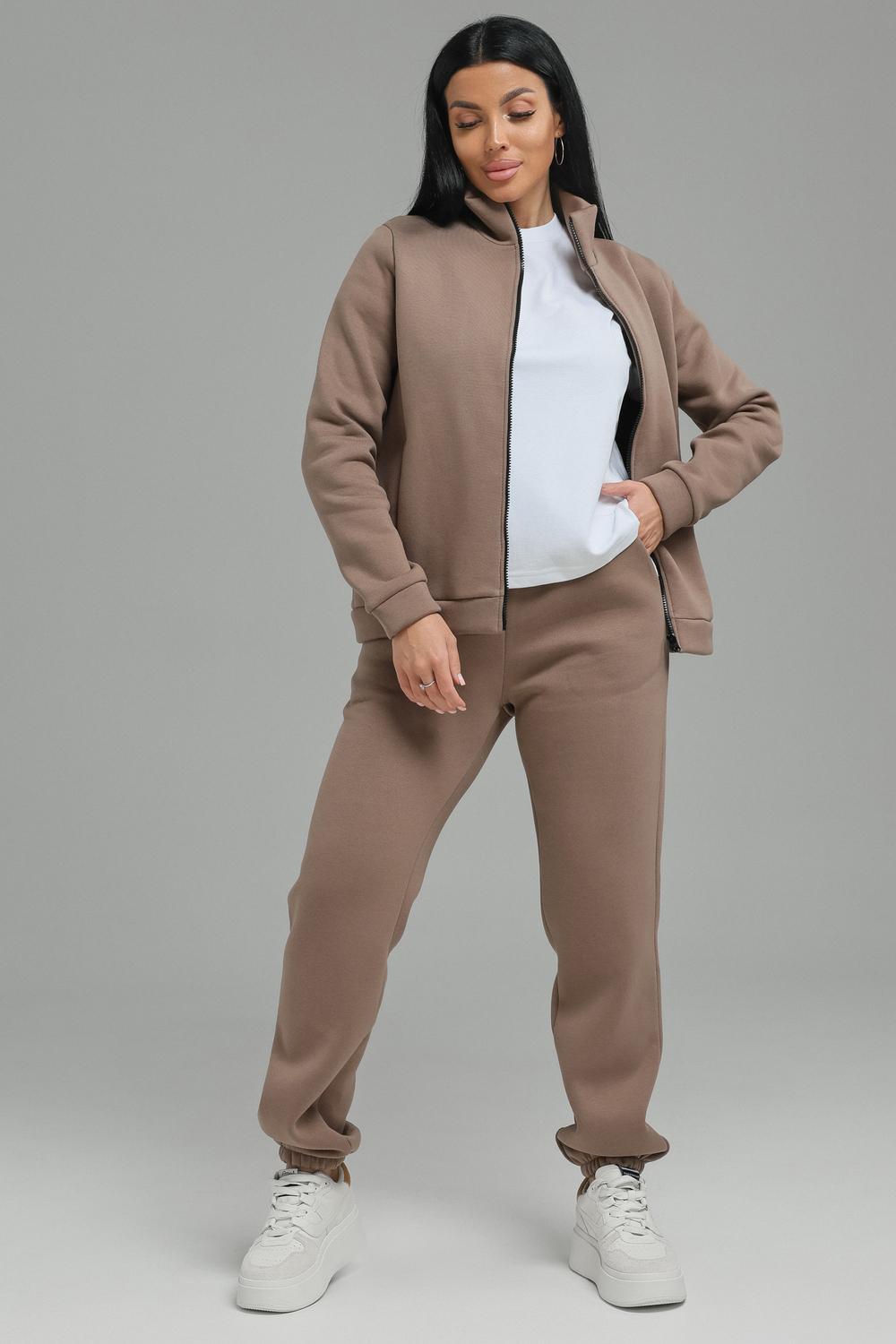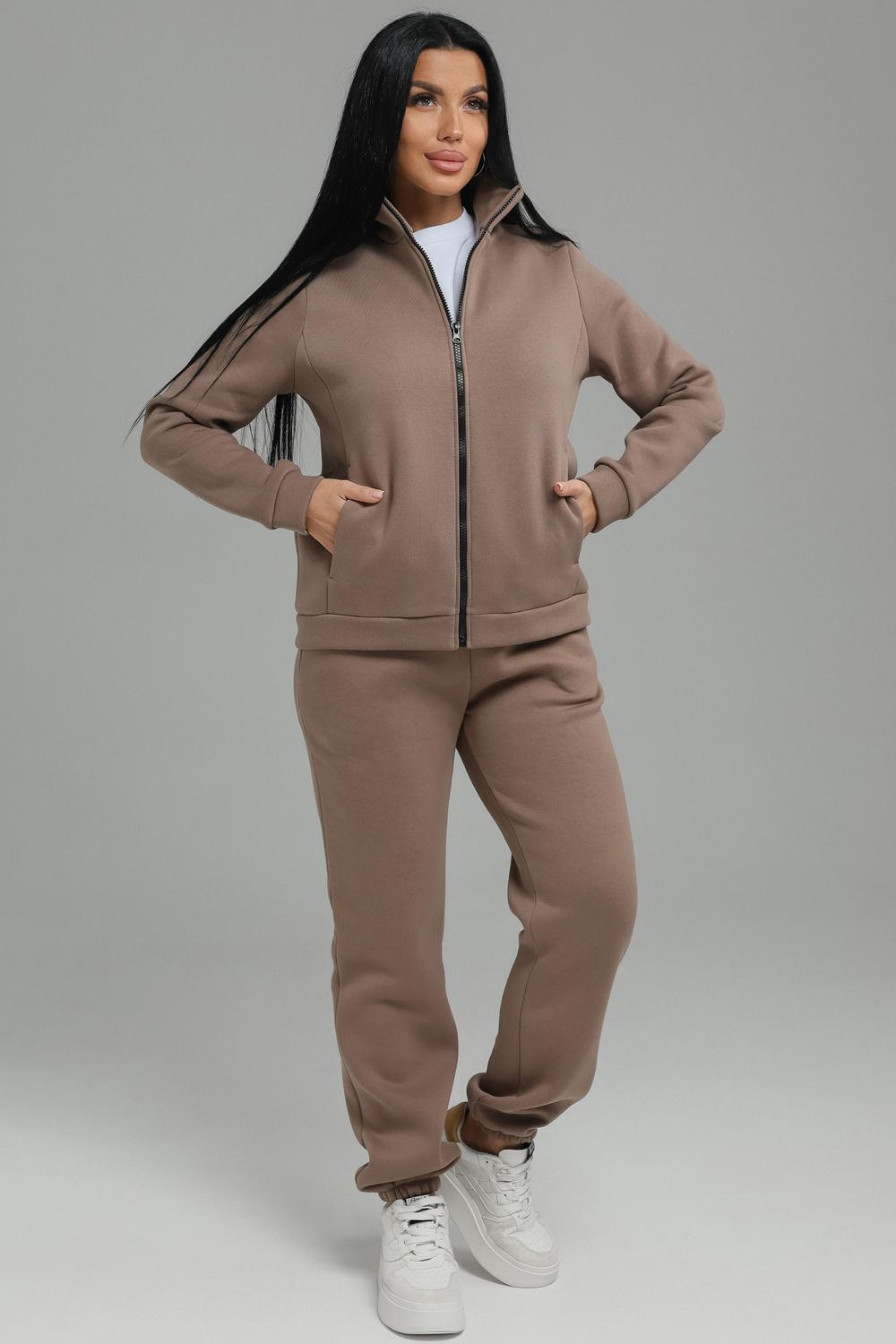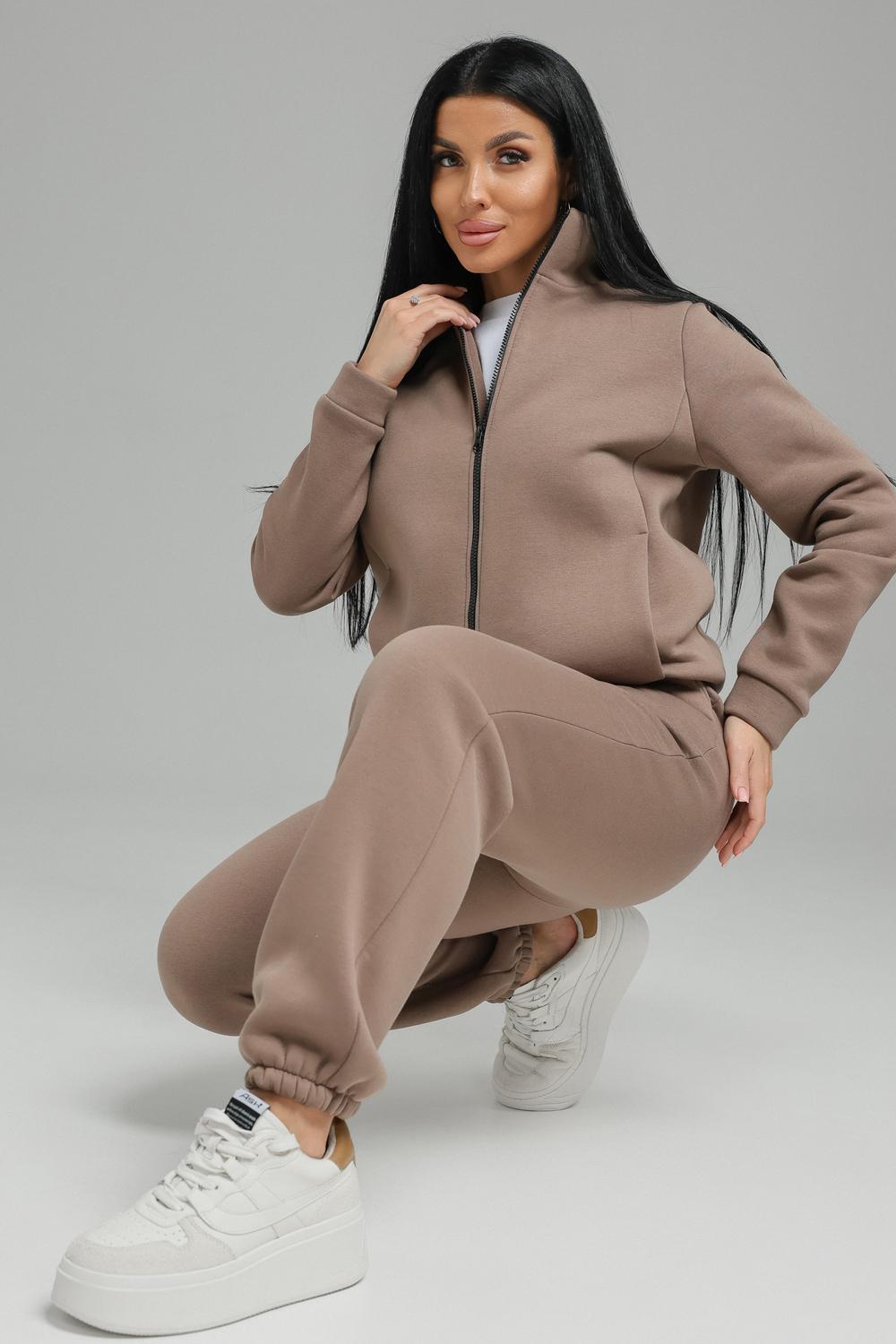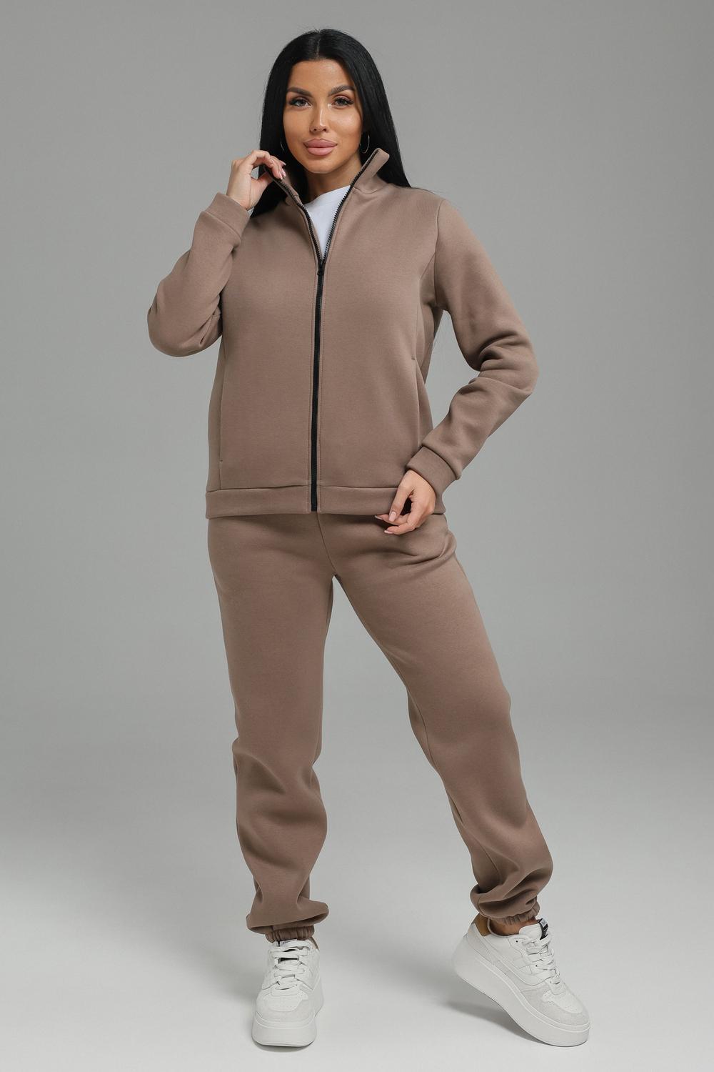 Спортивный костюм женский. Хит сезона, костюм отлично подойдет на весну, осень и зиму. В нем вы всегда будете чувствовать себя тепло и уютно. Костюм женский выполнен из футера 3-нитки премиум качества, с начесом. В комплекте брюки без карманов и кофта на замке с воротником -стойка. На полочках толстовки выполнены рельефы, в которых расположены карманы. В модели широкий размерный ряд с 50р по 60р.