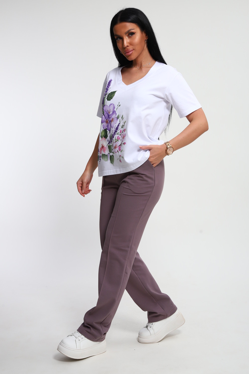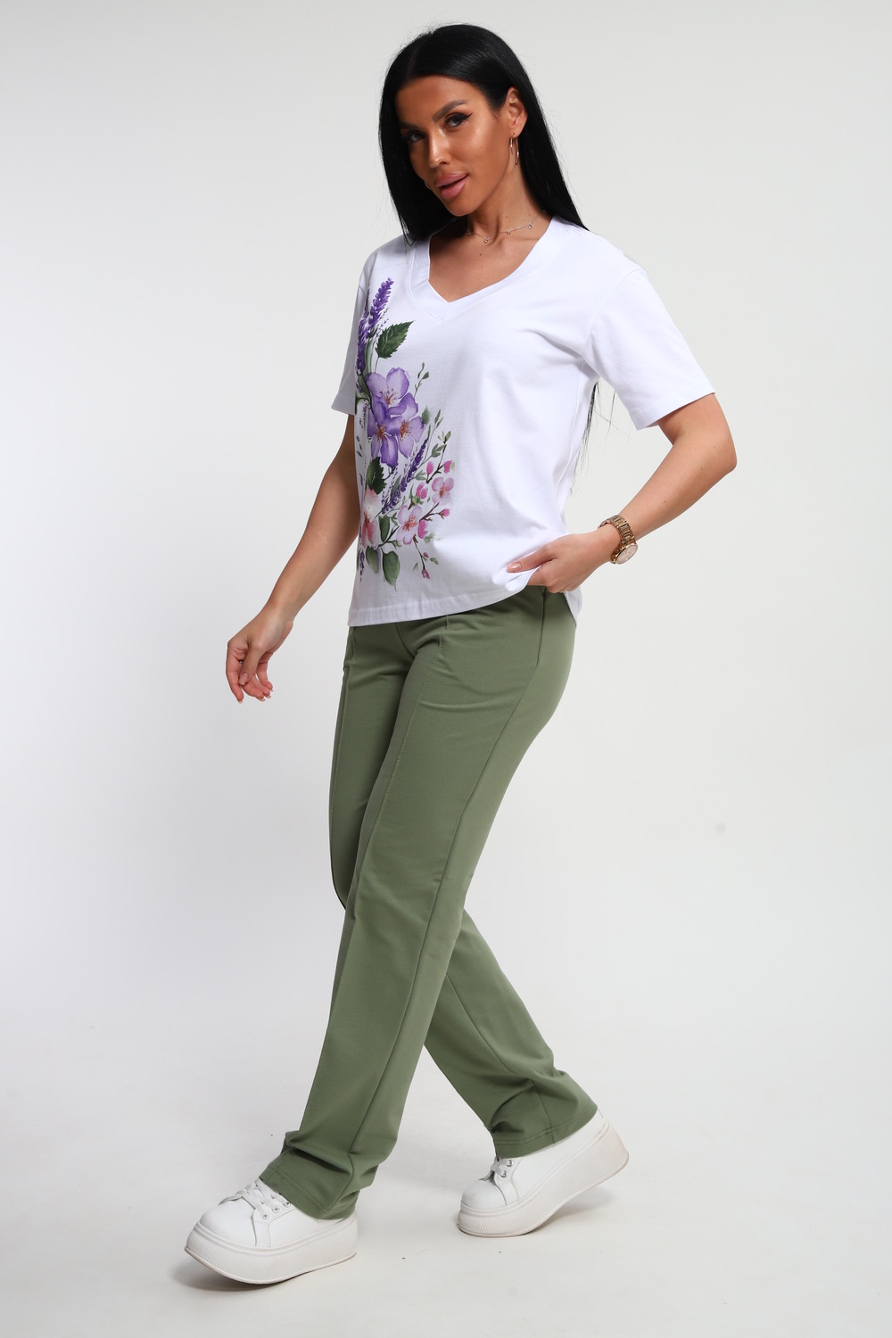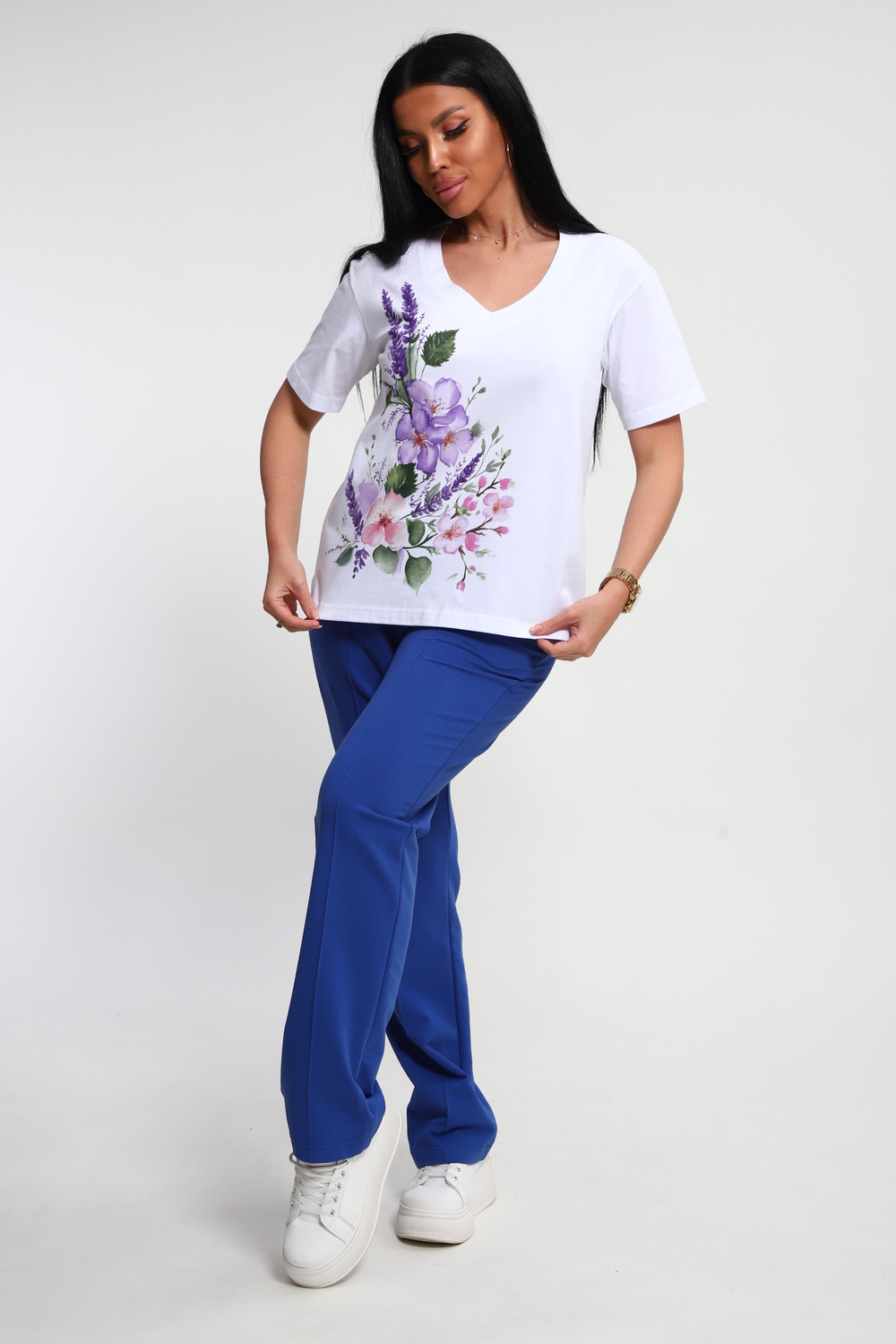 Костюм женский – это стильный и идеальный предмет гардероба ,идеально подходящий для дома и отдыха на любой период :весенний ,осенний, летний и зимний . Комплект состоит из футболки с красочным принтом и брюки в контрастном цвете. В составе ткани 100% хлопок . Хлопковый материал очень комфортный и лёгкий в носке . Брюки с удобной посадкой придадут вашему образу стильный и модный вид . Базовый современный костюмчик – популярный повседневный выбор на каждый день : на работу , для прогулок , праздников и на дачу . Универсальный стиль позволит вам создавать разнообразные образы , подходящие для любого события.