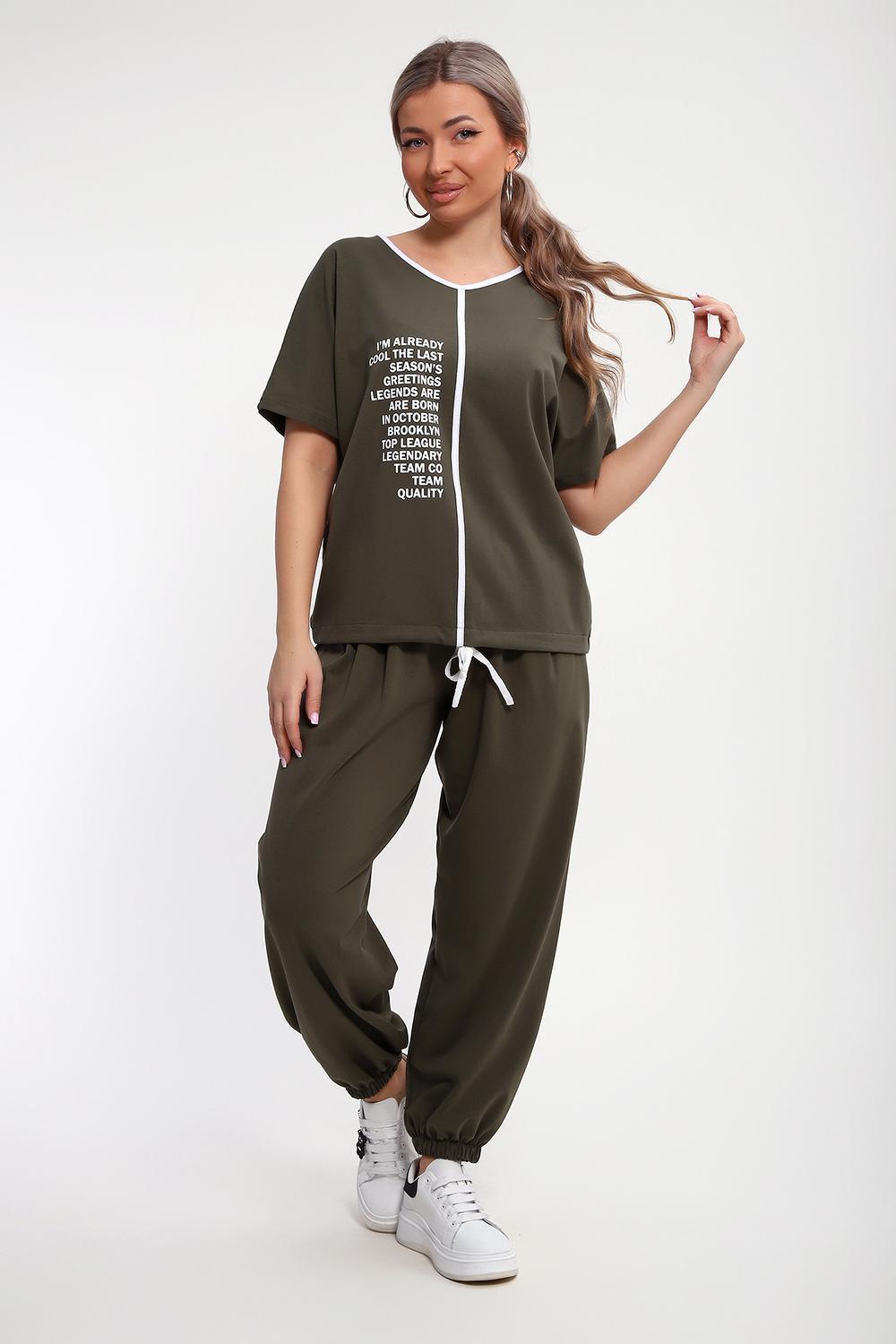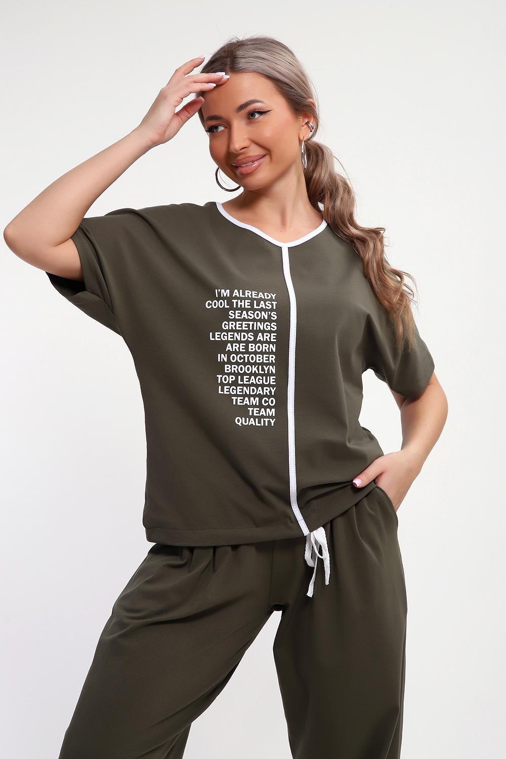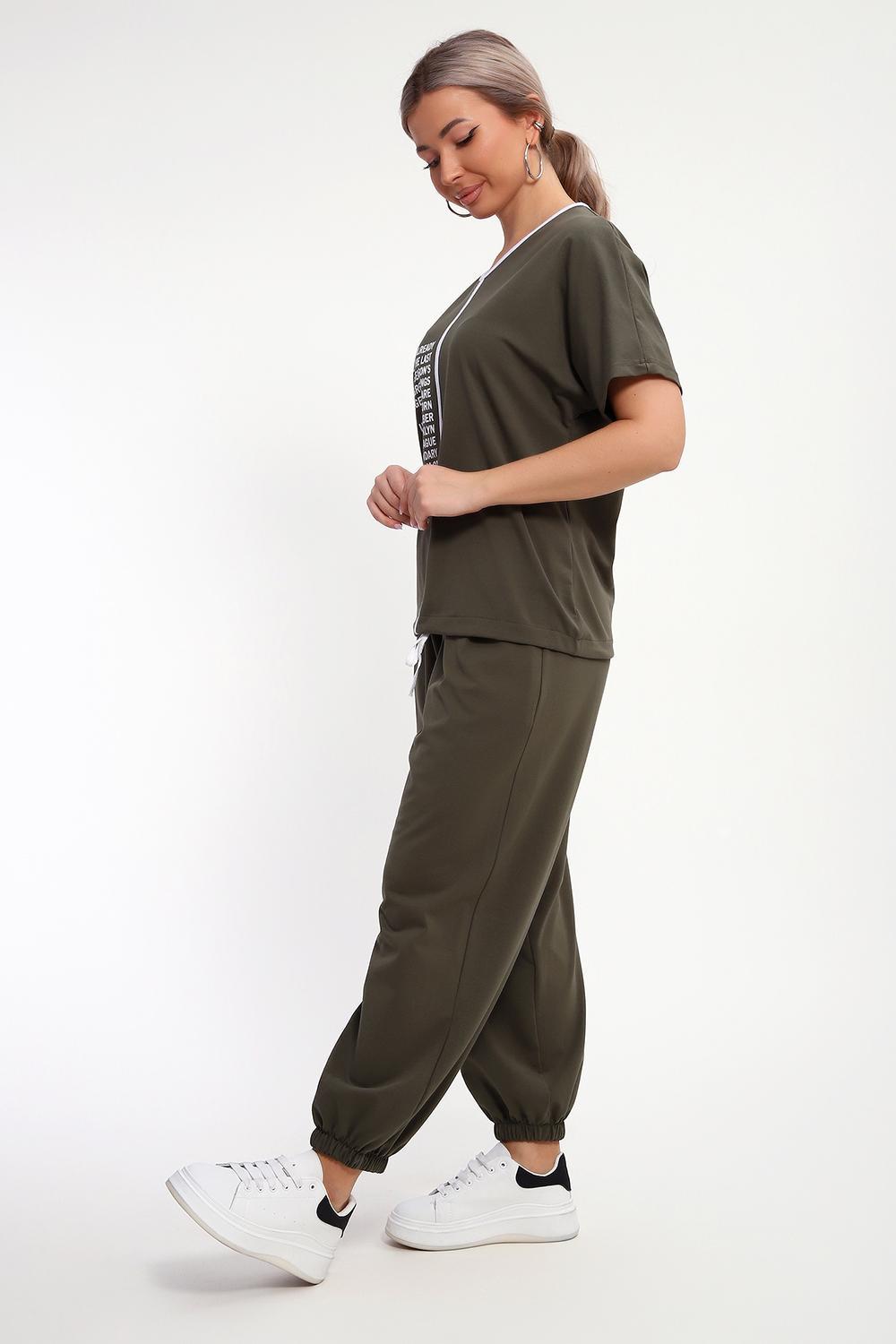 Модный, красивый и удобный костюмчик с брюками Алладинами. Костюм состоит из футболки и брюк. Рукав на футболке спущенный. На полочке принт в виде надписи, горловина обработана отбелочной тканью, по центру полочки отделочная тесьма. Низ у футболки на кулиске со шнурком, который регулируется по талии. Брюки алладины с мягкой широкой резинкой на талии и по низу изделия, свободного кроя со складочками спереди и карманами. Этот костюм станет отличным выбором для прогулок, встреч с друзьями или просто для комфортного отдыха дома!