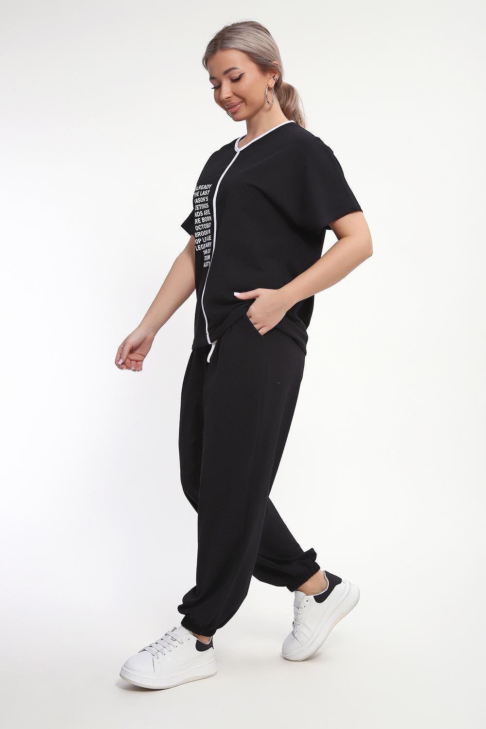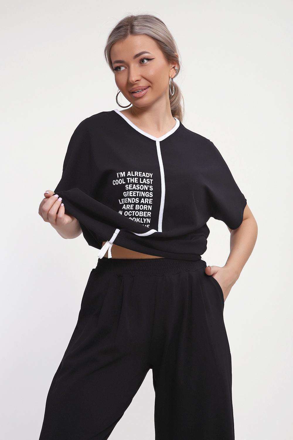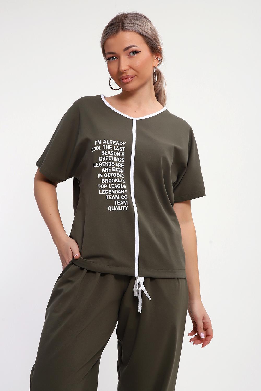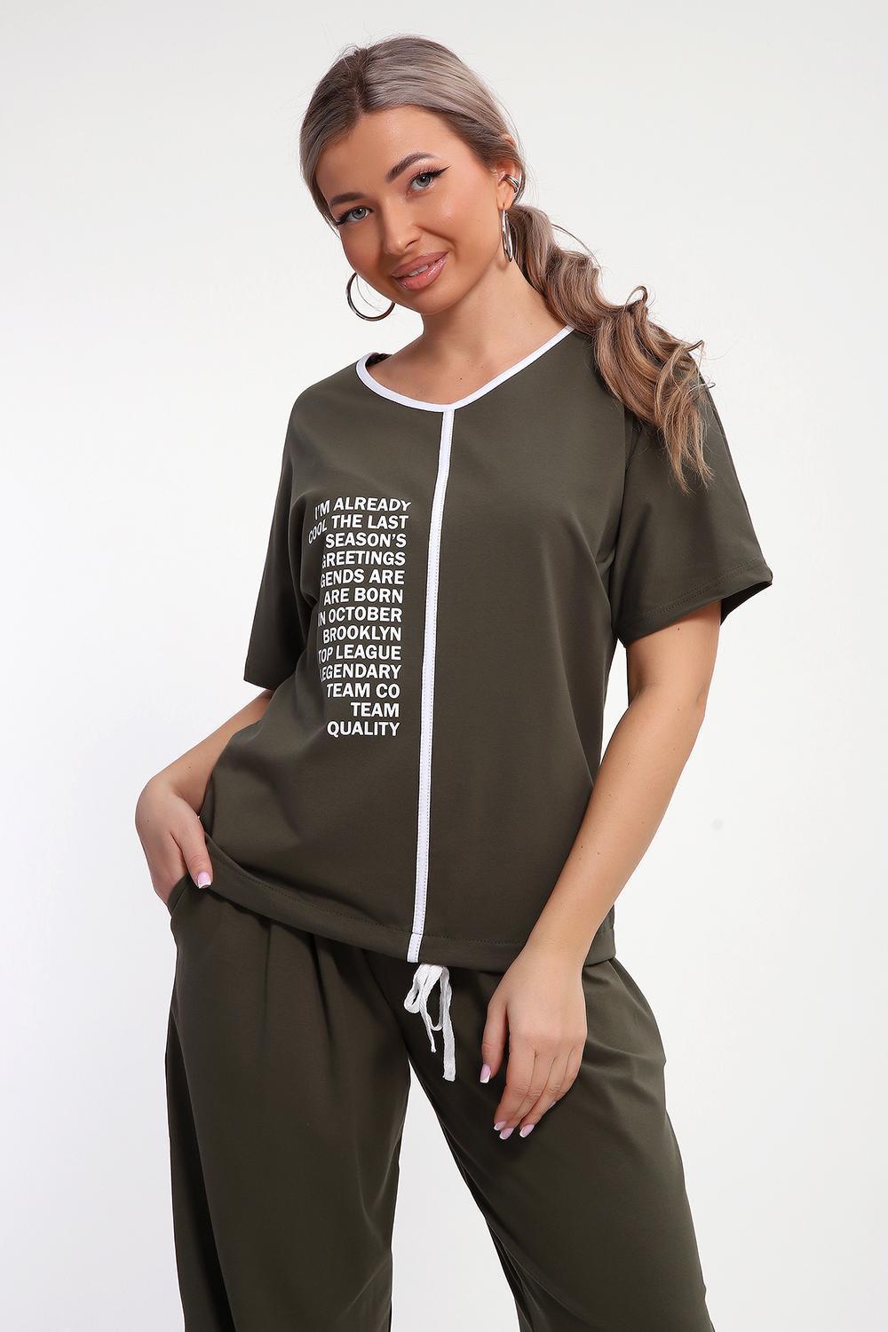 Модный, красивый и удобный костюмчик с брюками Алладинами. Костюм состоит из футболки и брюк. Рукав на футболке спущенный. На полочке принт в виде надписи, горловина обработана отбелочной тканью, по центру полочки отделочная тесьма. Низ у футболки на кулиске со шнурком, который регулируется по талии. Брюки алладины с мягкой широкой резинкой на талии и по низу изделия, свободного кроя со складочками спереди и карманами. Этот костюм станет отличным выбором для прогулок, встреч с друзьями или просто для комфортного отдыха дома!