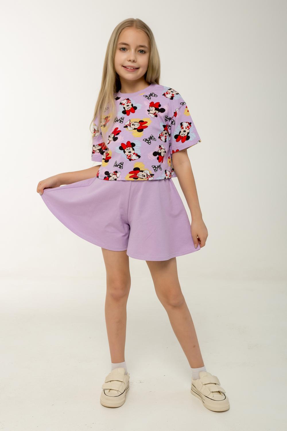 Этот яркий и стильный костюм станет отличным выбором для жаркого лета! Комплект включает укороченный топик свободного кроя с короткими рукавами и шорты-юбку трапециевидного силуэта на поясе с резинкой. Топик выполнен в насыщенном сиреневом оттенке с забавным рисунком любимого персонажа — Минни Маус. Шорты-юбка изготовлены из однотонной ткани в тон основного цвета комплекта, что создает гармоничный и законченный образ. Оба элемента костюма сделаны из петельчатого фетера, который прекрасно дышит и обеспечивает комфорт даже в самые жаркие дни. Такой комплект идеально подойдет для повседневных прогулок, отдыха на пляже, а также для детского сада. Каждый элемент можно носить отдельно, сочетая с другой одеждой и создавая новые интересные образы. Костюм сертифицирован и произведен на фабрике "Мариша", известной своим высоким качеством продукции.
