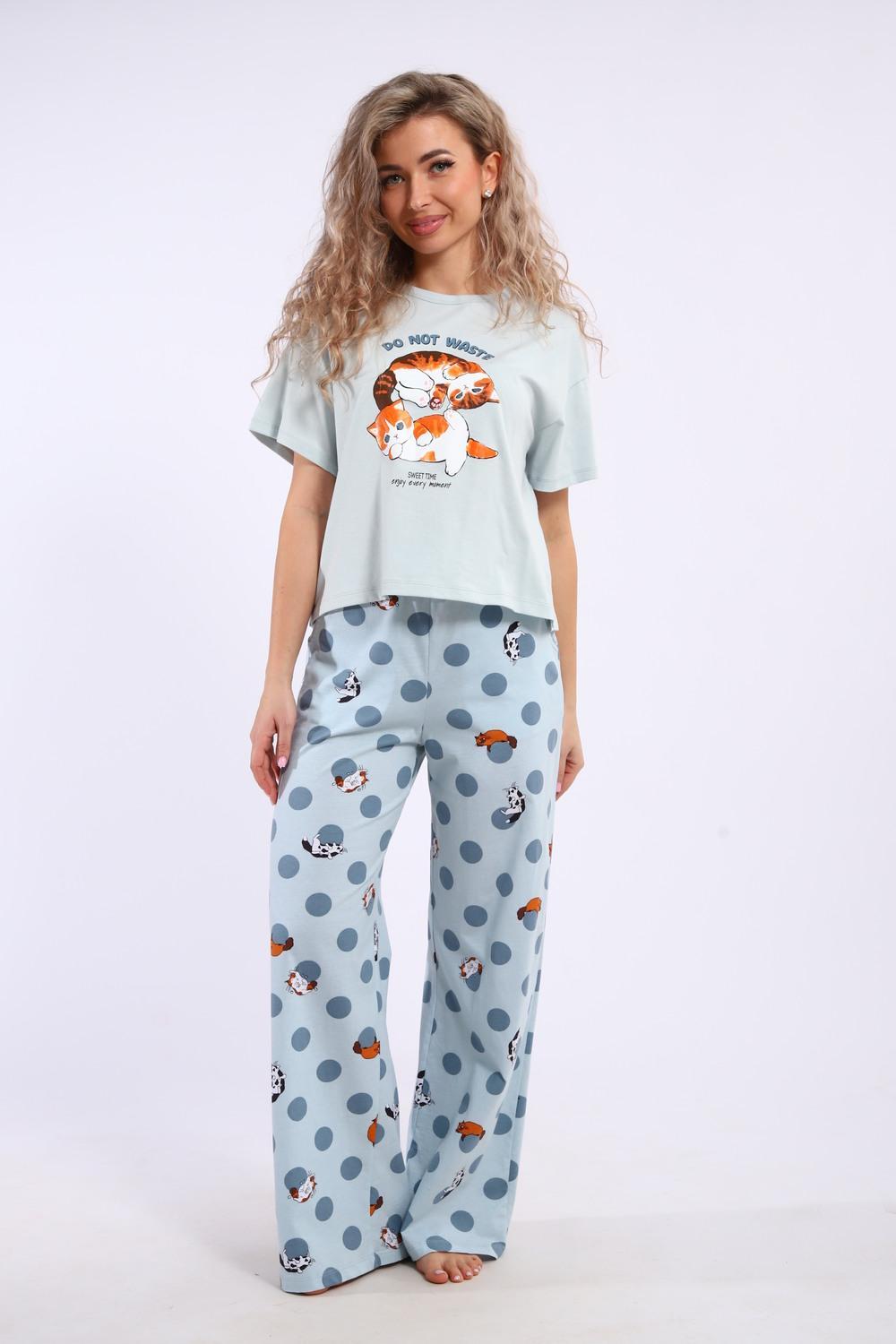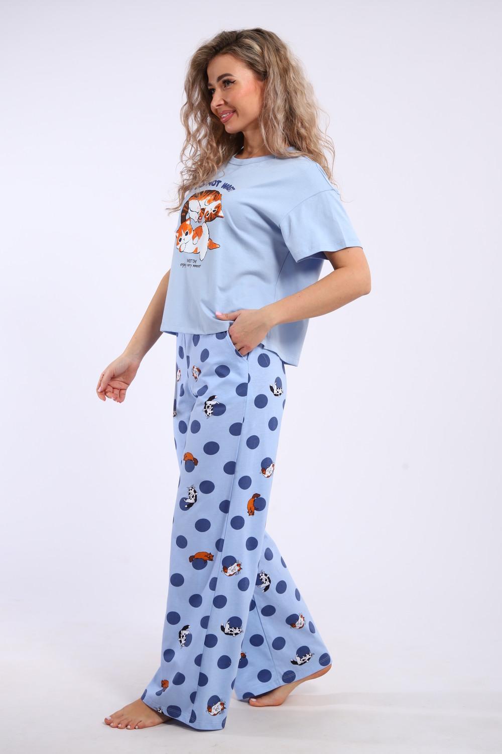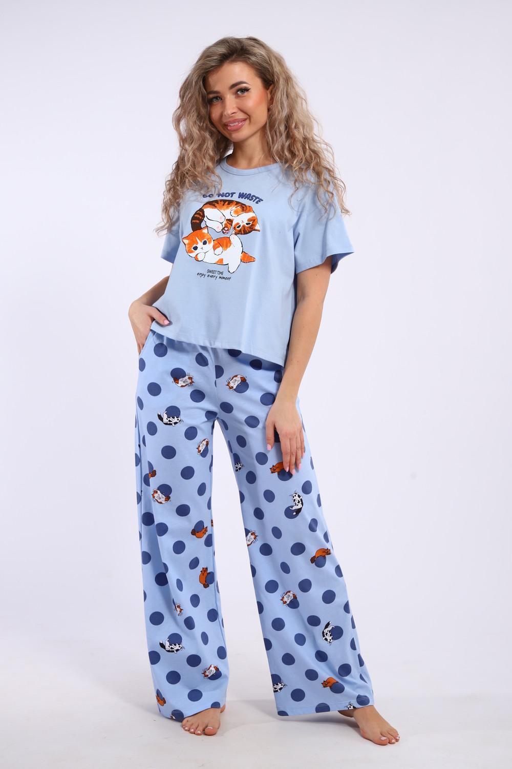 Красивый женский костюм двойка от ивановского производителя состоит из футболки и брюк в стиле палаццо. Этот стильный домашний комплект выполнен из мягкого и приятного на ощупь трикотажного материала из 100% хлопка. Он идеально подойдет для осеннего и весеннего сезонов. Эта женская пижама с брюками кюлотами сочетает женственность и удобство. Отличный выбор для повседневного использования дома и сна. Брюки клеш придают образу особый шарм и делают костюм популярным среди молодежи и подростков. Благодаря широким брюкам, пижама выглядит модно и трендово. Этот ночной комплект предлагается в нескольких размерах, включая большие размеры, и подходит стройным девушкам и женщинам, а также полным дамам plus size. Благодаря свободному крою и удобным брюкам трубам, он также идеально подойдет для беременных женщин, давая им свободу движения и комфорт в домашних условиях. Хлопковая пижама изготовлена из качественного турецкого трикотажа (кулирка), который приятен к телу и обеспечивает комфорт во время ночного отдыха. Она подойдет для любого времени года, особенно на осень, весну, зиму. Этот удобный и стильный комплект пижамы с брюками станет отличным выбором для роддома, повседневного отдыха дома или даже для новогодней фотосессии и пижамной вечеринки. Сочетание комфорта, красоты и функциональности делает эту пижаму невероятно привлекательной. Домашний костюм, пижама - это прекрасный подарок себе, маме, сестре, бабушке, жене на новый год, день рождения или без повода.