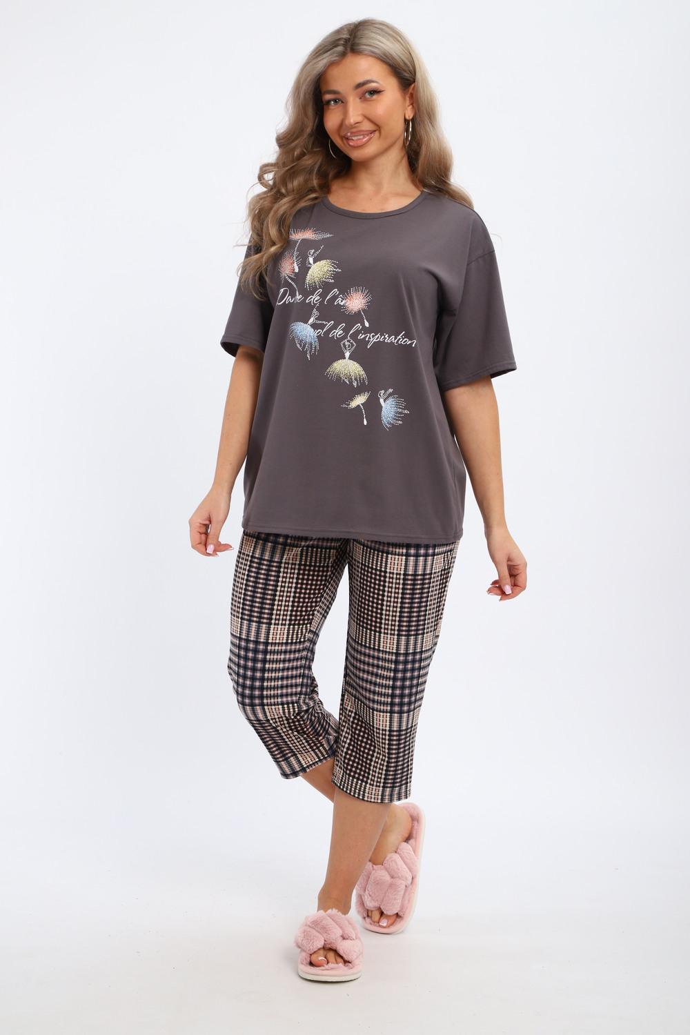 Женская домашняя одежда из 100 % хлопка (кулирная гладь) — комплект из футболки и бриджей, созданный для комфорта и уюта. Футболка украшена яркой печатью в технике шелкографии, которая не теряет вид после стирок. Бриджи выполнены в стильной клетчатой расцветке и оснащены удобными карманами в боковых швах — практичная деталь для повседневного использования. Материал отличается мягкостью, отличной воздухопроницаемостью и гипоаллергенностью, а свободный крой не сковывает движений. Комплект представлен в размерах 50–60, что позволяет подобрать подходящую модель для разных типов фигуры. Идеален для домашнего отдыха, но также может стать приятным подарком для близких. Практичность, качество и стильный дизайн в каждой детали!
